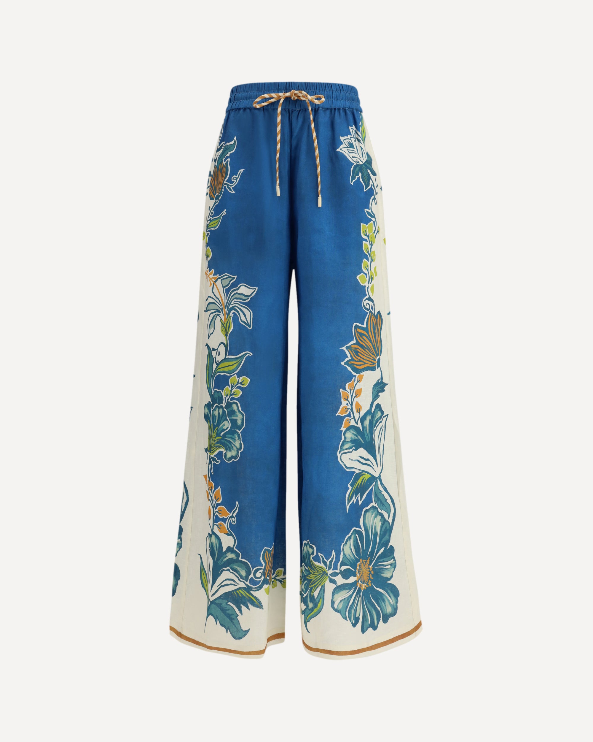 The Luda Pants by Alémais feature a relaxed jogger silhouette, designed for refined and contemporary comfort. The model includes side seam pockets and an elasticated waist with drawstring and custom tips, ensuring an adjustable and easy fit.