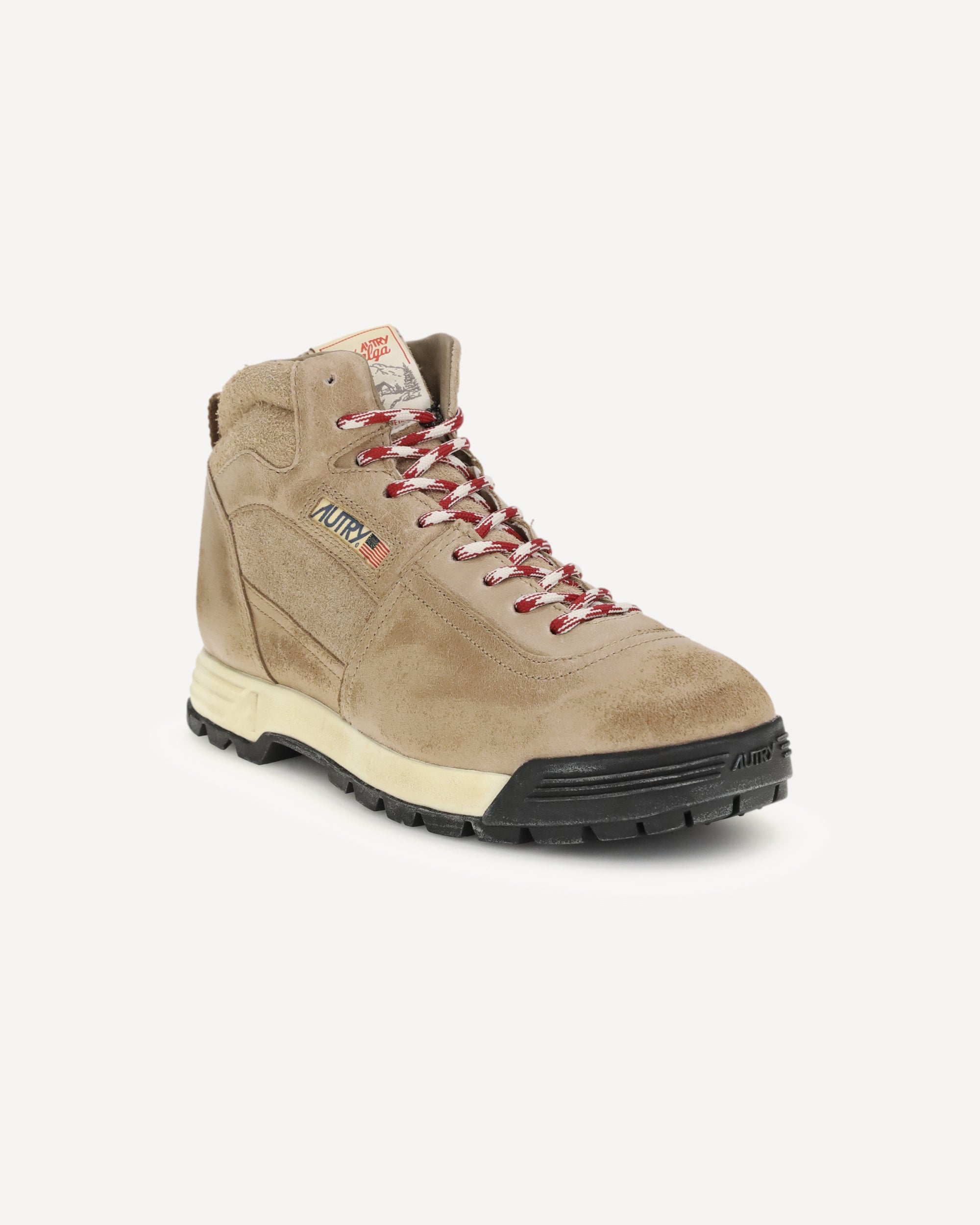 The leather Ankle Boots by Autry embody the perfect blend of urban aesthetics and outdoor spirit. Crafted from suede and featuring a paneled design, they combine elegance and functionality in a single contemporary silhouette. The sturdy laces and thick rubber sole ensure stability and comfort on any terrain, while the side logo adds a distinctive touch to the model's clean profile. A practical pull tab on the back makes it easy to put on, completing a shoe designed for those seeking uncompromising style and performance.