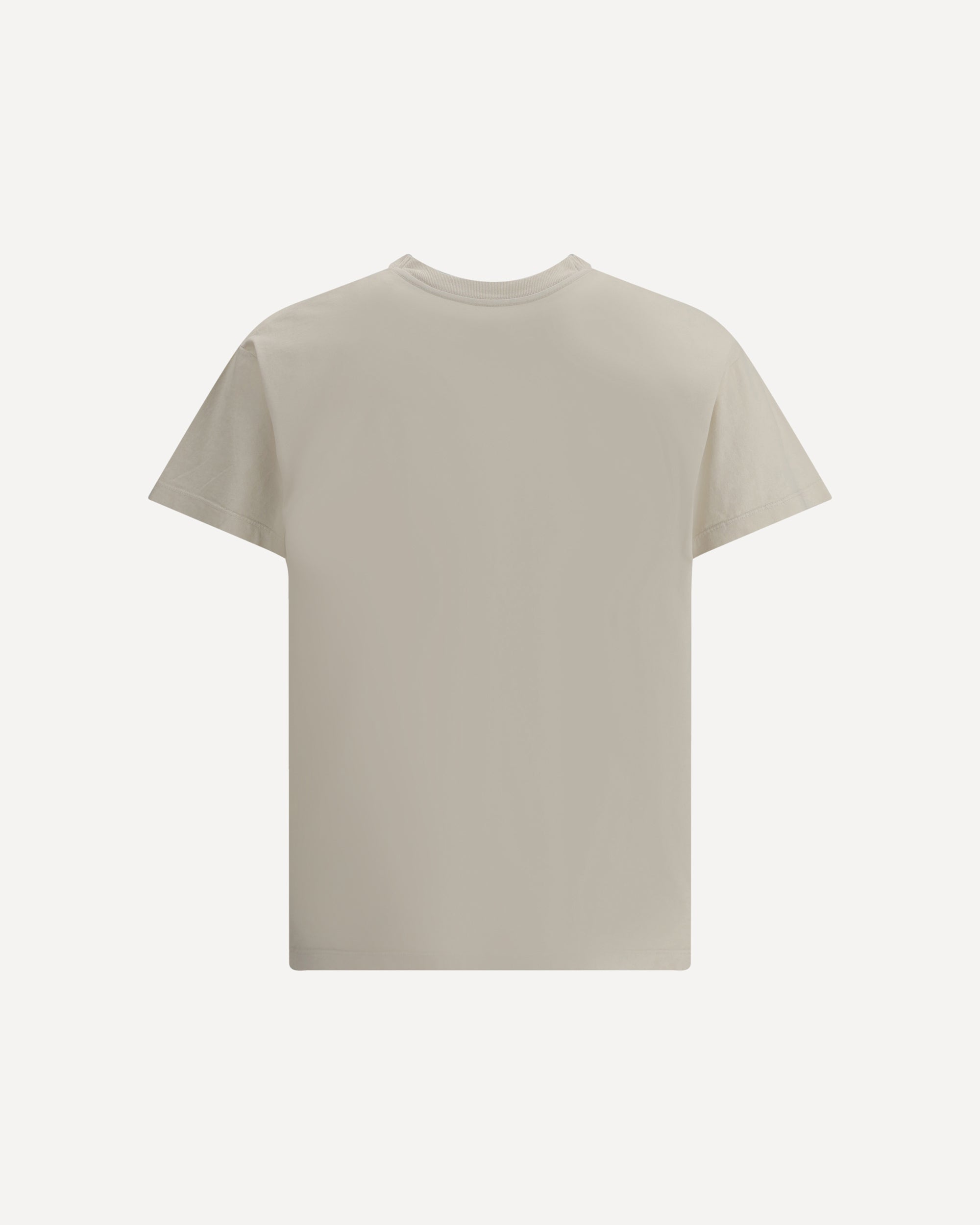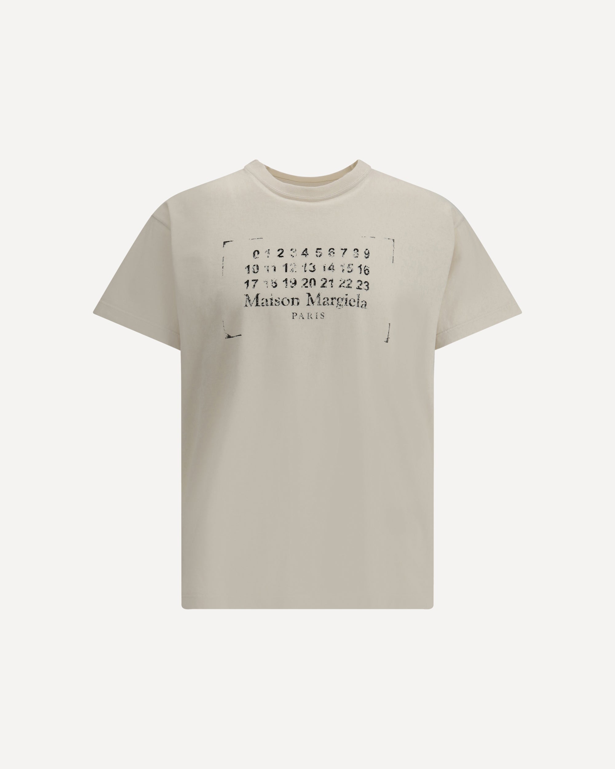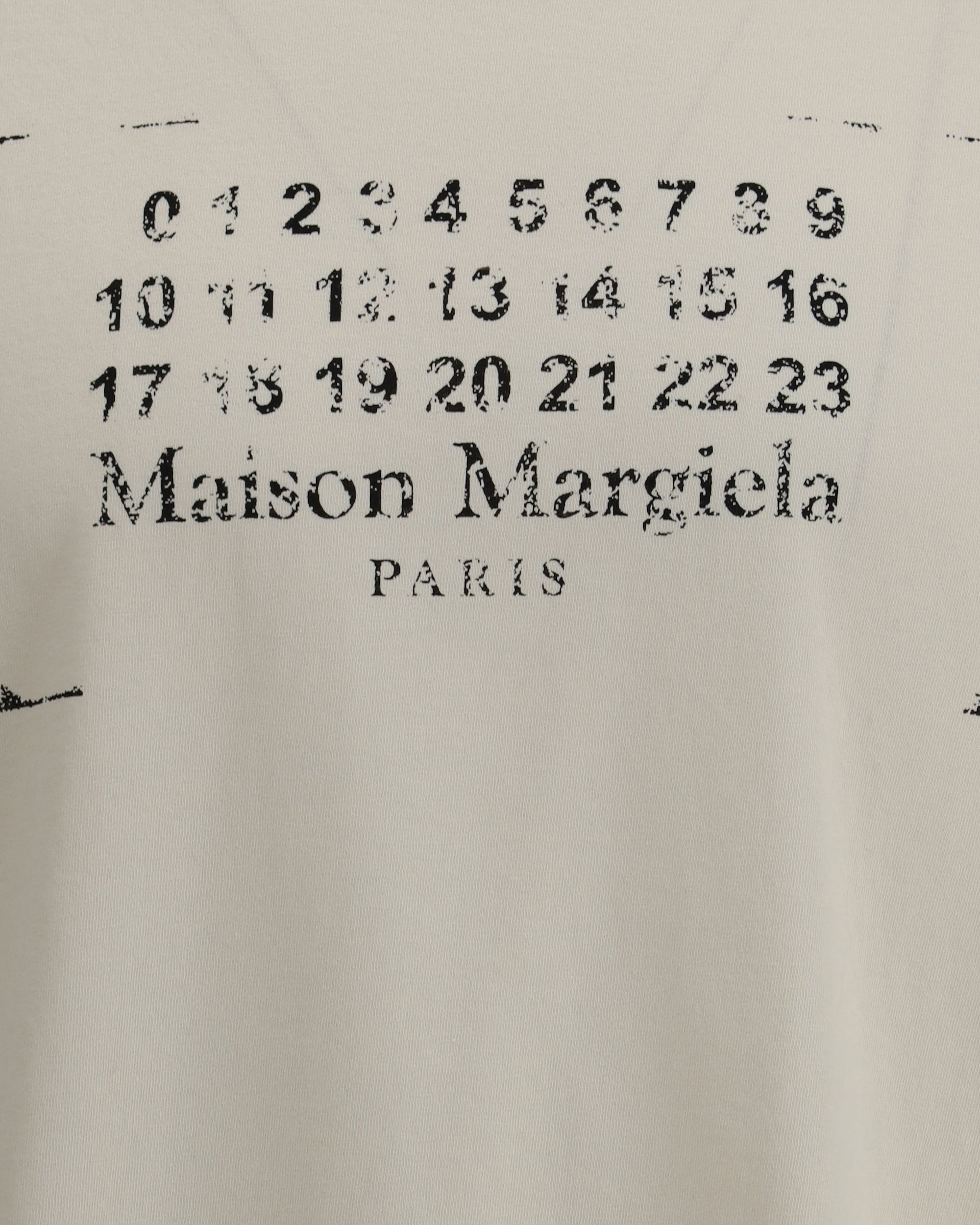 Margiela's cotton T-shirt is a simple yet distinctive garment. The ribbed crew neck and clean design offer comfort and versatility, while the brand's iconic logo printed on the front adds a recognizable touch. White stitched backstitching, a signature detail of the brand, lends a unique and contemporary accent.