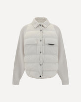 The Moncler x FRGMT Anise Jacket embodies the collection’s college style, combining practicality with contemporary design. Crafted from a lightweight cotton and nylon blend, this puffer jacket is soft to the touch and compact. Inspired by letterman jackets, the Moncler Genius piece is embellished with a bold monogram patch and embroidered logo that enhance its character. The design features a V-neckline on the front, a front button closure and two side zipped welt pockets, offering functionality and sophisticated style. A versatile piece that reflects the sporty elegance typical of the collaboration between Moncler and FRGMT.