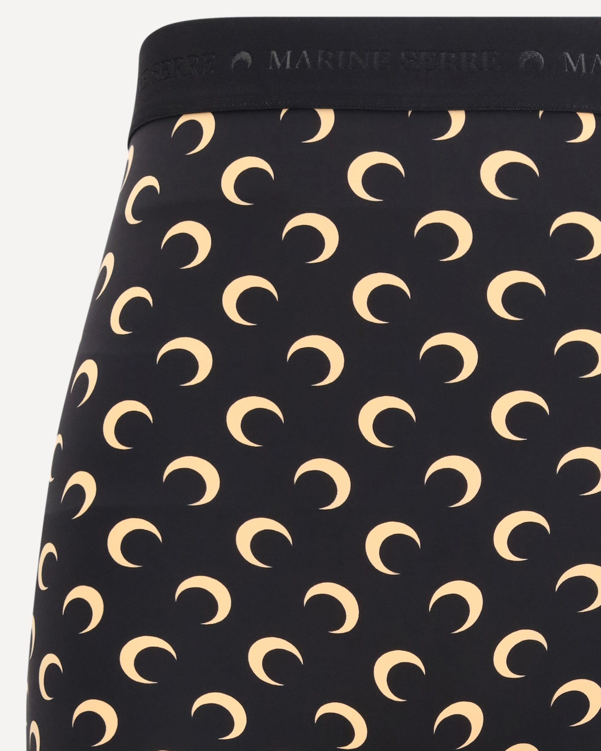 The technical stretch fabric Shorts by Marine Serre feature a sporty and contemporary style. Designed with a mini length and a mid-rise elasticated waistband, they offer comfort and freedom of movement. Crafted from stretch technical fabric, they are defined by an all-over monogram pattern with the brand’s iconic Crescent Moon logo. The straight hem completes the clean and dynamic design, ideal for casual or sporty looks.