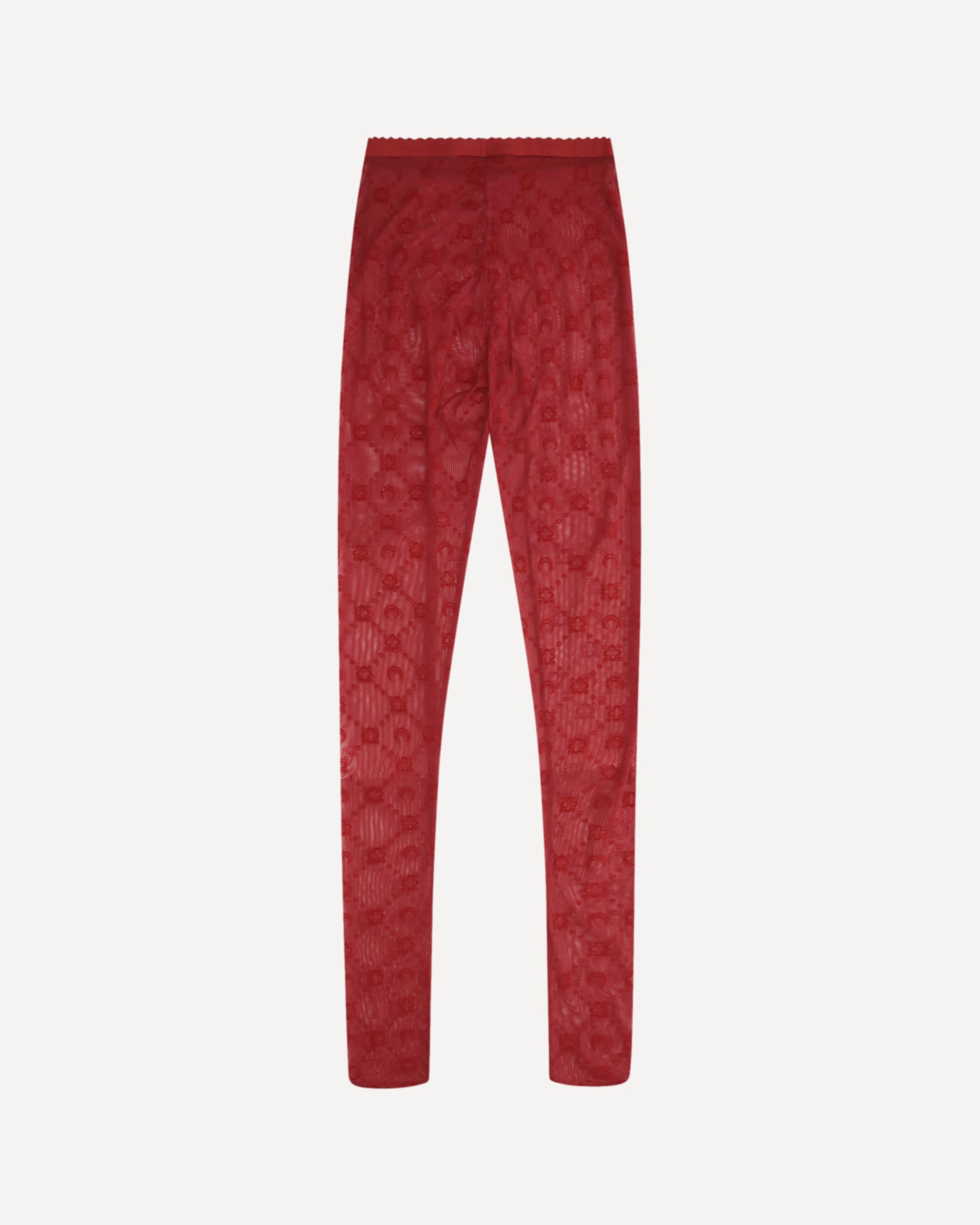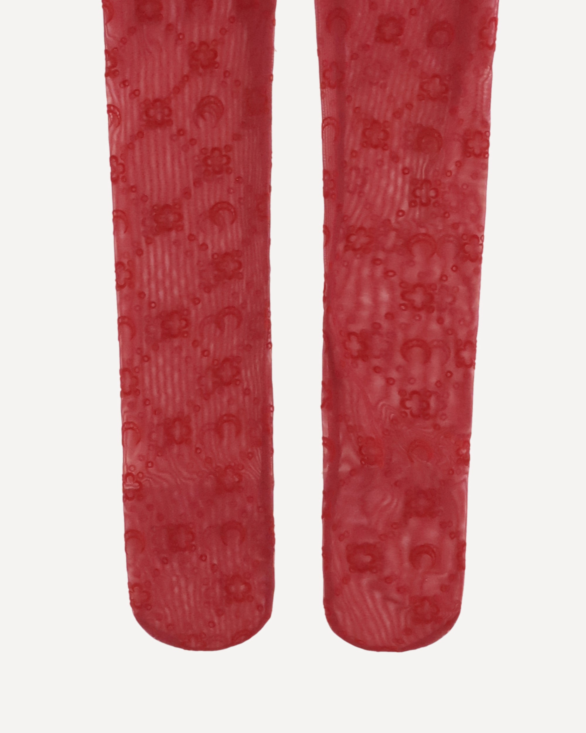 The Recycled Mesh Flocked Tights embody Marine Serre’s innovative and sustainable vision. The high-waisted, second-skin silhouette embraces the body with lightness and precision, enhancing femininity through a contemporary design. The all-over flocked Moonogram motif creates a refined balance between texture and transparency, while the branded elastic waistband ensures both comfort and structure. An iconic piece that merges aesthetics and responsibility, reflecting the modern essence of the house.