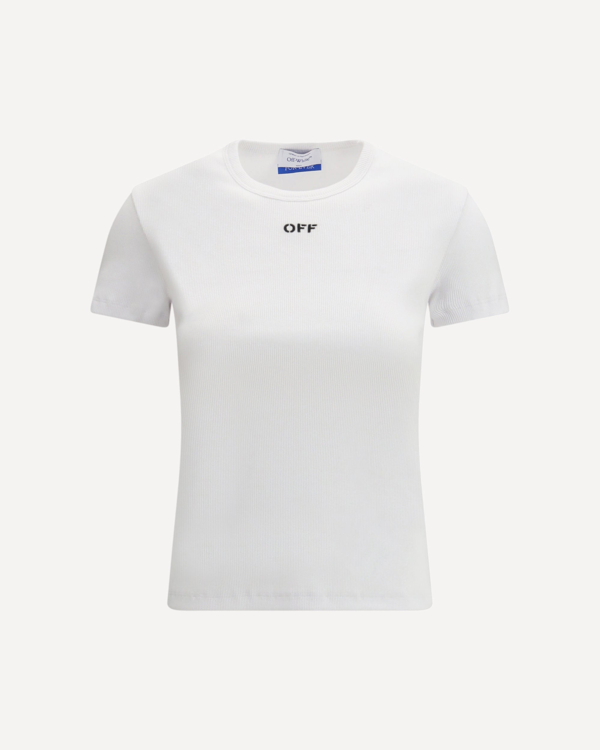 The Off Stamp Rib Basic T-shirt by Off-White is a contemporary essential crafted from ribbed cotton with elastane, offering a close, comfortable fit. Its clean design is elevated by a small embroidered stamp logo on the chest, a subtle yet iconic brand detail. Made in Italy, this T-shirt blends sartorial quality with modern minimalism and is offered as a Tmall exclusive.