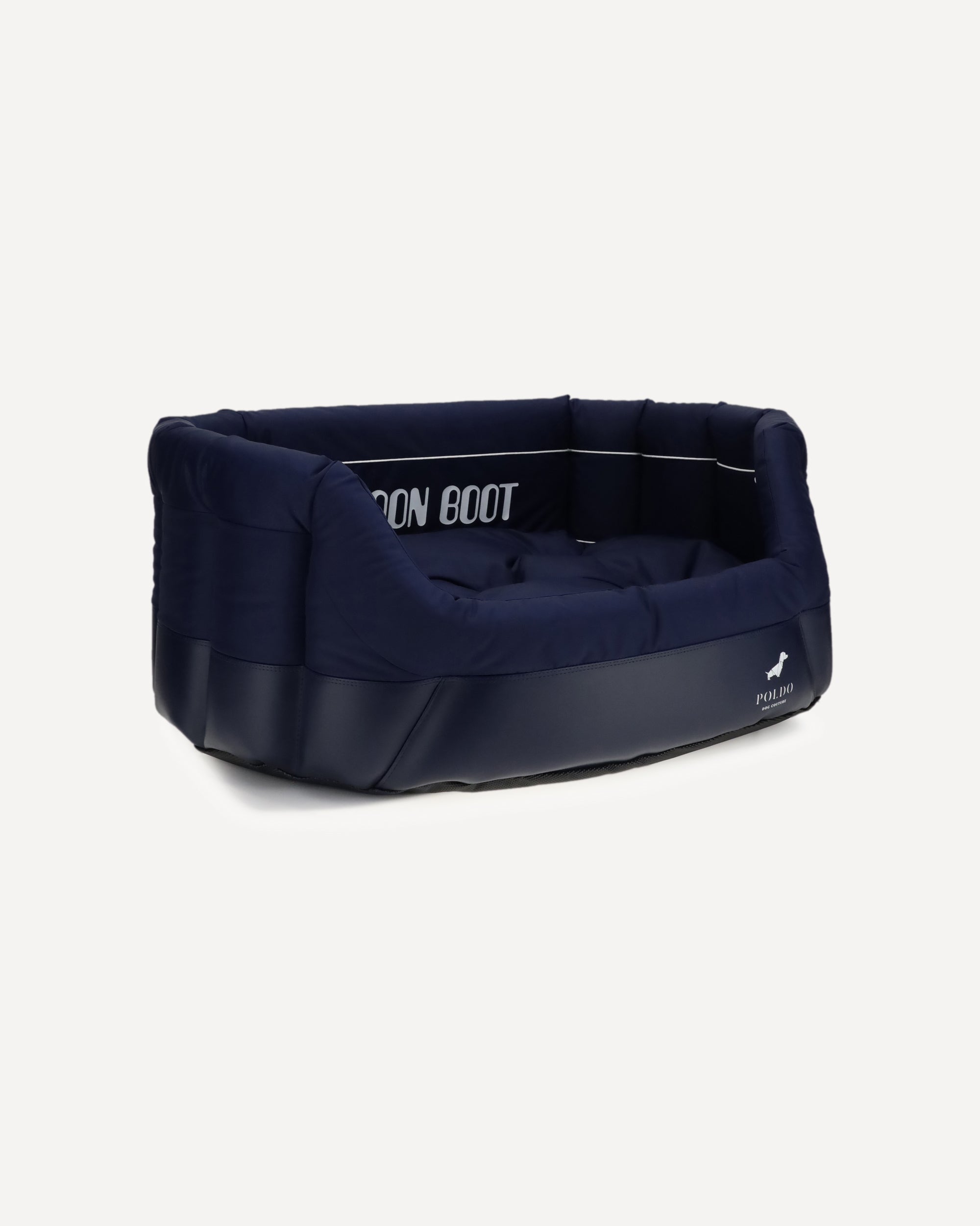 The Poldo Couture x Moon Boot Sofa is crafted from padded nylon and features a soft, enveloping design created to deliver maximum comfort to your pet. Iconic Moon Boot–inspired details, such as decorative laces and logo print, add a distinctive and contemporary touch. It is a functional yet stylish accessory, perfect for giving your pet an elegant and cozy resting space.