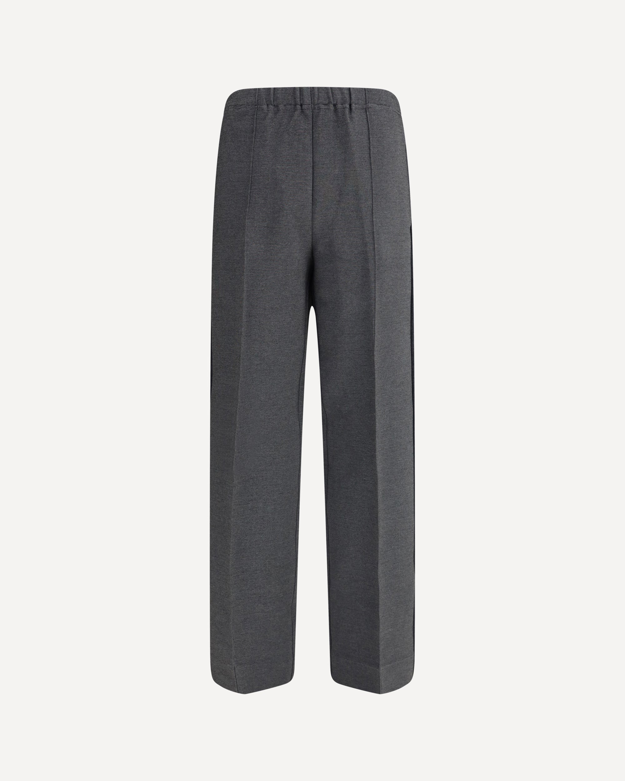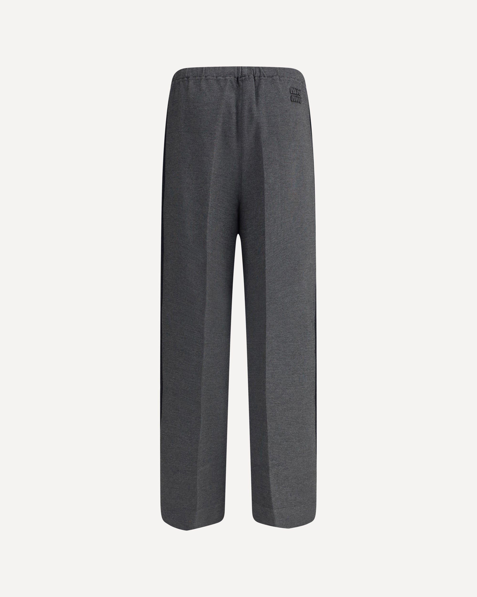 The Miu Miu Knit Trousers feature an elastic waistband and pleated front, with a straight fit and side knitted band detail. Finished with welt pockets, embroidered logo, and an unlined design, they combine comfort with sporty elegance in a contemporary piece
