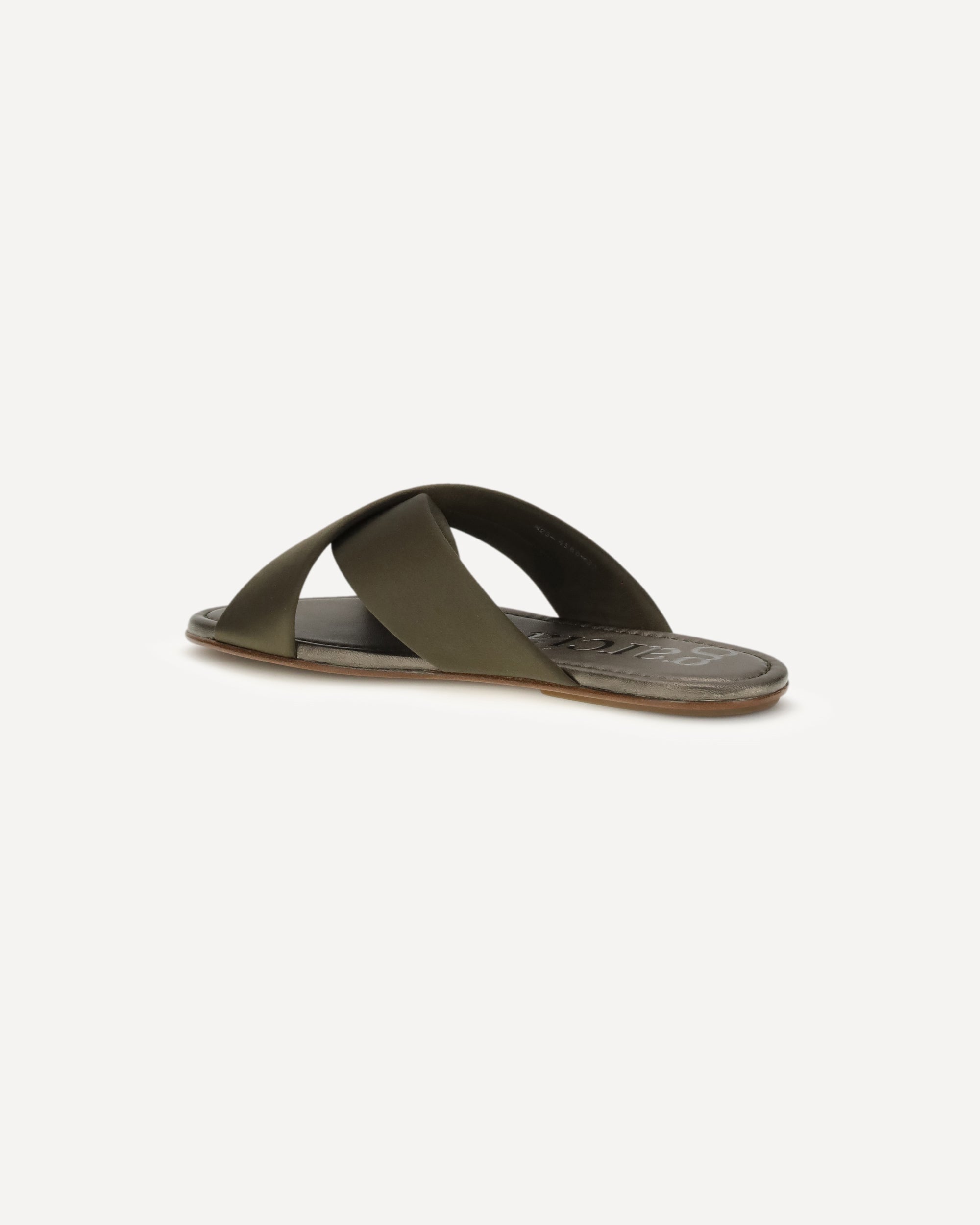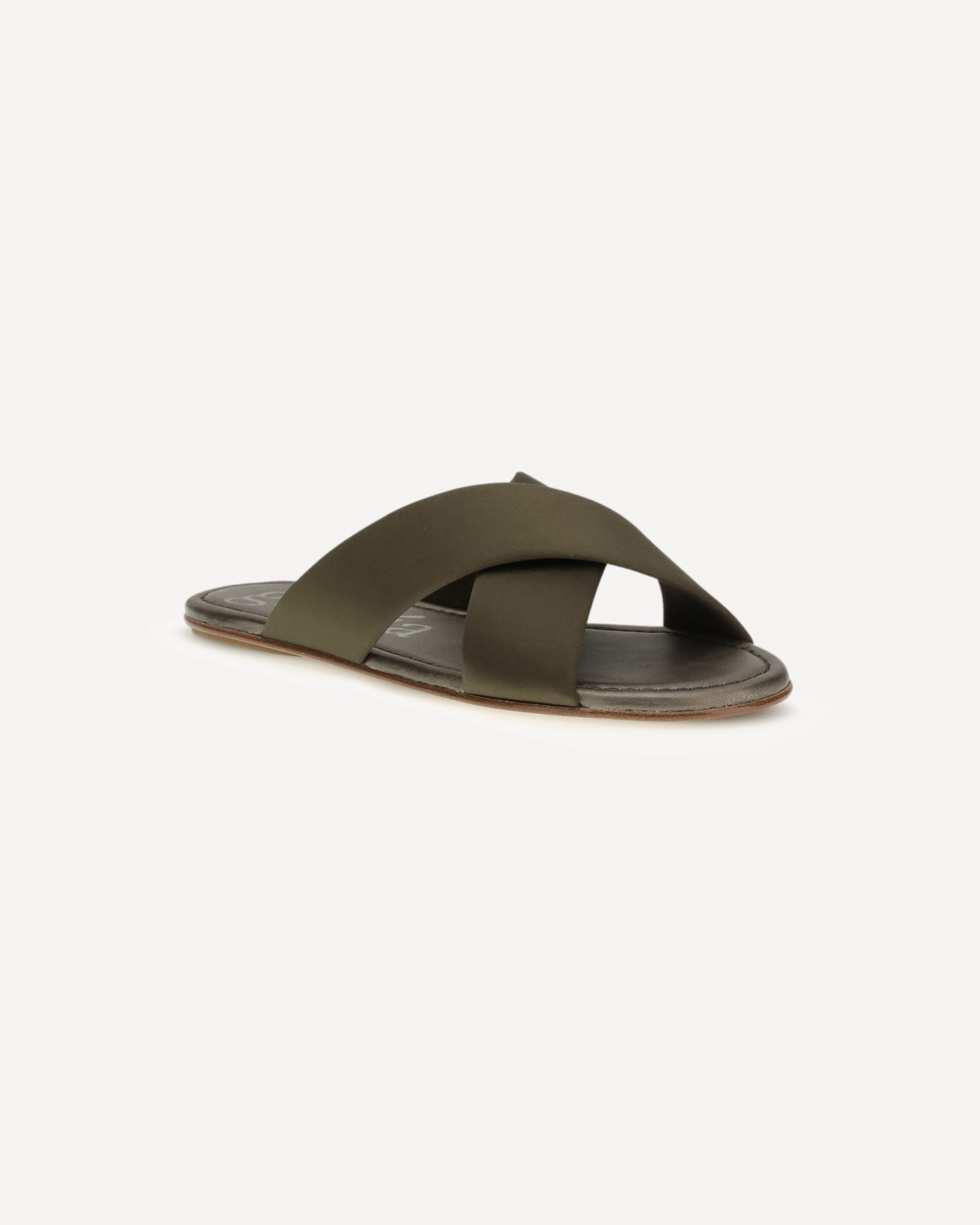 The Pavana Sandals by Pedro Garcia is an elegant olive silk–satin flat slide featuring crossover straps that wrap the foot with effortless sophistication. Expertly crafted in Spain, it transitions seamlessly from daytime wear to evening looks and is finished with the brand’s signature anti-slip TPU sole.