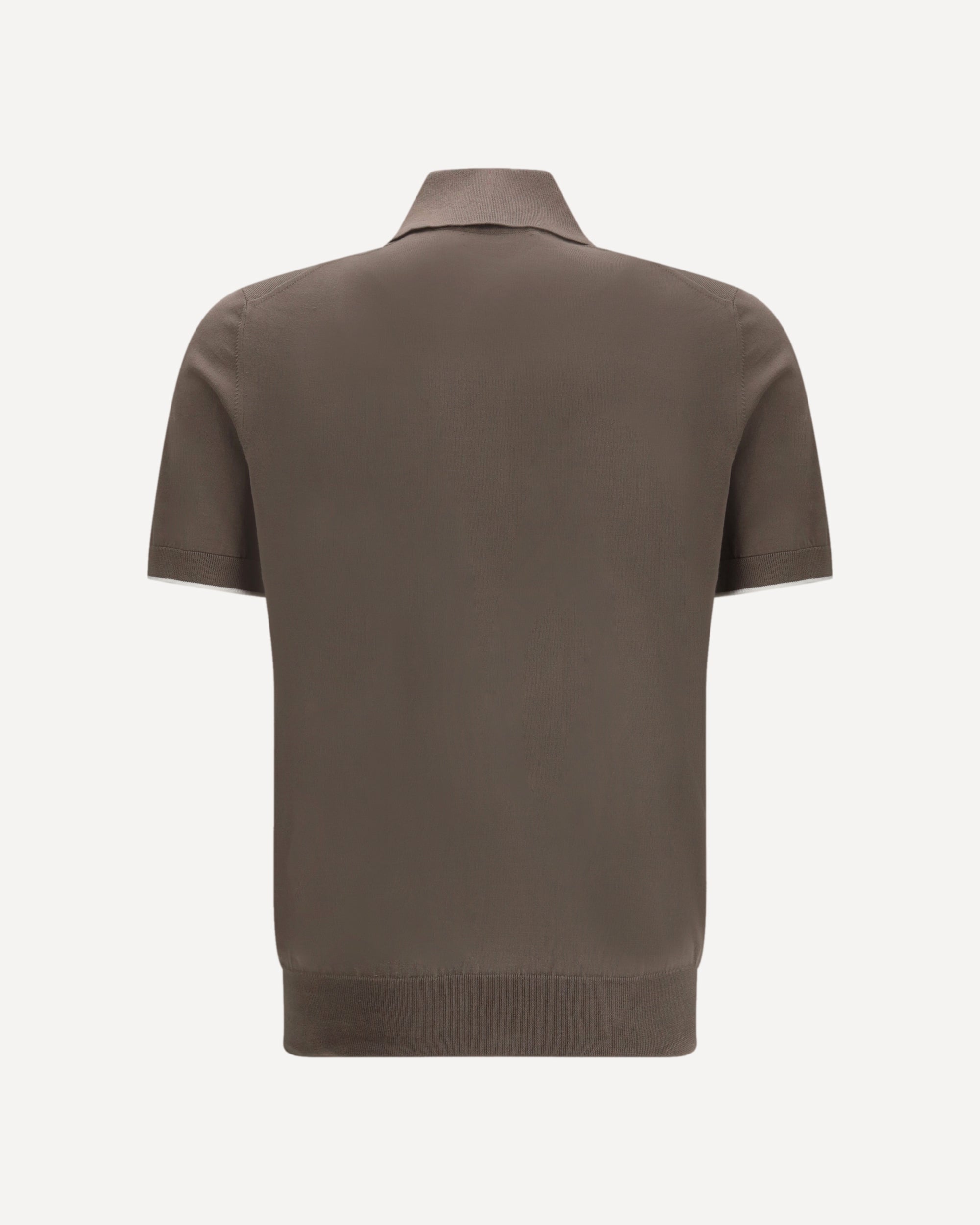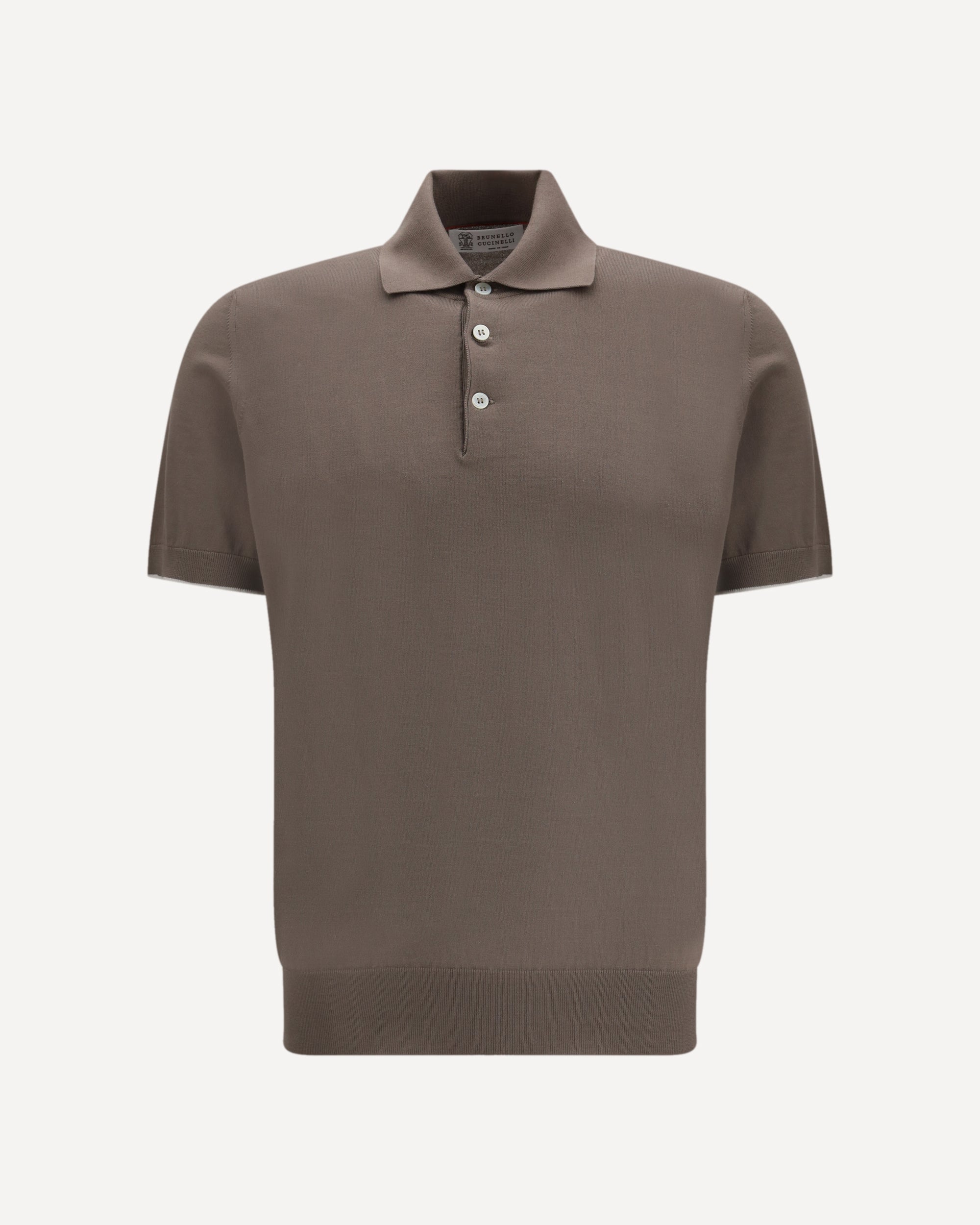 The Polo Shirt in cotton by Brunello Cucinelli conveys refined simplicity through a classic ribbed collar that brings balance and clean structure to the design. The tone-on-tone front buttons offer a discreet and elegant detail, while the ribbed sleeves with contrasting trim introduce a subtle yet distinctive touch. The ribbed hem completes the silhouette with definition, and the regular fit ensures a natural and composed outline. The Polo Shirt embodies Brunello Cucinelli’s understated sophistication, making it a versatile piece suited to a refined and effortless everyday style.