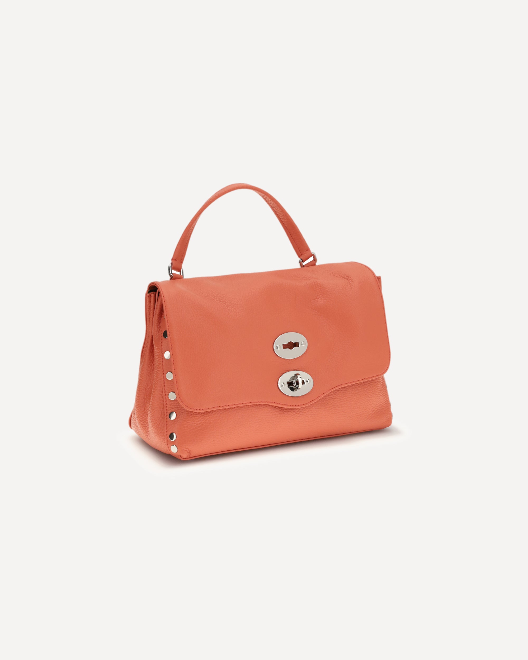 The leather Postina Daily Shoulder Bag by Zanellato is an elegant example of functionality and refined style. Featuring a single flat leather handle on top, it offers a front swivel hook closure that adds a touch of practicality. The adjustable and removable shoulder strap allows for different modes of use, while flat studs on the side panels add a characterful accent. Inside, two compartments and a welt pocket offer ample organization, making this bag an accessory as chic as it is functional.