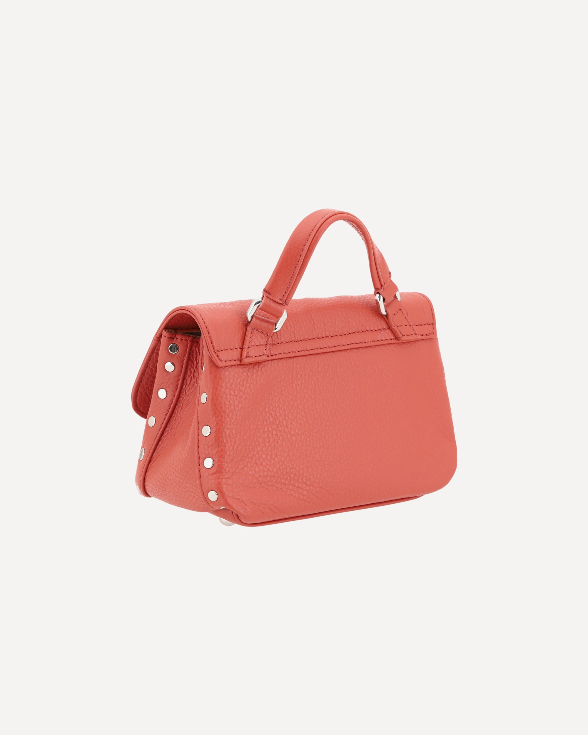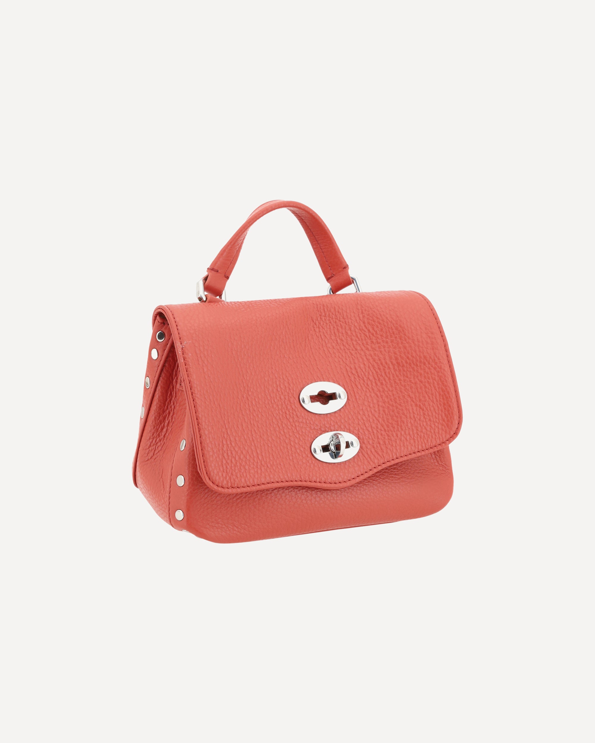 The leather Postina Daily Shoulder Bag by Zanellato is an icon of functional elegance and Italian craftsmanship. Made of grained leather, it is distinguished by its soft, structured design enhanced by refined contrasting metallic studs. Featuring a short leather handle and an adjustable, removable shoulder strap, it offers versatility of use. The front hook-and-eye closure adds a classic touch, while the interior, with a single compartment and flat zippered pocket, provides practicality and order.