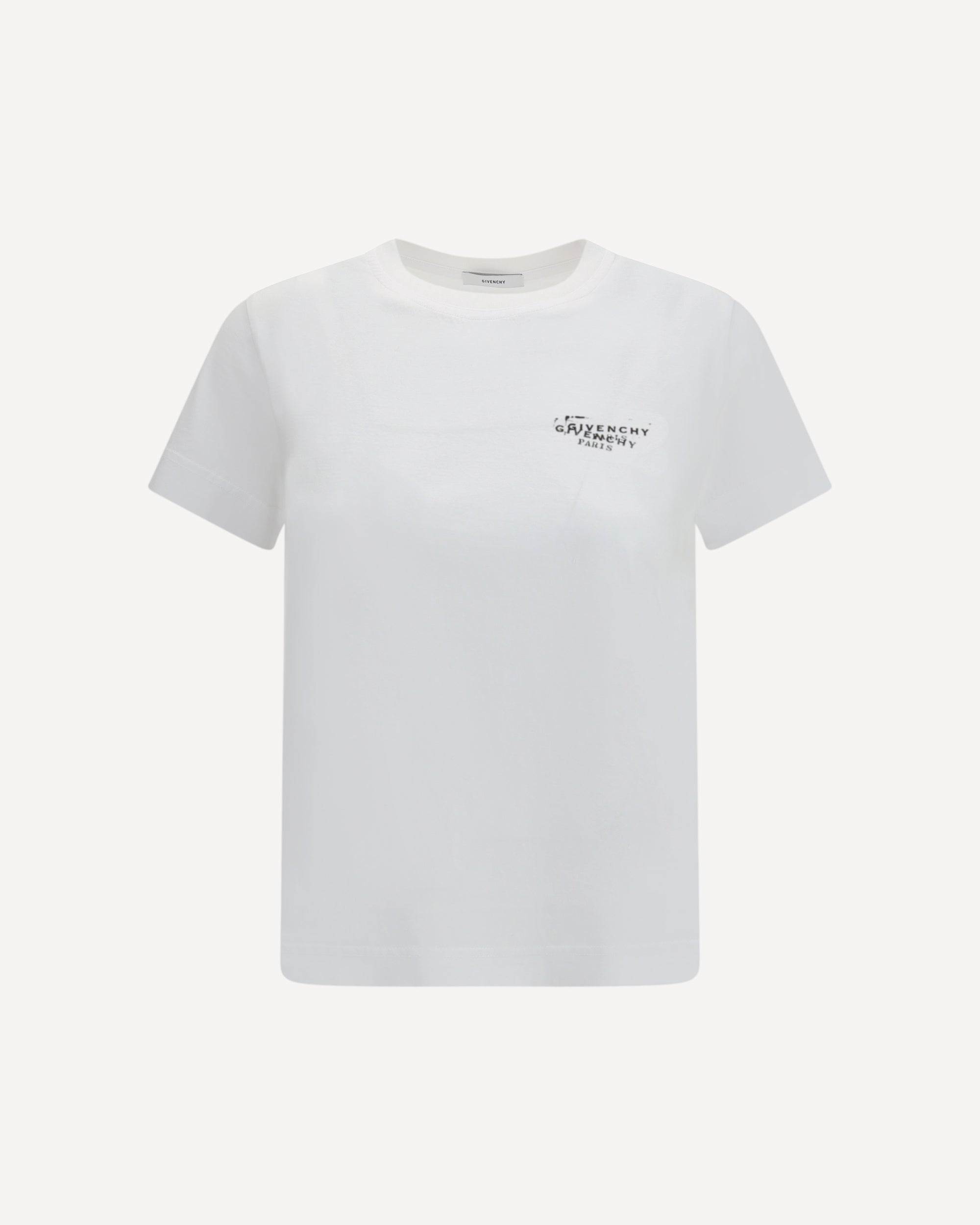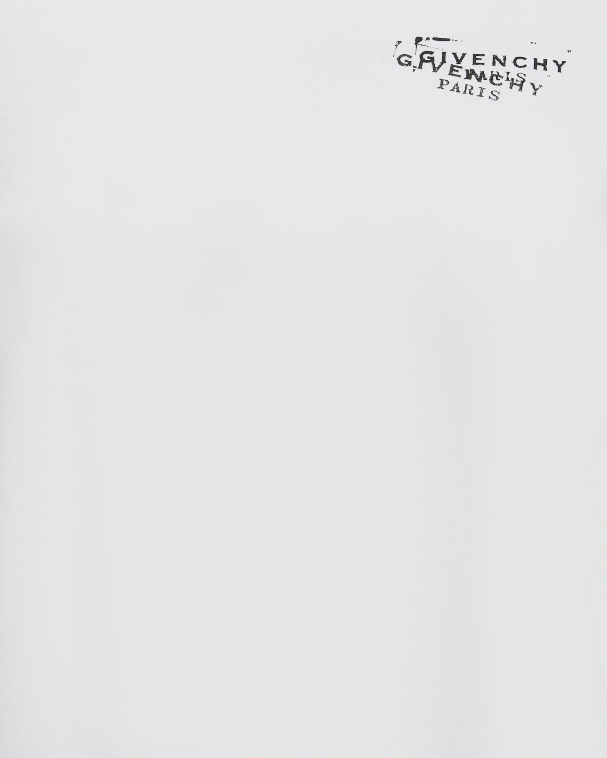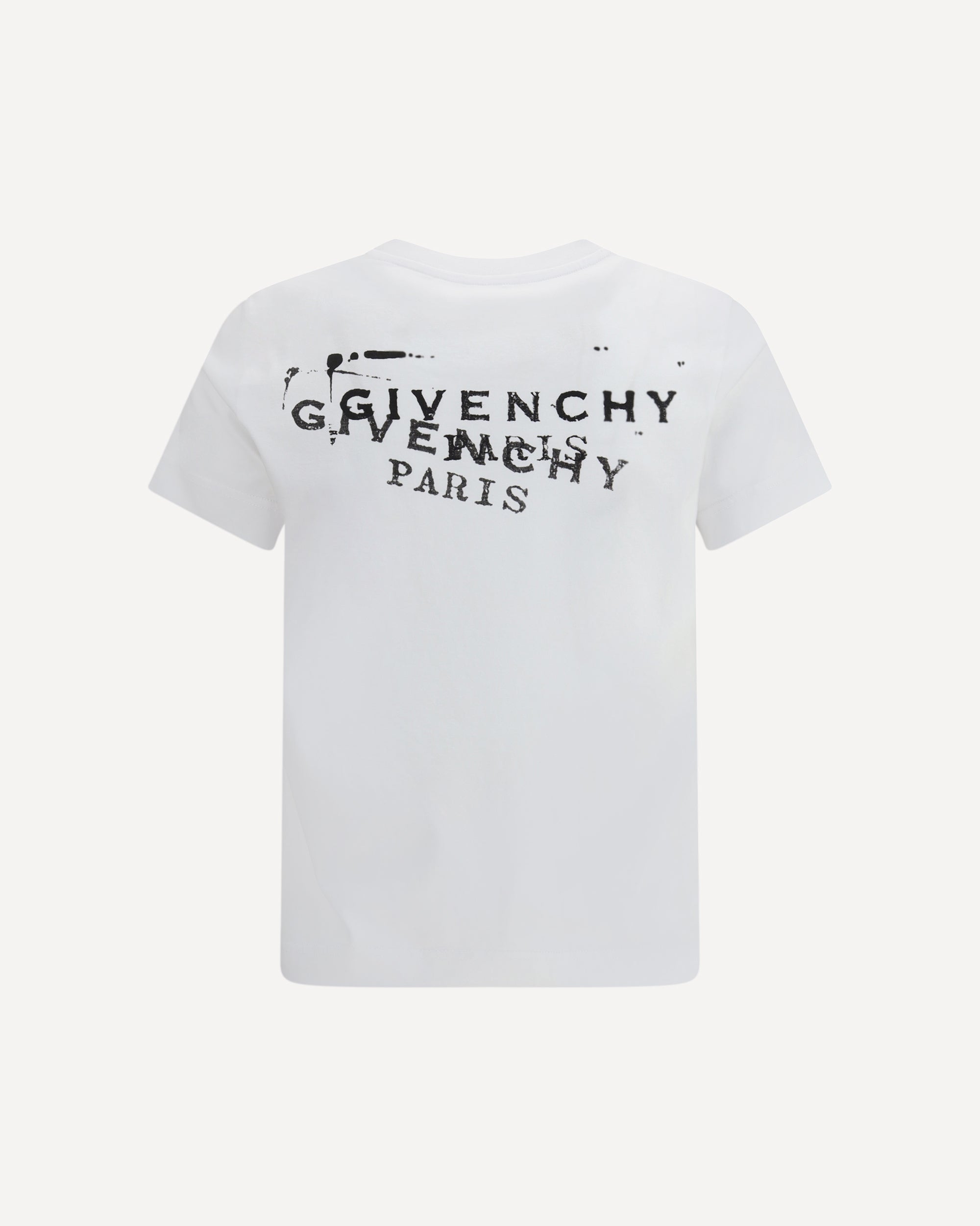 The cotton T-shirt by Givenchy is a versatile and refined garment featuring a ribbed crew neck that defines its structure. The contrasting logo, printed on both the front and back, lends a distinctive and modern touch. A minimal interpretation but with personality, perfect for adding a stylish accent to a casual look.