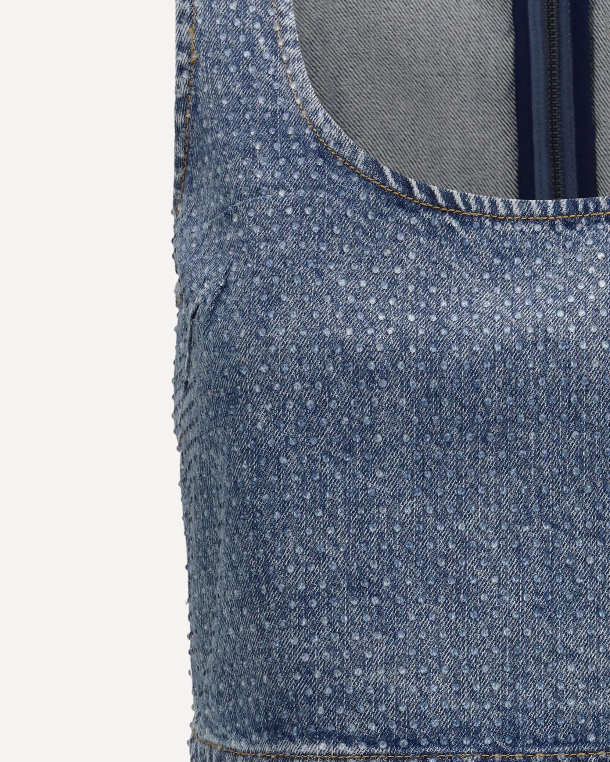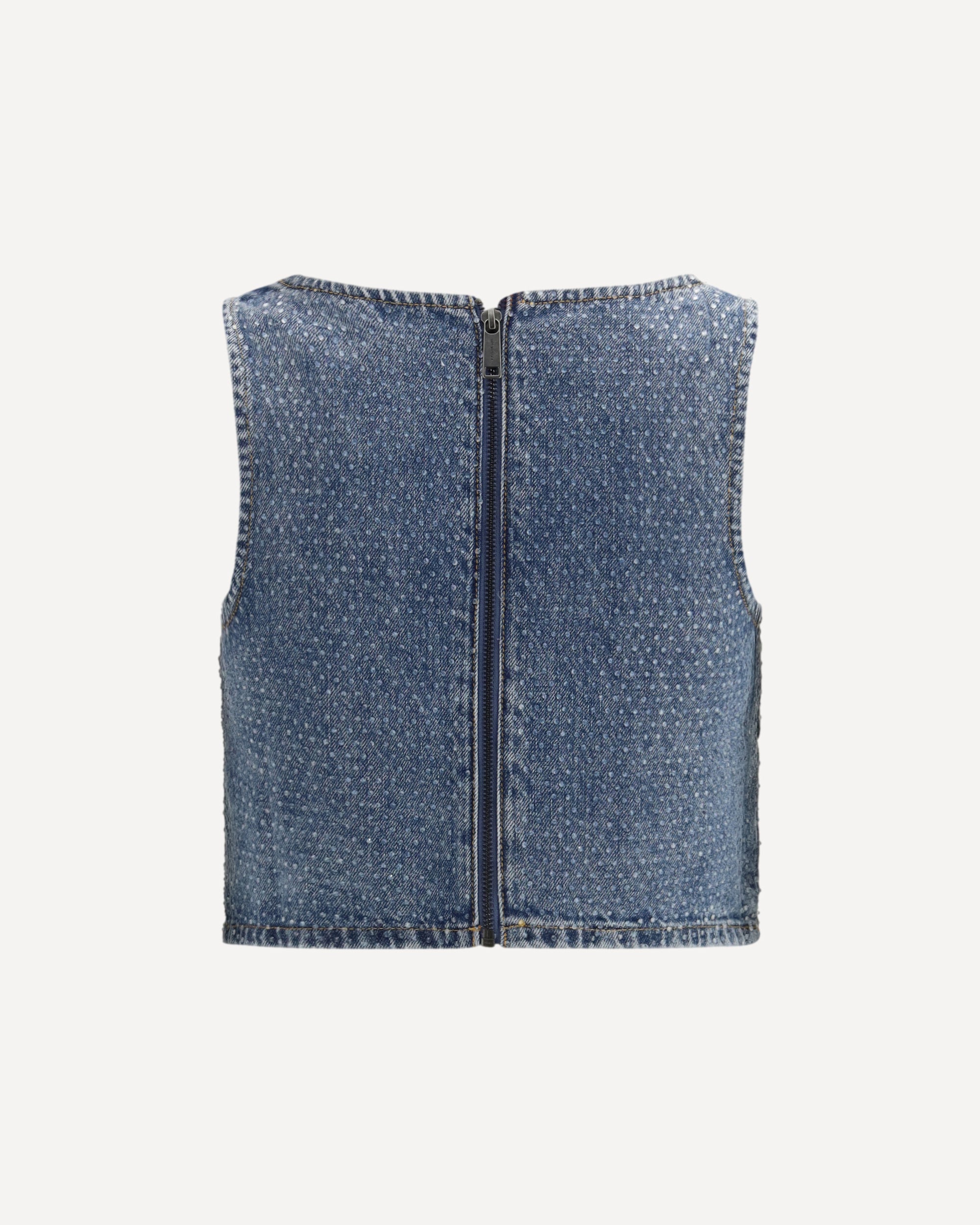 The rhinestone denim crop Top by Self Portrait is designed to shine during special occasions and fun nights out. Crafted from denim, it features all-over rhinestone embellishments that add a dazzling effect. The relaxed fit and cropped length make it perfect to pair with high-waisted pieces, while the exposed zip closure at the back adds a modern edge. True to size, it’s an ideal choice for bold evening looks.