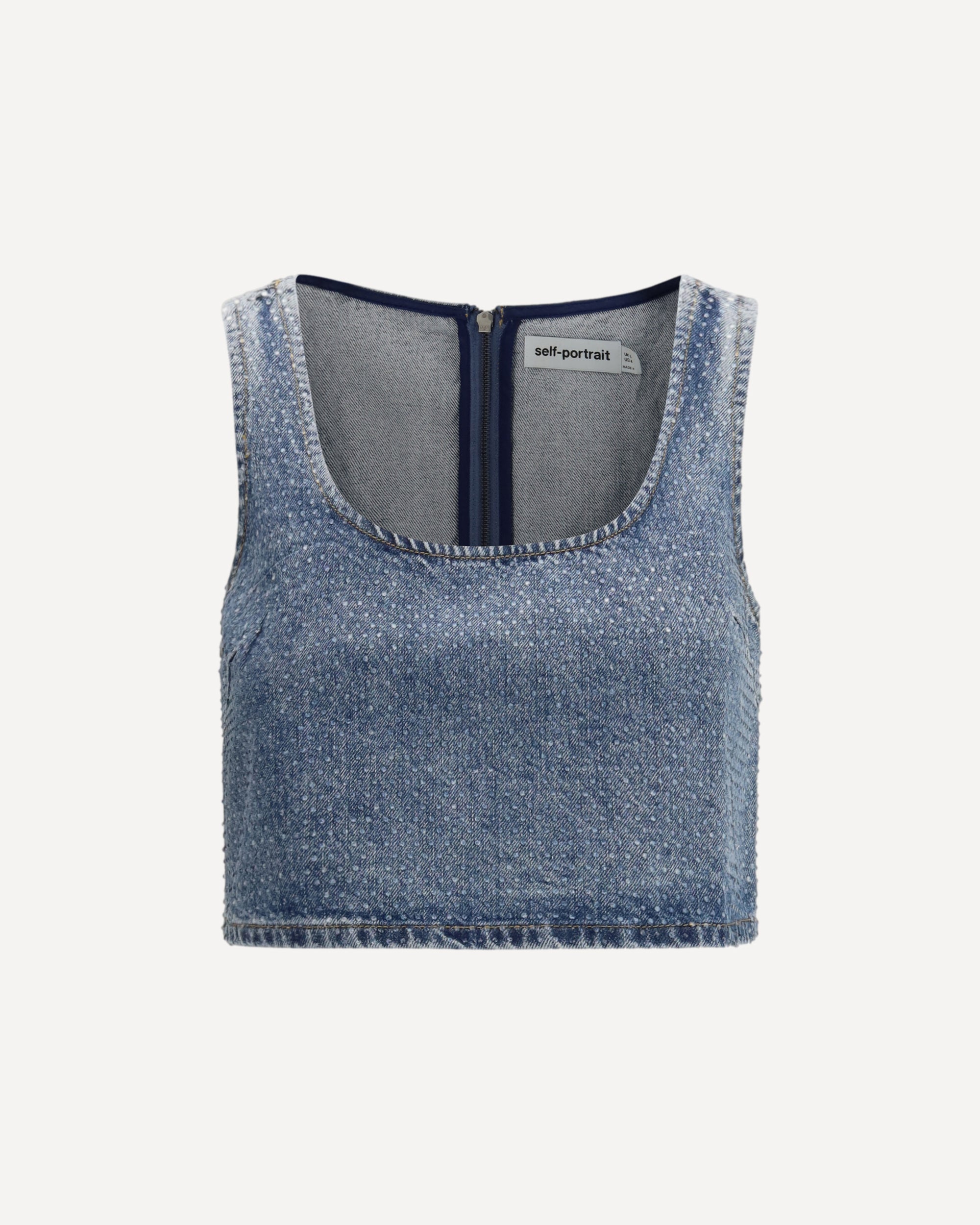 SELF-PORTRAITRhinestone denim crop Top