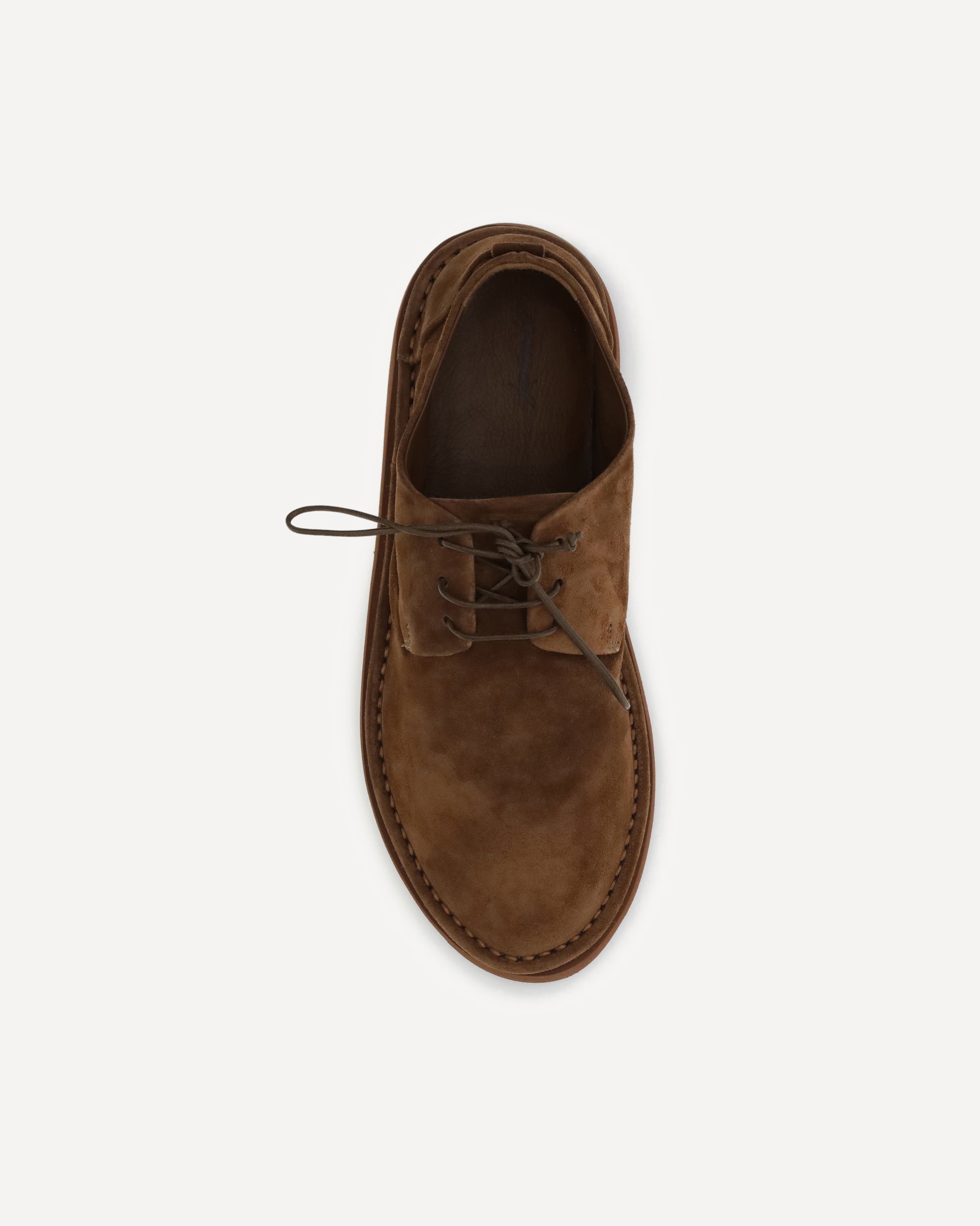 Marsèll's Sancrispa suede Lace-Ups are a perfect balance of craftsmanship and contemporary design. Featuring a lace-up upper closure and a round toe, these shoes offer optimal comfort and timeless style. The lugged sole adds a touch of ruggedness and character, making them ideal for those looking for versatile, quality footwear.