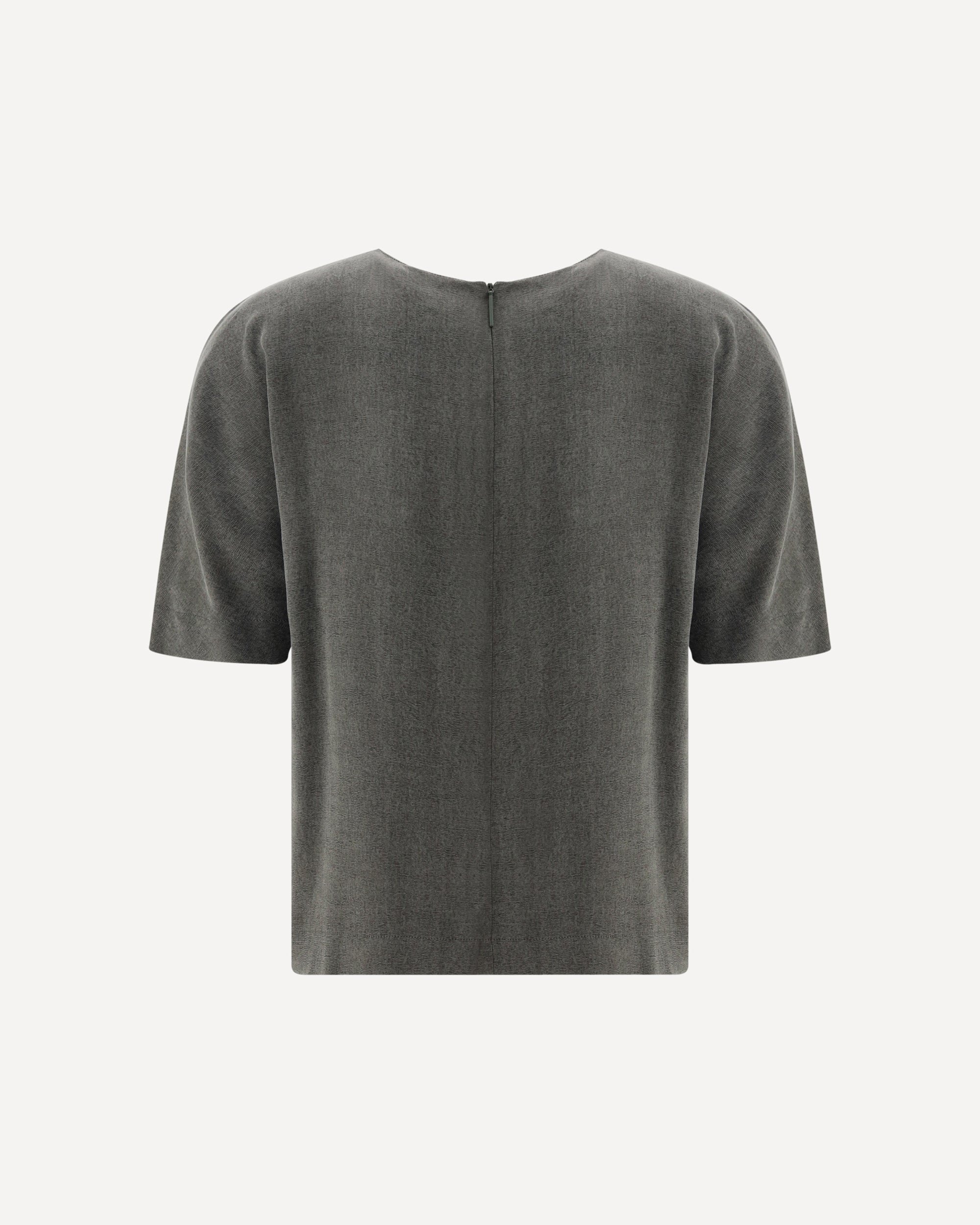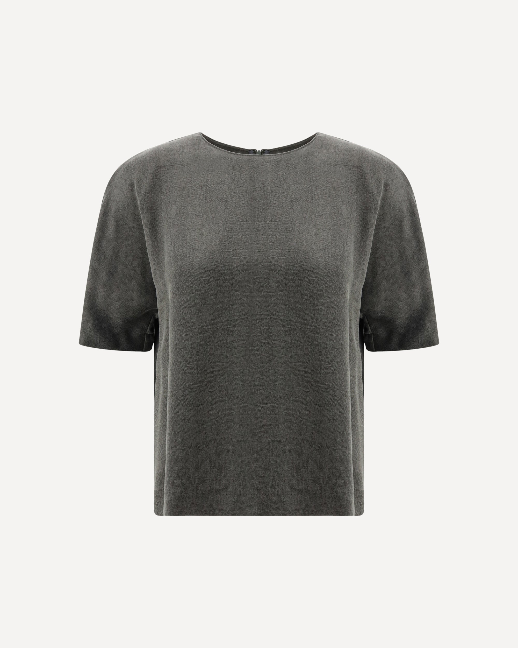 Giorgio Armani's Satin Top is an elegant and refined piece. Featuring a short-sleeved design and a classic crew neck, it offers a simple yet sophisticated fit. The concealed zip fastening at the back adds a subtle and modern detail, adding functionality without compromising the clean and minimalist design of the top. Perfect for formal or elegant occasions, this piece reflects the quality and distinctive style of the brand.