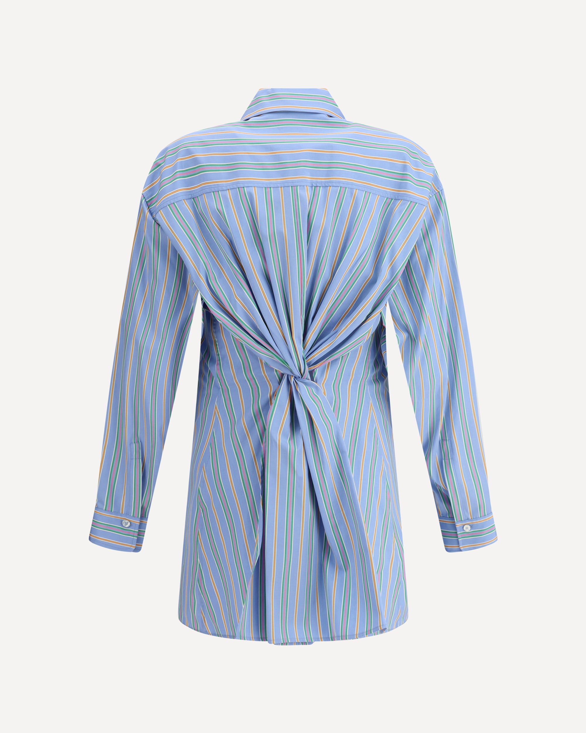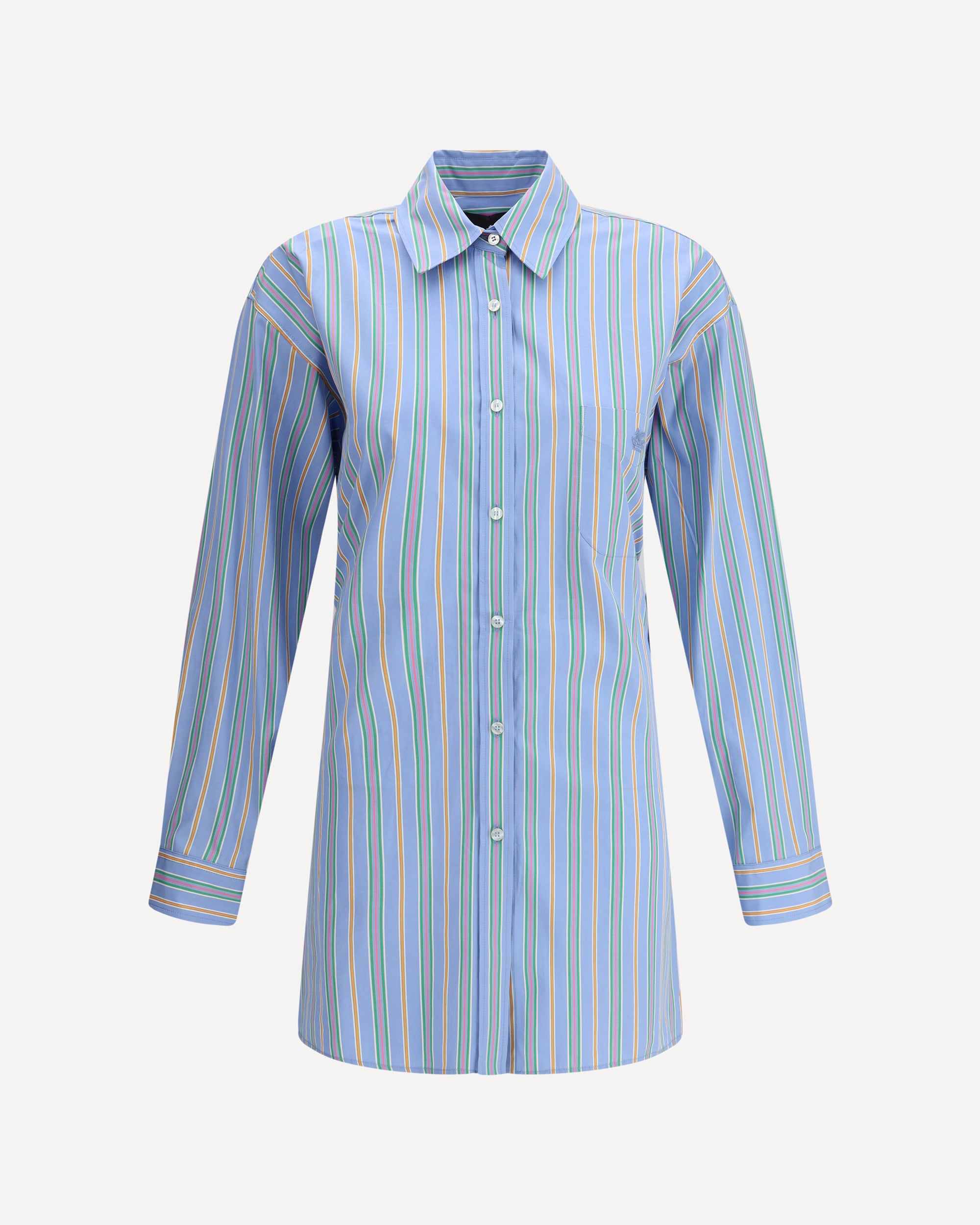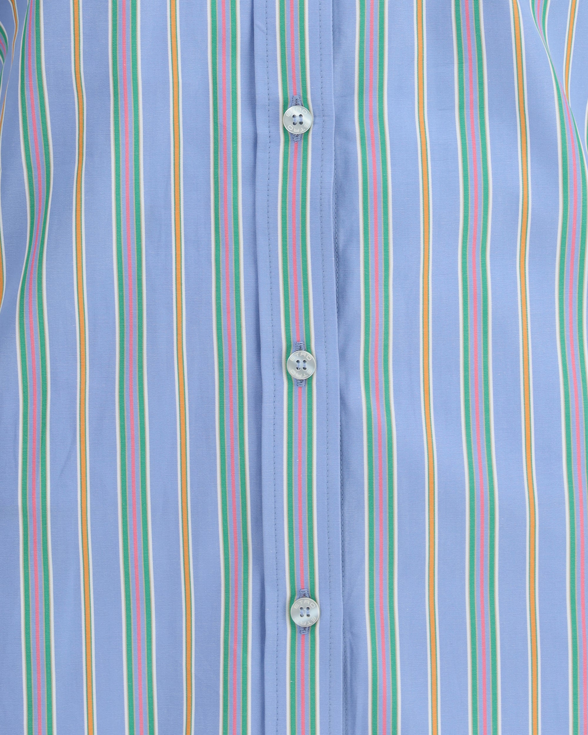 Etro's cotton Shirt combines style and sophistication with its striped design. It features a classic collar, front button closure and dropped sleeves for a touch of relaxed elegance. On the front, a welt pocket with embroidered logo adds a distinctive detail. The cuffs are adjustable with buttons, while on the back, a refined knot detail with two slits stands out, giving movement and originality to the garment.
