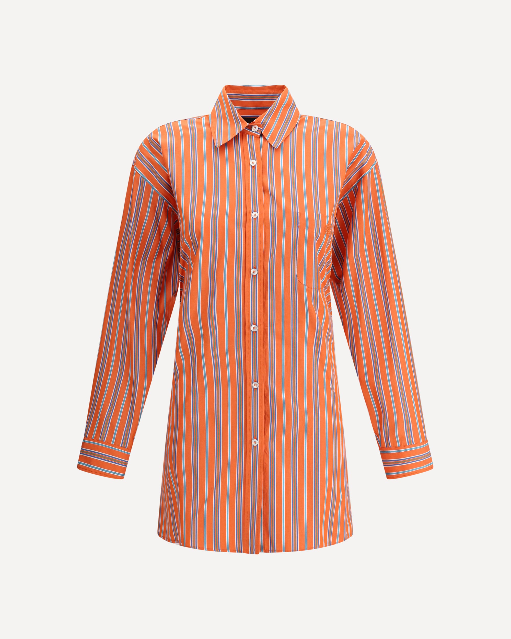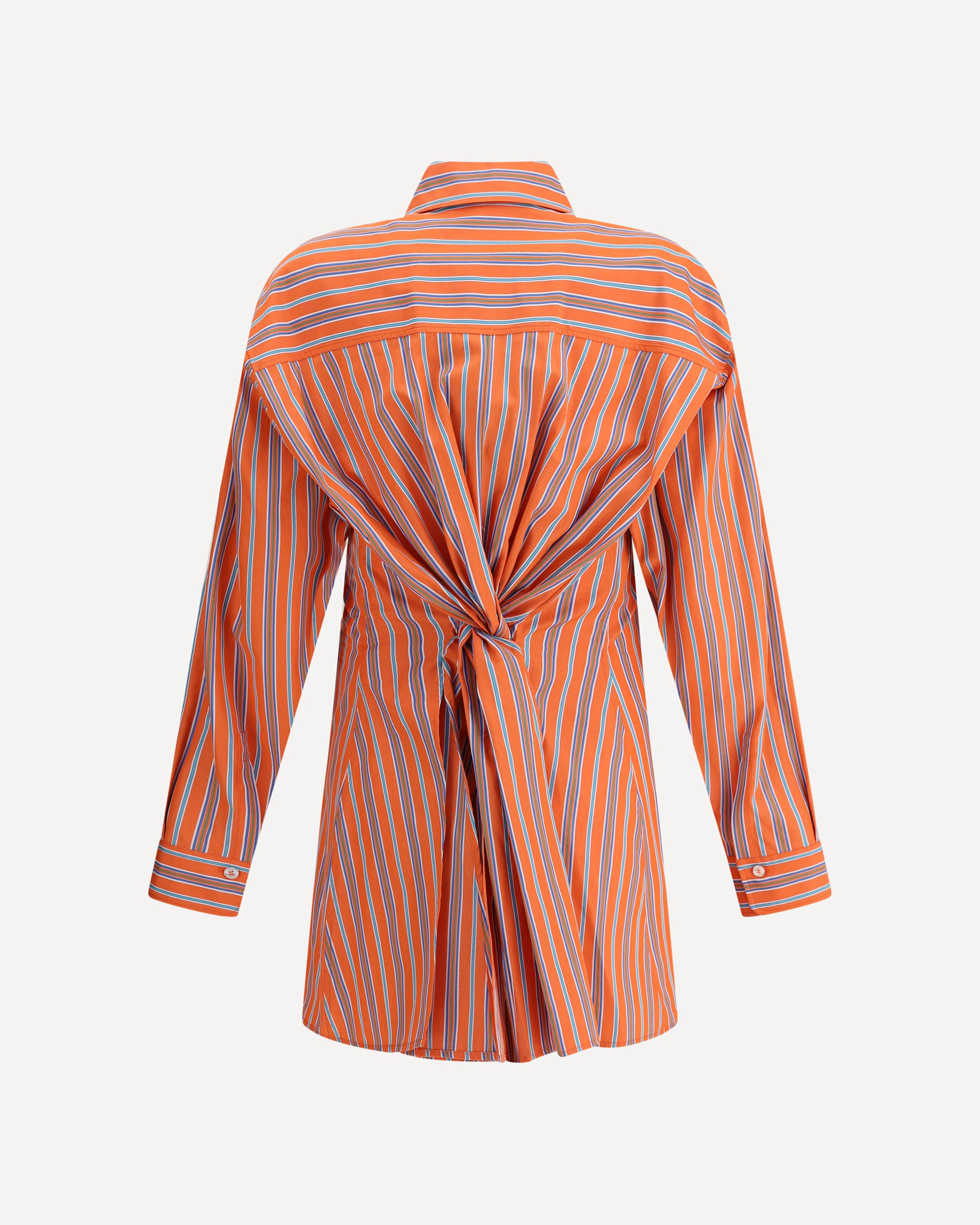 Etro's cotton Shirt combines style and sophistication with its striped design. It features a classic collar, front button closure and dropped sleeves for a touch of relaxed elegance. On the front, a welt pocket with embroidered logo adds a distinctive detail. The cuffs are adjustable with buttons, while on the back, a refined knot detail with two slits stands out, giving movement and originality to the garment.
