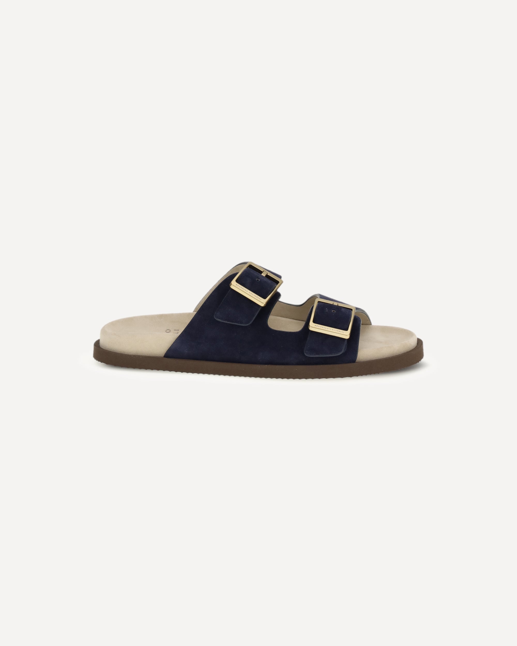 The suede Sandals by Brunello Cucinelli feature an essential, refined design defined by a round toe and soft suede texture. Double adjustable straps, complemented by logo-embossed metal buckles, ensure a comfortable and customizable fit. The suede interior and logo-embossed insole add a touch of craftsmanship, while the rubber sole ensures stability and practicality.