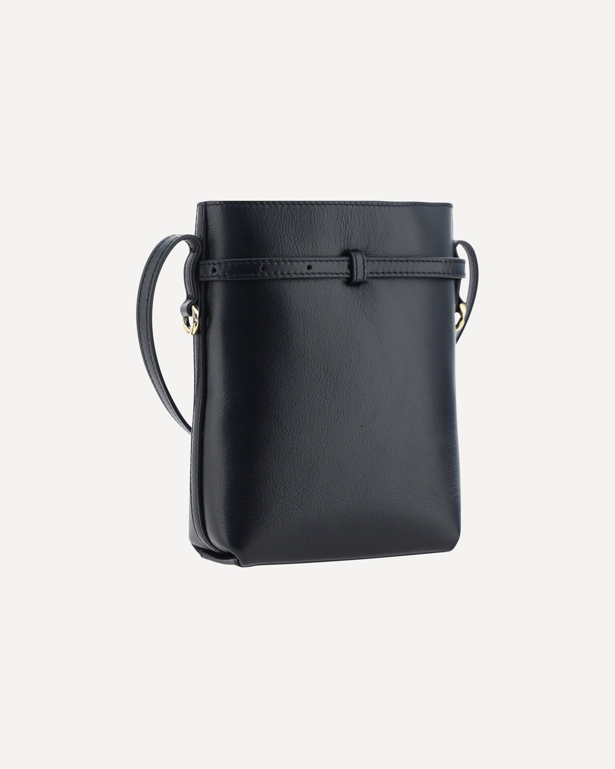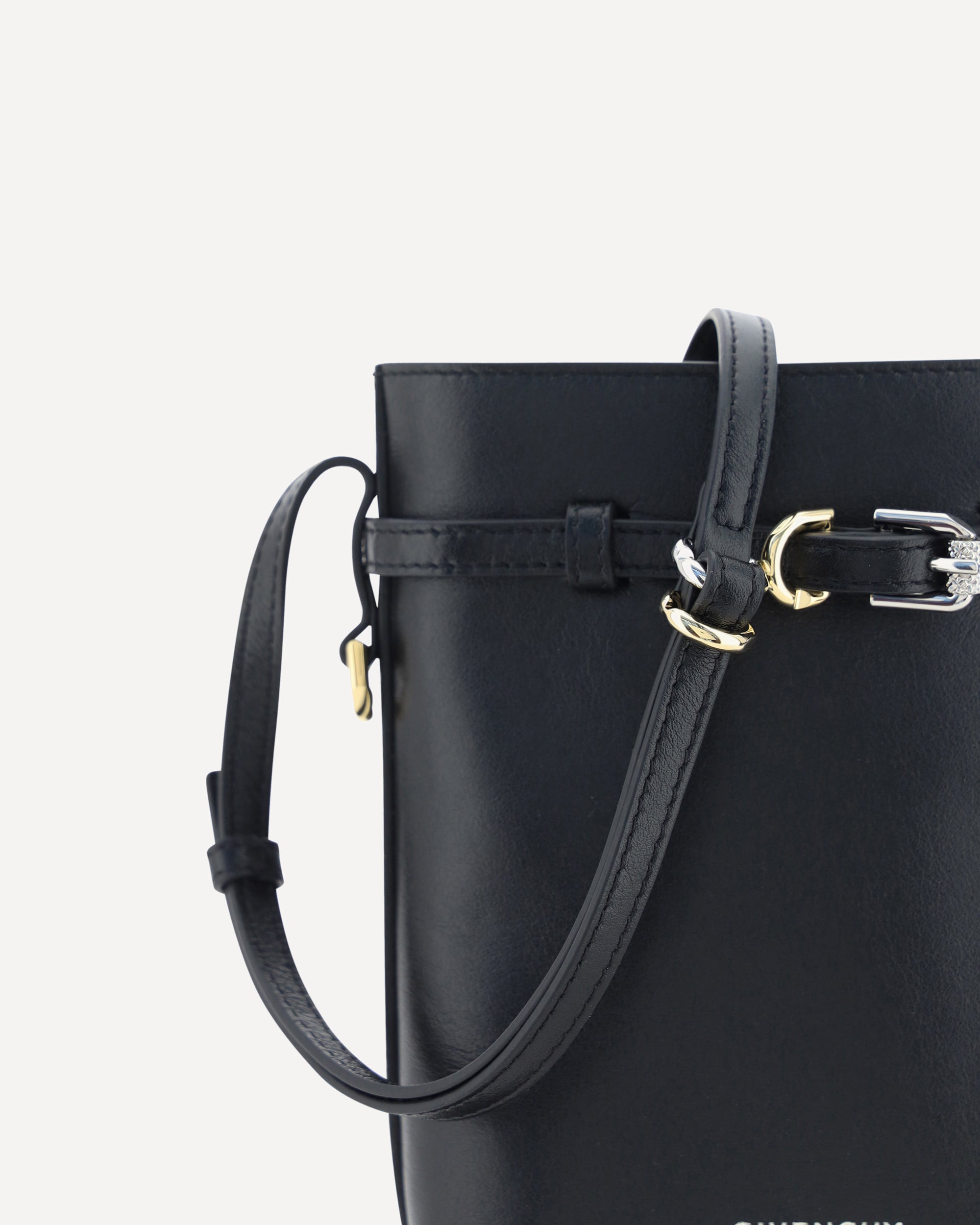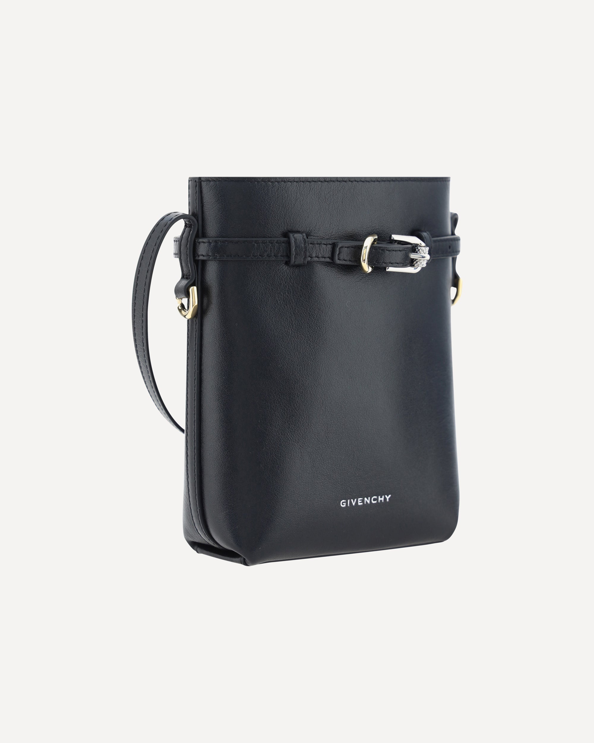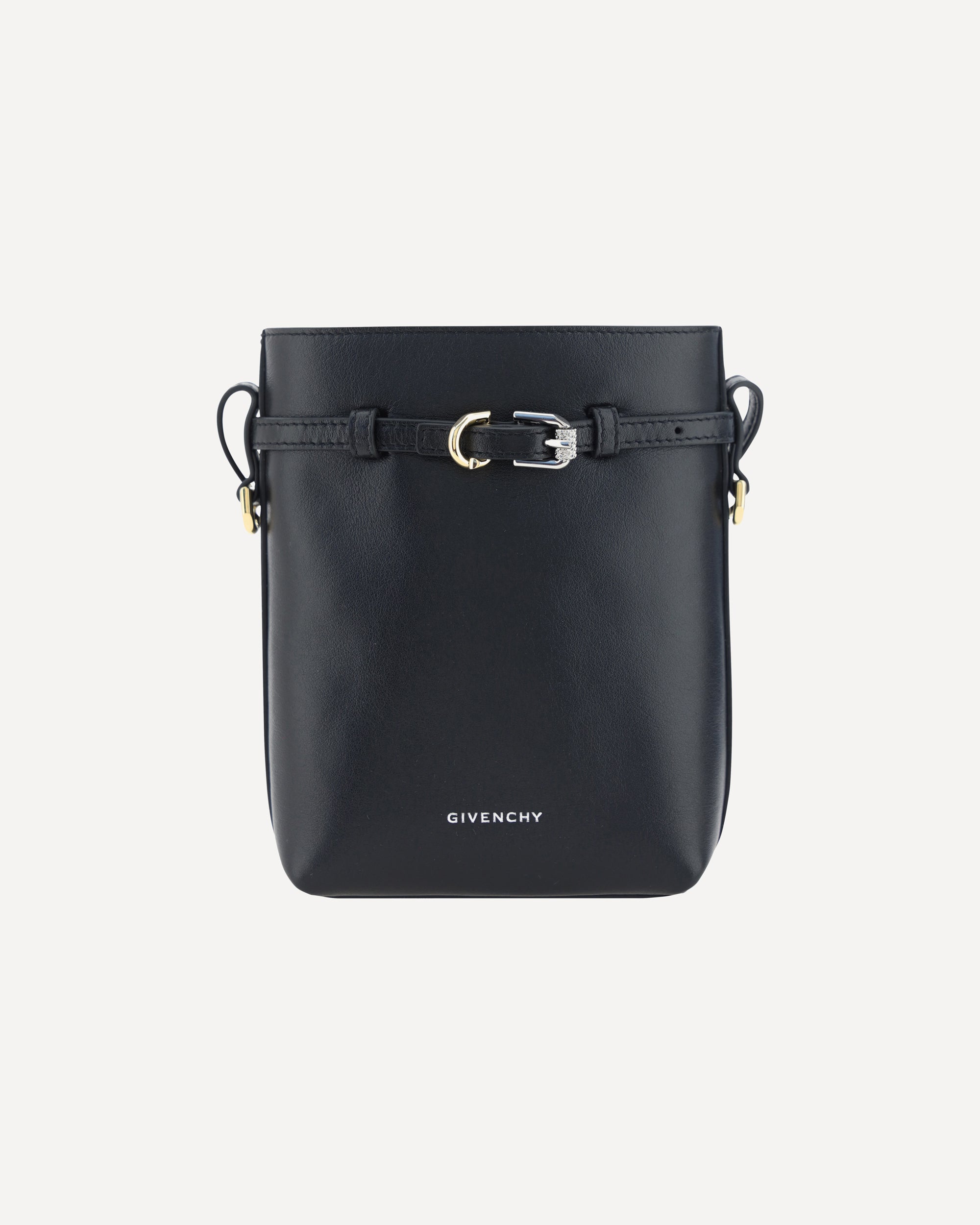 Leather Shoulder Bag by Givenchy features flat top handle, leather strap with adjustable metal buckle at front, single interior compartment, iconic brand signature press-stamped on front.