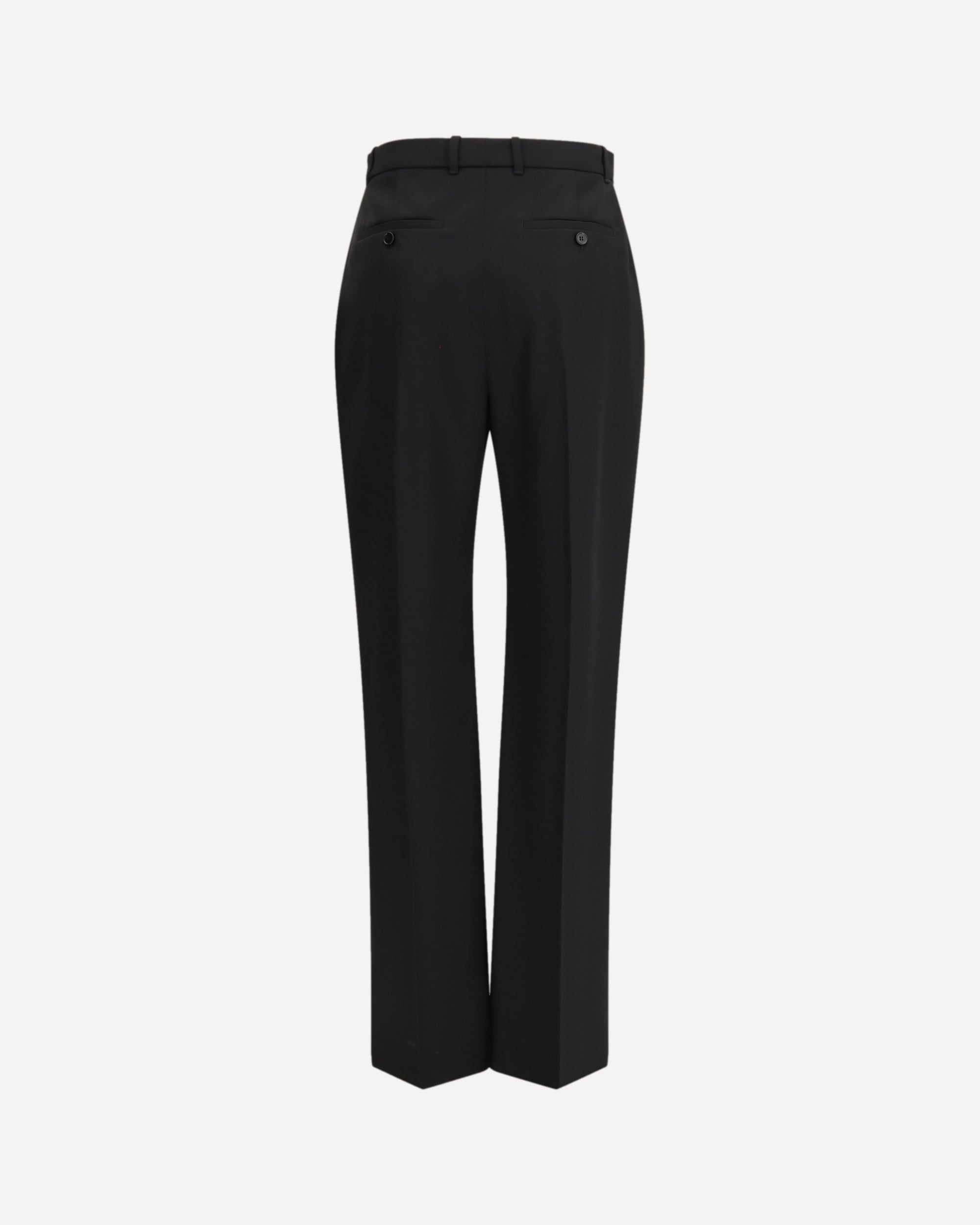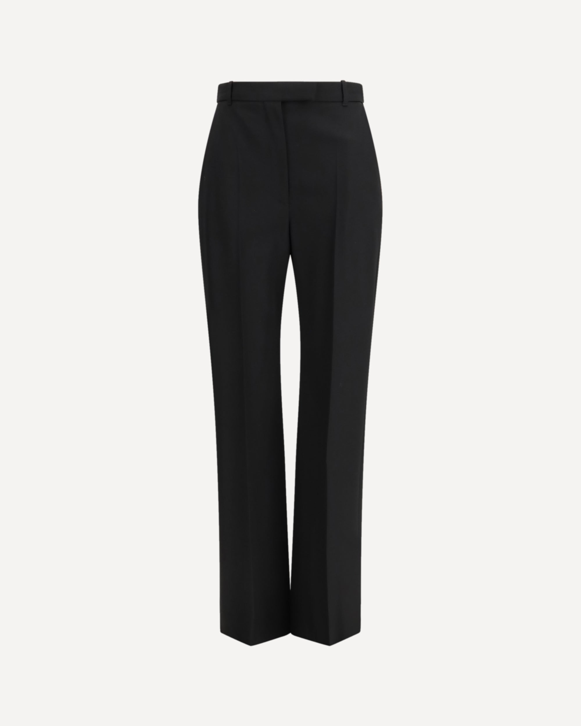 The tailored cotton Trousers by Alexander McQueen embody a refined, modern approach to classic tailoring. The straight-leg cut creates a clean, balanced silhouette, while the belt loops add everyday versatility. Side pockets and rear welt pockets contribute to a streamlined, functional design, finished with a concealed zip and hook fastening for a polished look. A timeless piece designed to anchor sophisticated outfits with understated confidence.