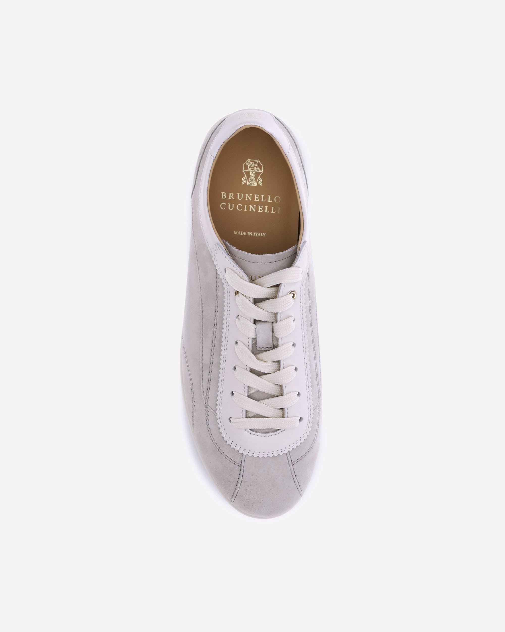 The Sneakers by Brunello Cucinelli crafted from high-quality suede, featuring a round toe and front lace-up closure for a perfect fit. The contrasting heel is embellished with the brand's logo, while the flat sole ensures comfort and practicality. The model is completed by the logoed insole, a distinctive sign of elegance and attention to detail. Ideal for a sophisticated casual look.