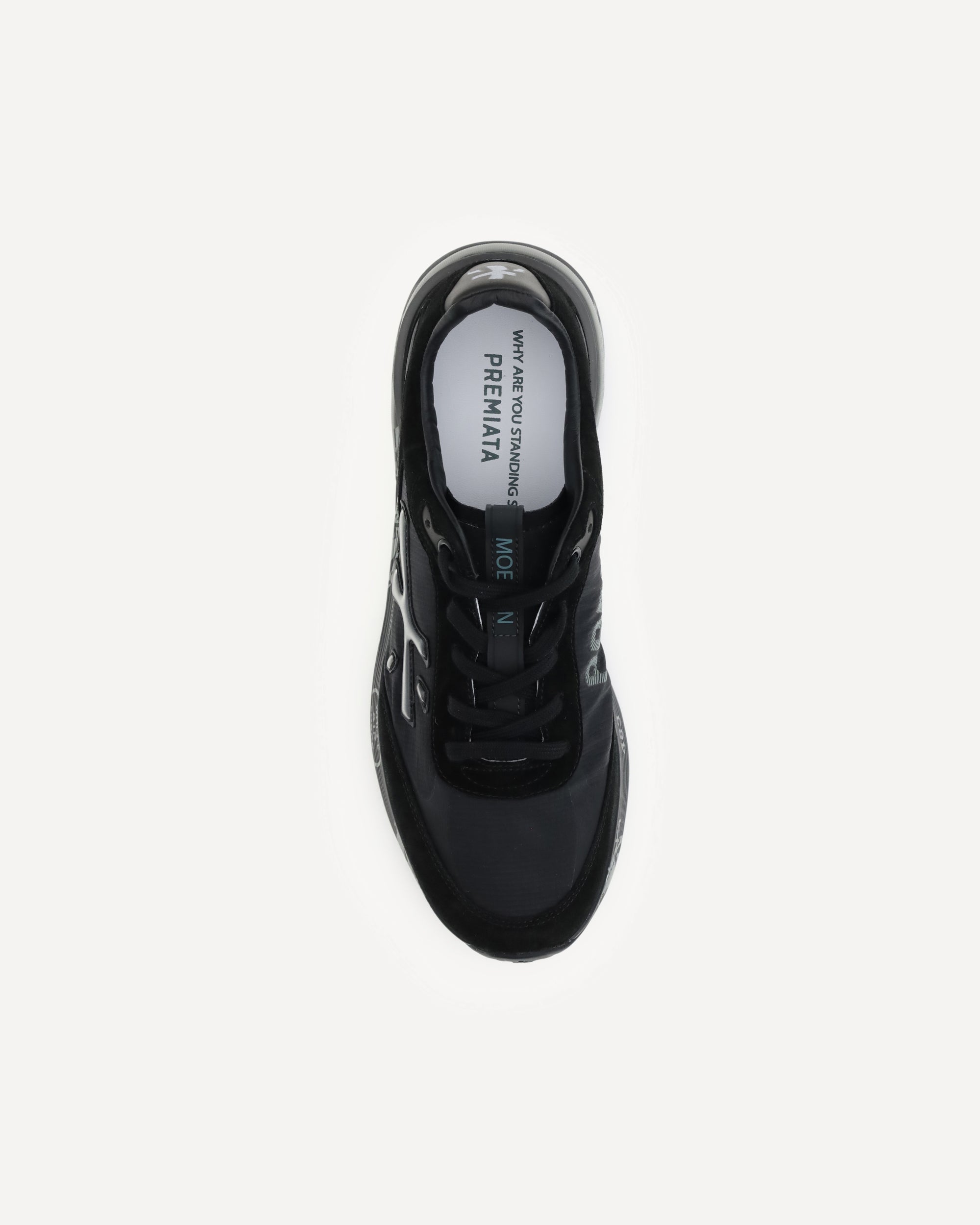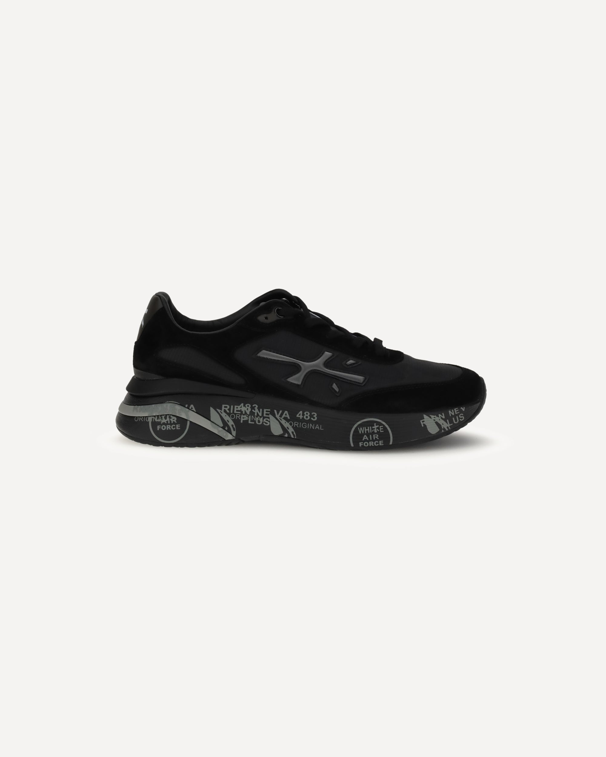 Suede Moerun Sneakers by Premiata feature a round toe that ensures a comfortable and refined look. The lace-up front closure ensures a secure and adjustable fit, while the paneled design creates a dynamic and modern effect. The textured outsole, reinforced at the toe box, provides added stability and all-day comfort. The decorative logo on the side panels adds a distinctive touch, while the logoed insole emphasizes the brand's high quality and prestige. A perfect blend of functionality and contemporary style.