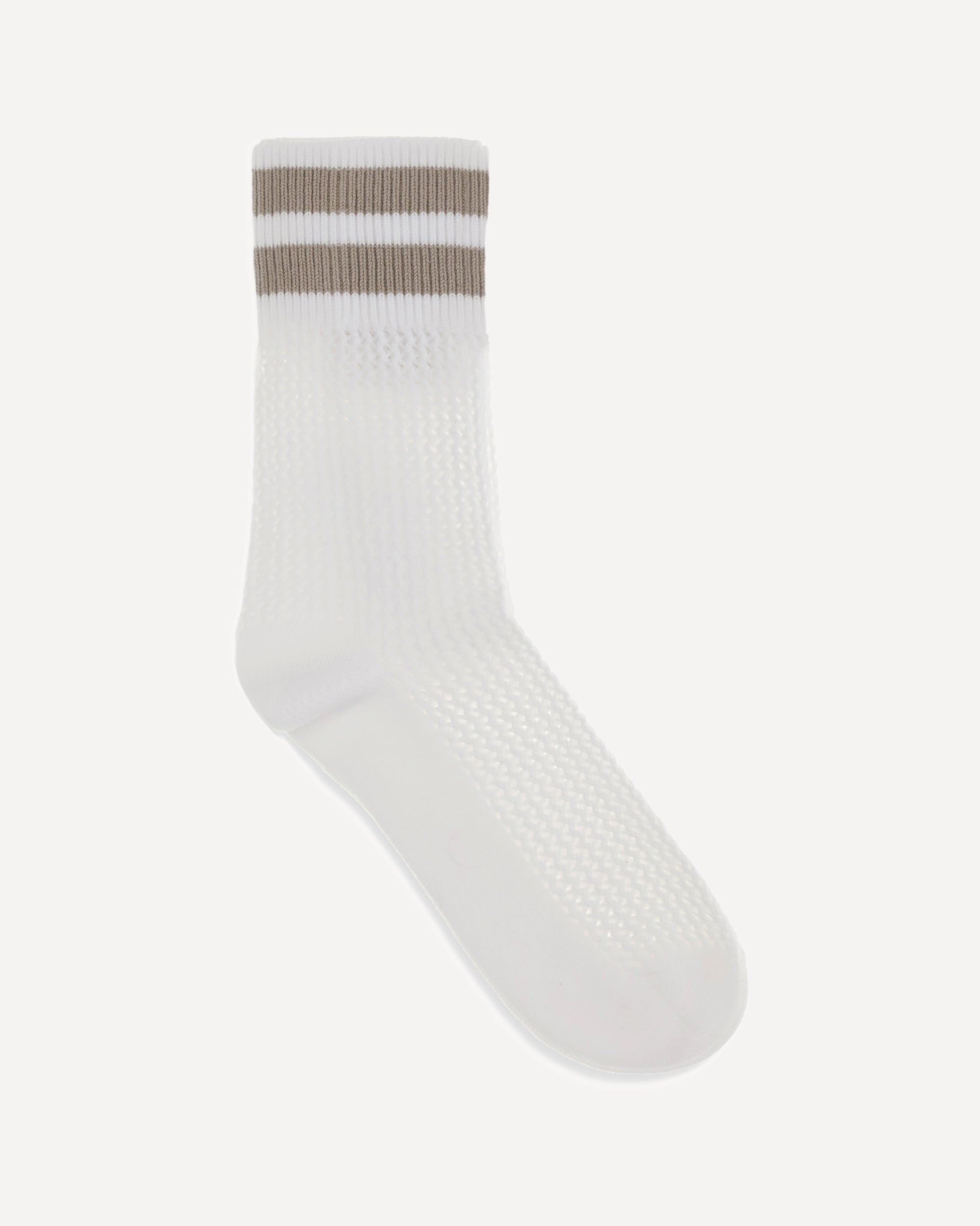 Waffle stitch cotton knit Socks with stripes by Brunello Cucinelli feature a waffle stitch construction for comfort and breathability. With a calf height, they are made of 100 percent cotton, a soft and natural material that offers a comfortable fit. The stripes add a touch of style, perfect for completing an elegant and refined look with an understated yet distinctive detail.