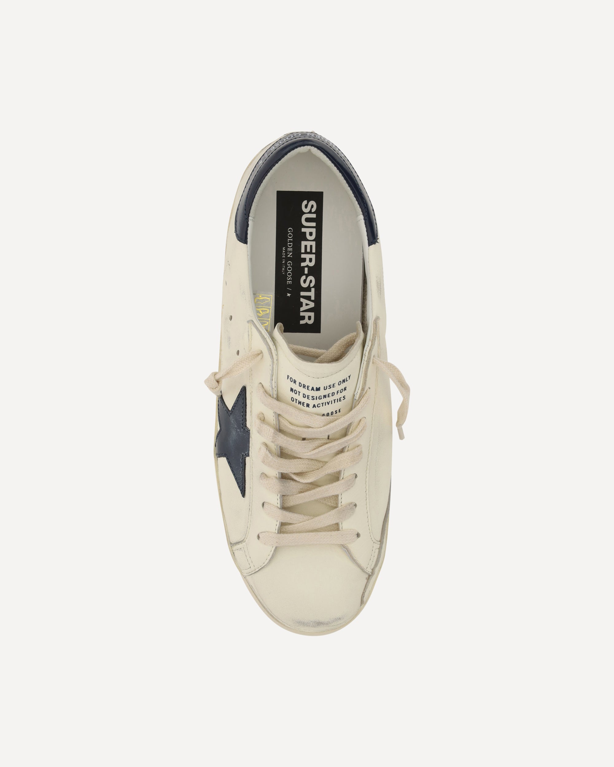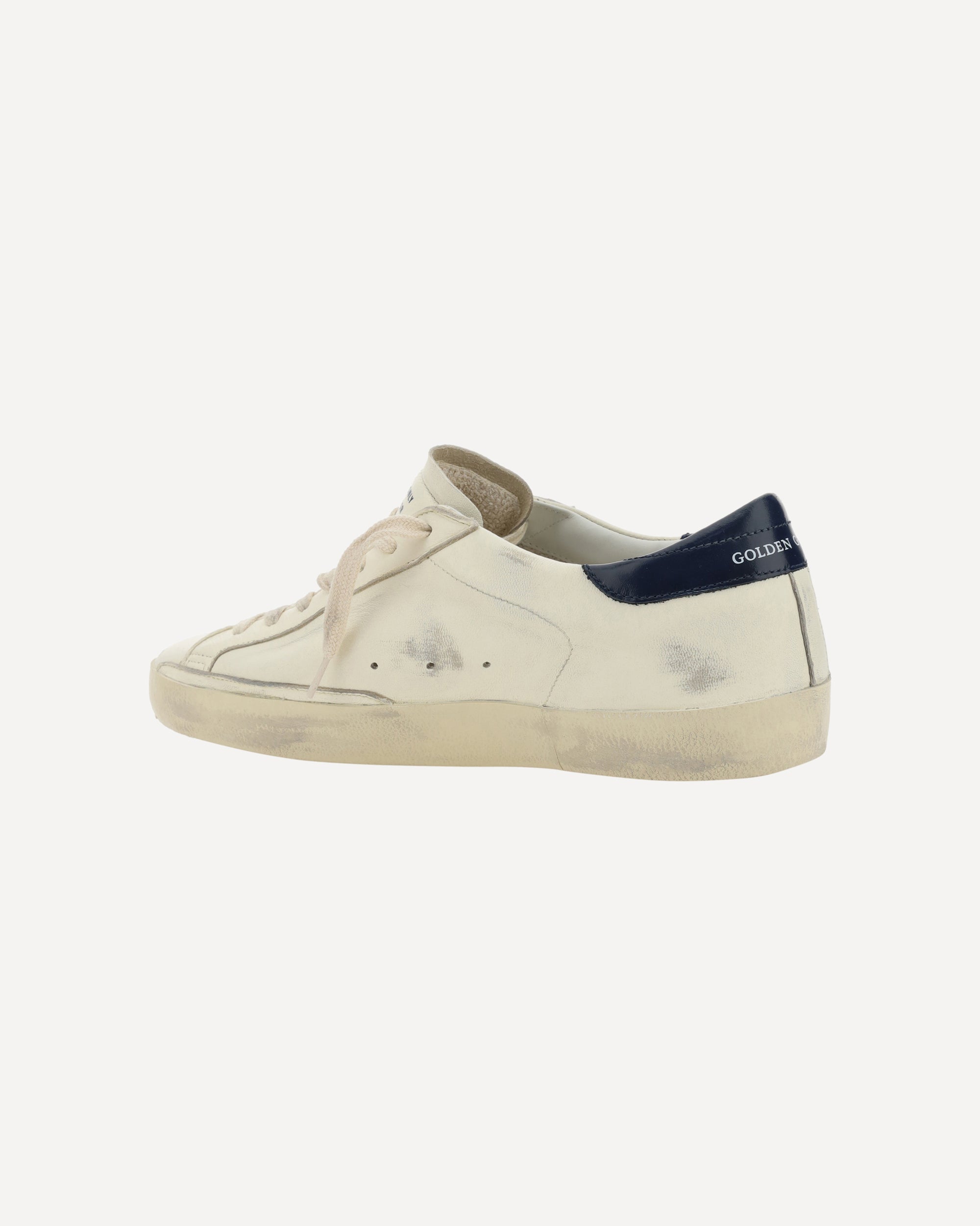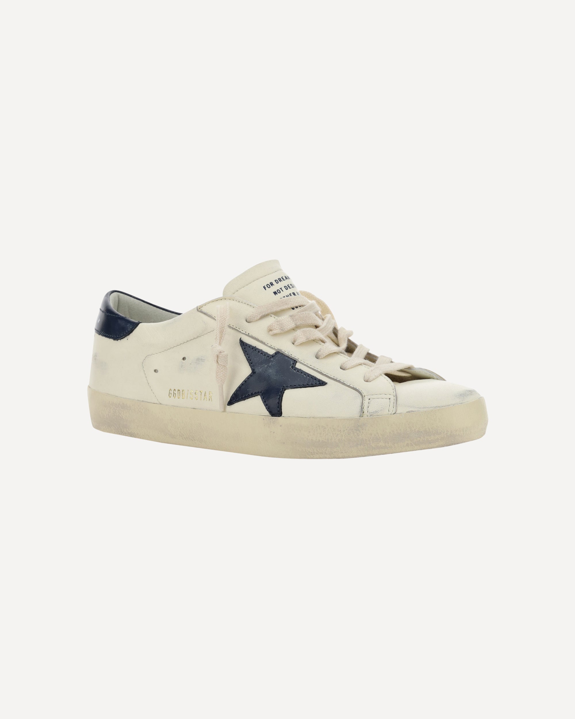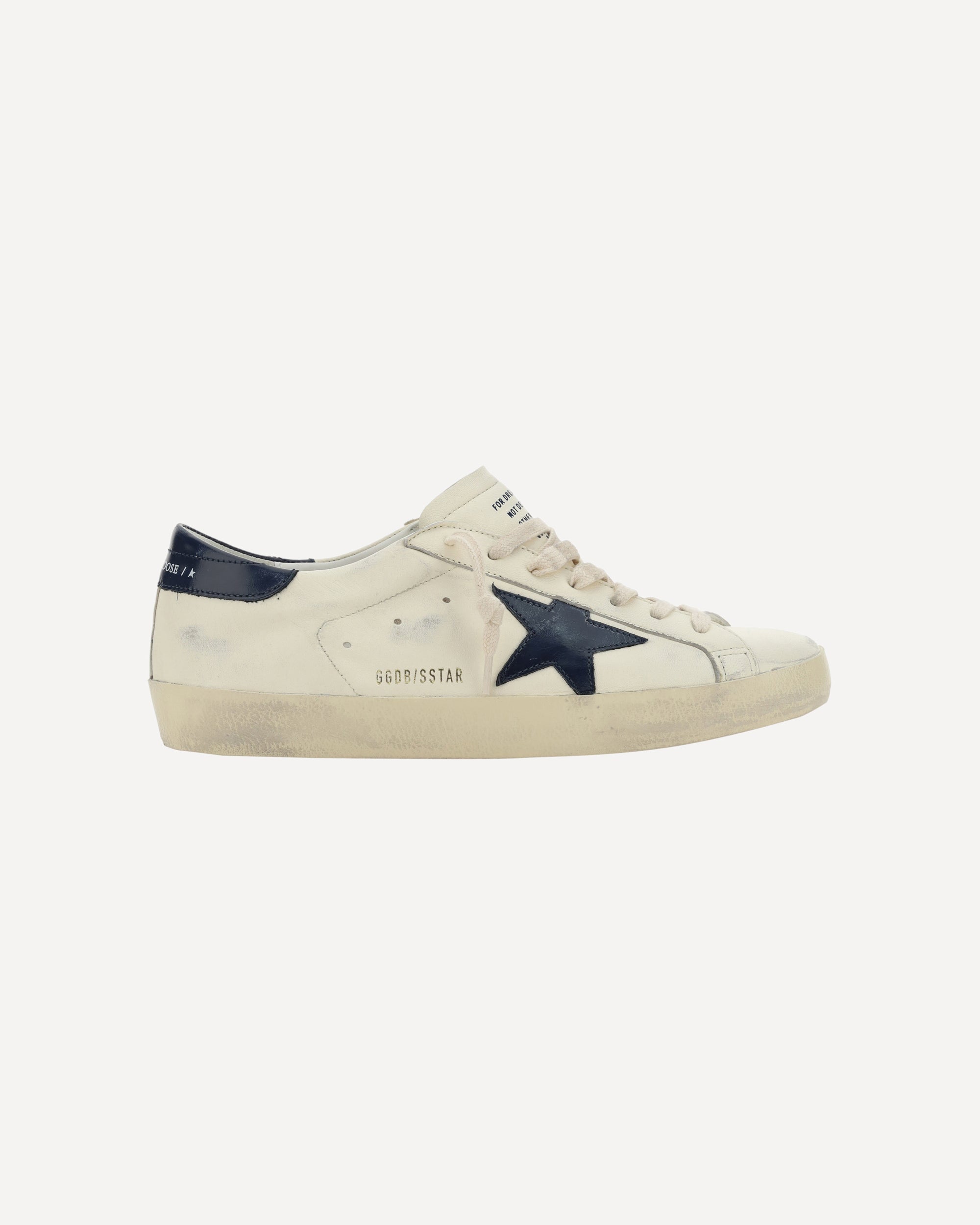Lambskin Super Star Sneakers by Golden Goose, lace-up front closure, iconic star on contrasting side panel, round toe, flat sole, brand logo press-stud on outer side panel, brand logo press-stud on front tab.
