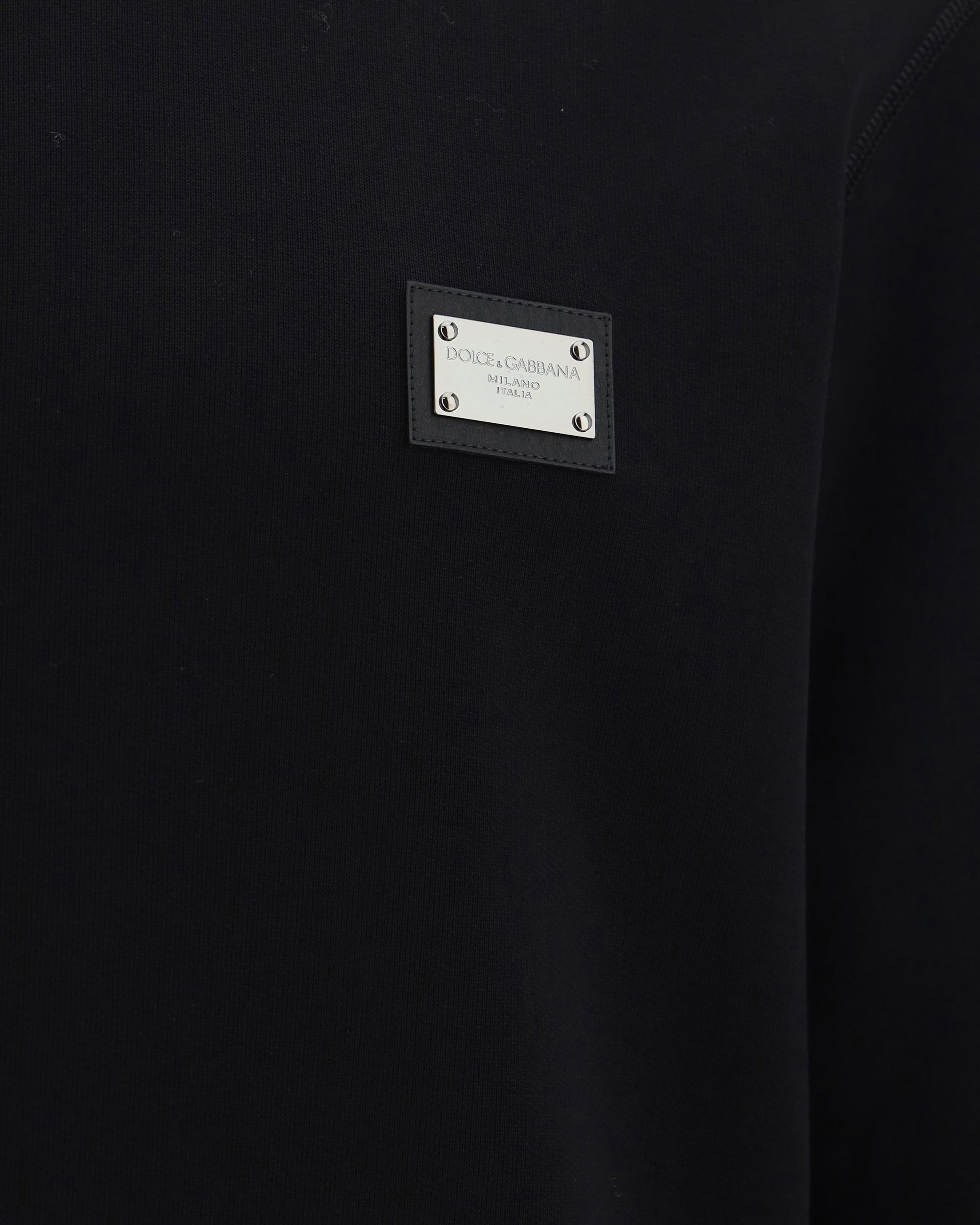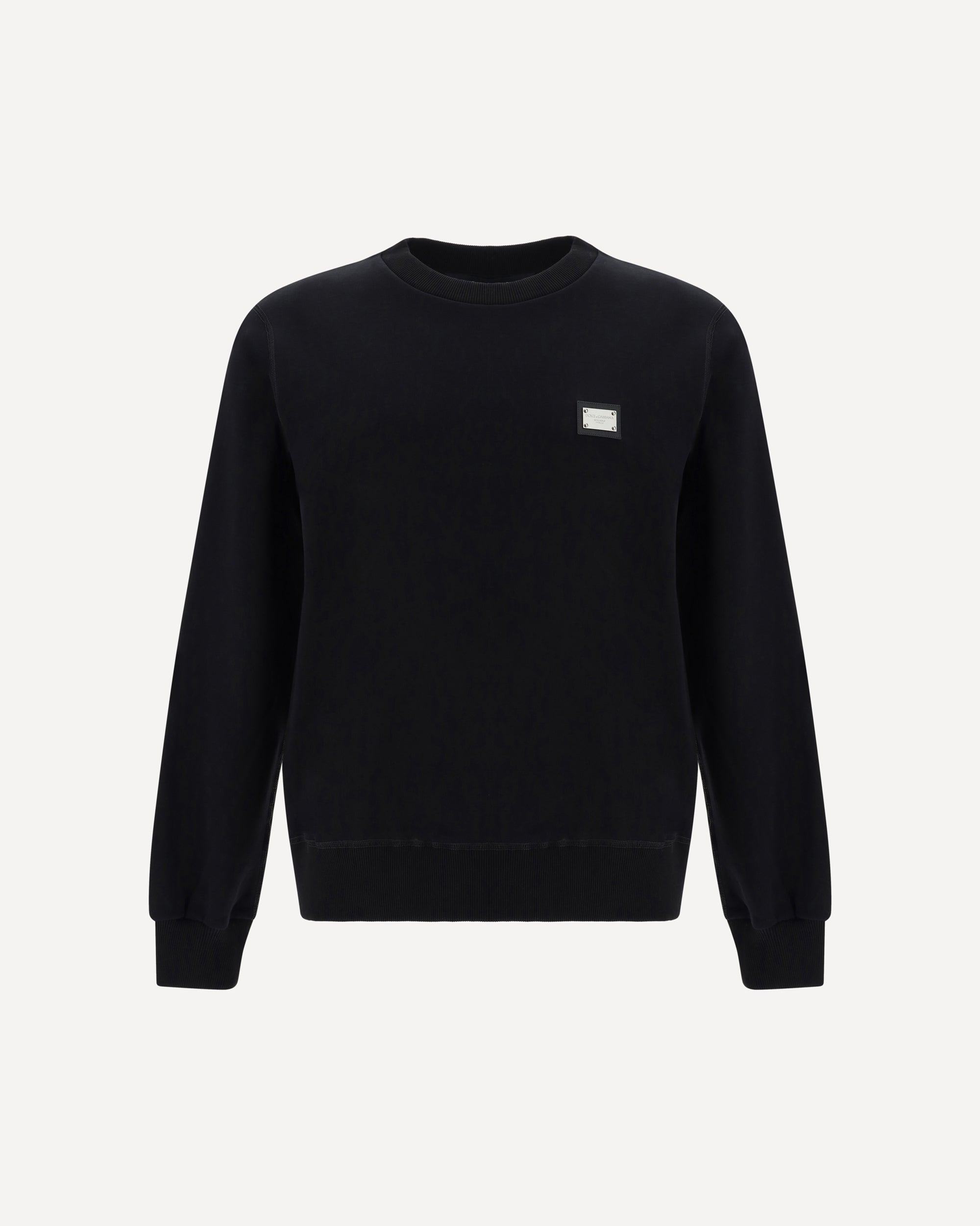 Cotton Sweatshirt by Dolce&Gabbana, ribbed crew neck, ribbed cuffs, ribbed hem, metal hardware with iconic brand D&G monogram engraved and applied at back, monochrome design, regular fit.
