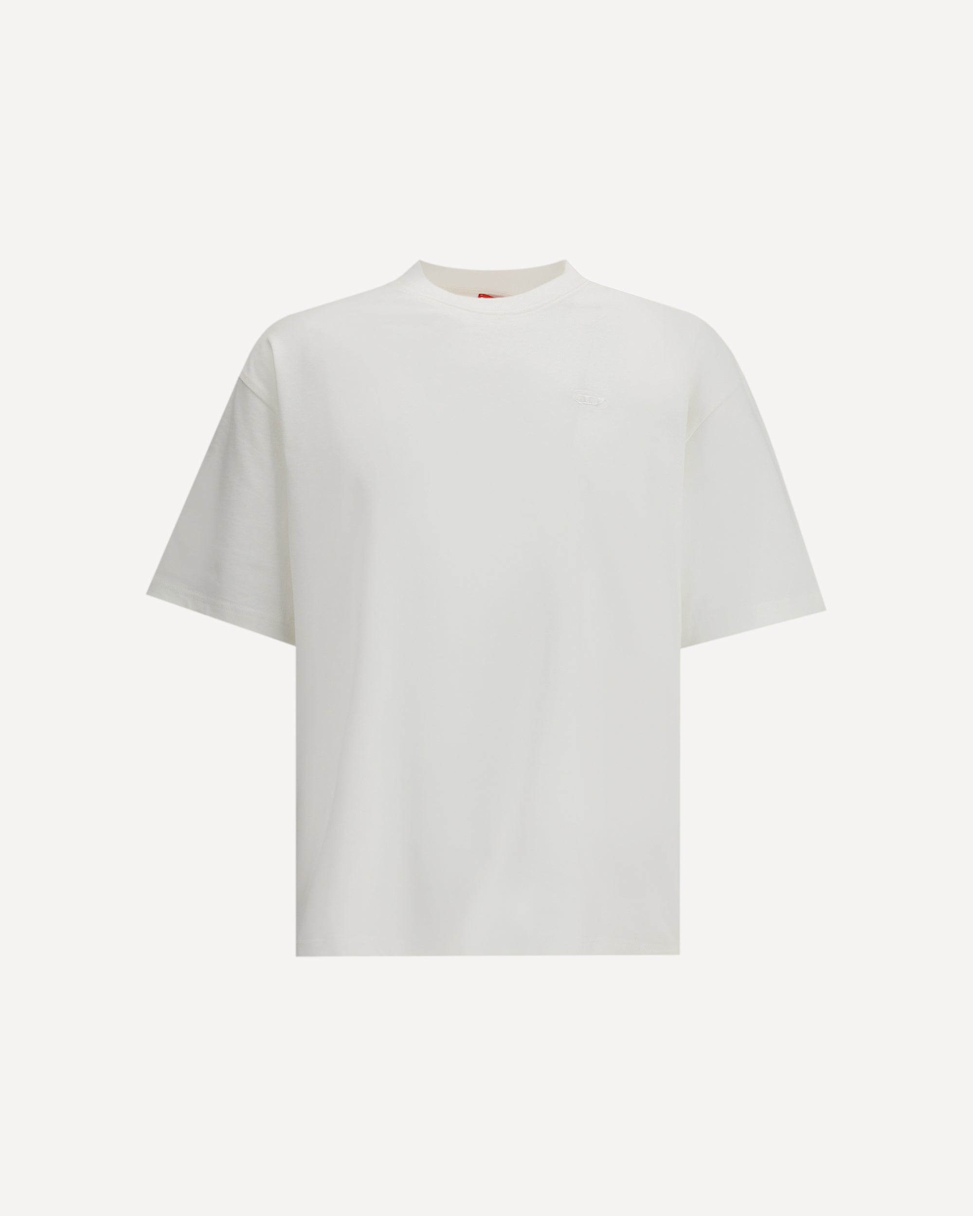The T-Boggy-Megoval-D T-shirt by Diesel is crafted from washed organic cotton jersey, featuring a soft, relaxed fit for everyday comfort. Its minimalist design is elevated by a contrasting macro Oval D embroidery on the back and a small tonal version on the chest, creating a refined and contemporary aesthetic.