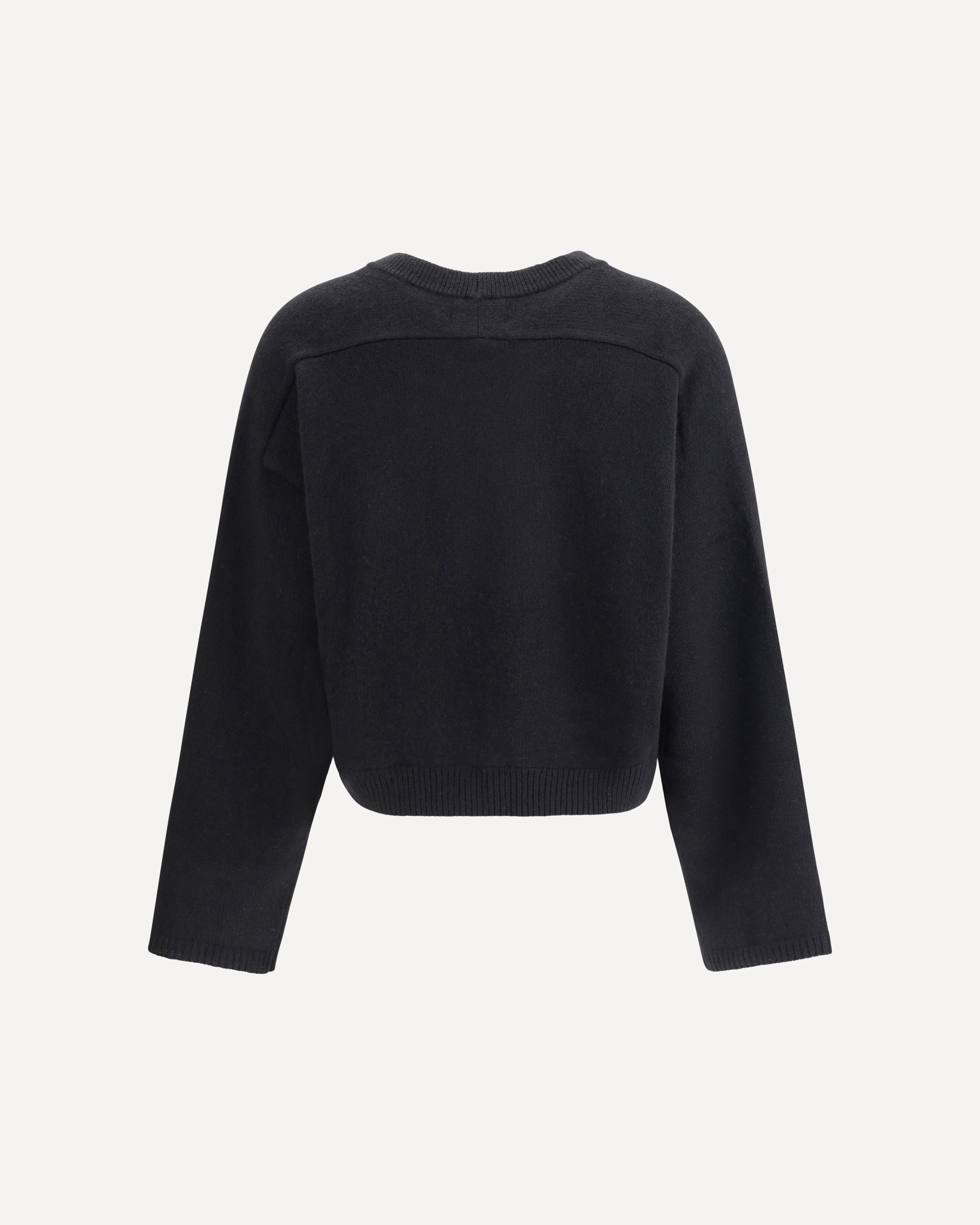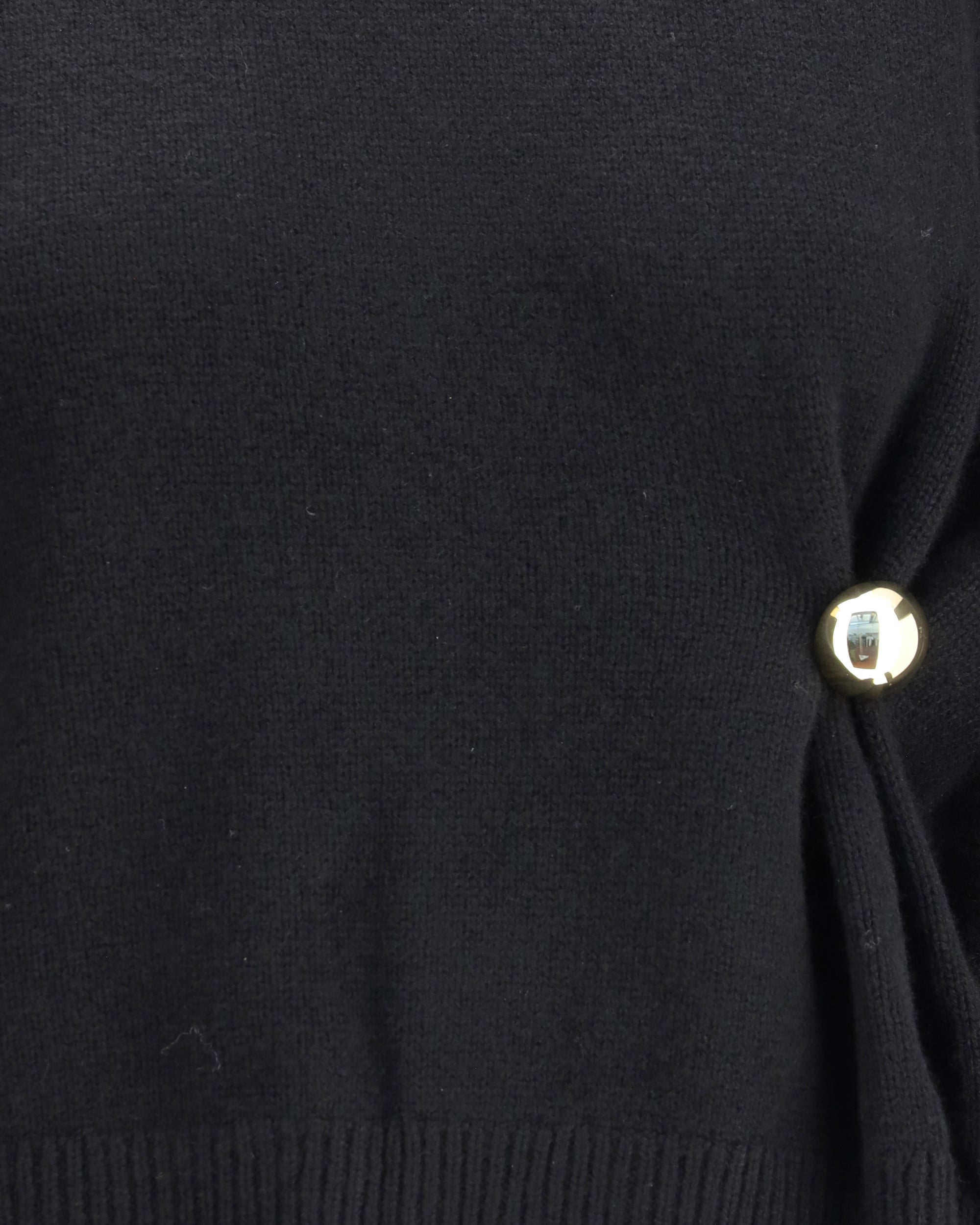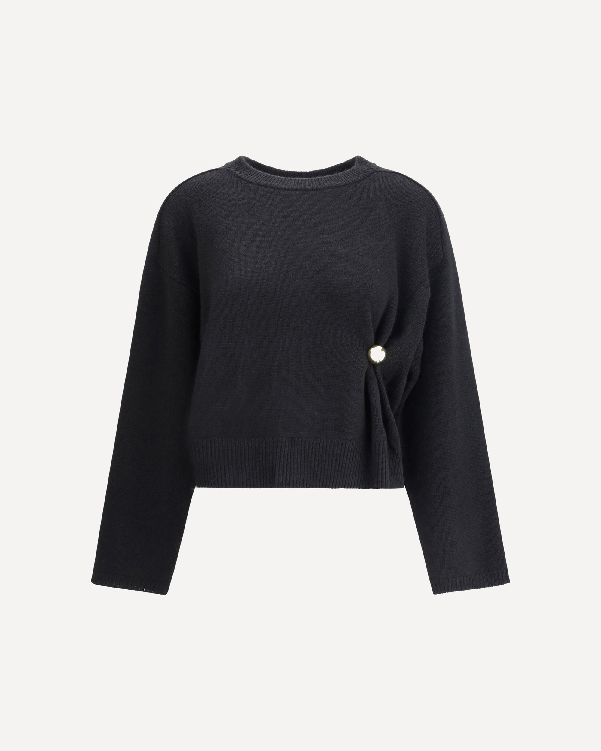 LouLou De Saison's draped Sweater features an elegant crew neck and long sleeves, featuring a fine gold detail on the side that creates a draped effect, adding movement and sophistication to the garment.