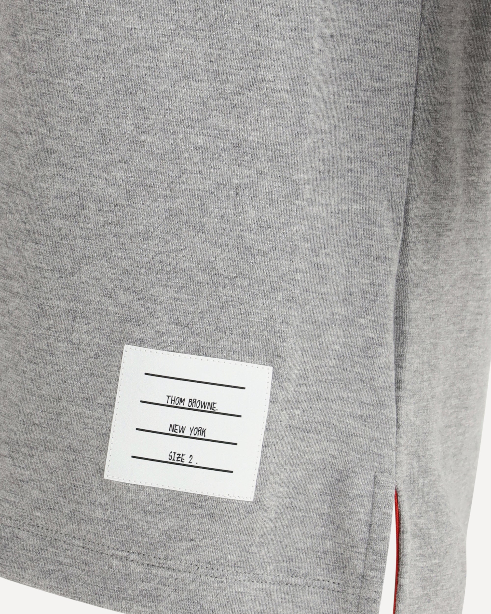 The Thom Browne Cotton T-Shirt is an essential piece with a clean and distinctive design. Crafted from soft cotton, it features a ribbed crew neck and the iconic horizontal stripes on the left sleeve. The monogram patch on the front adds a touch of recognition.