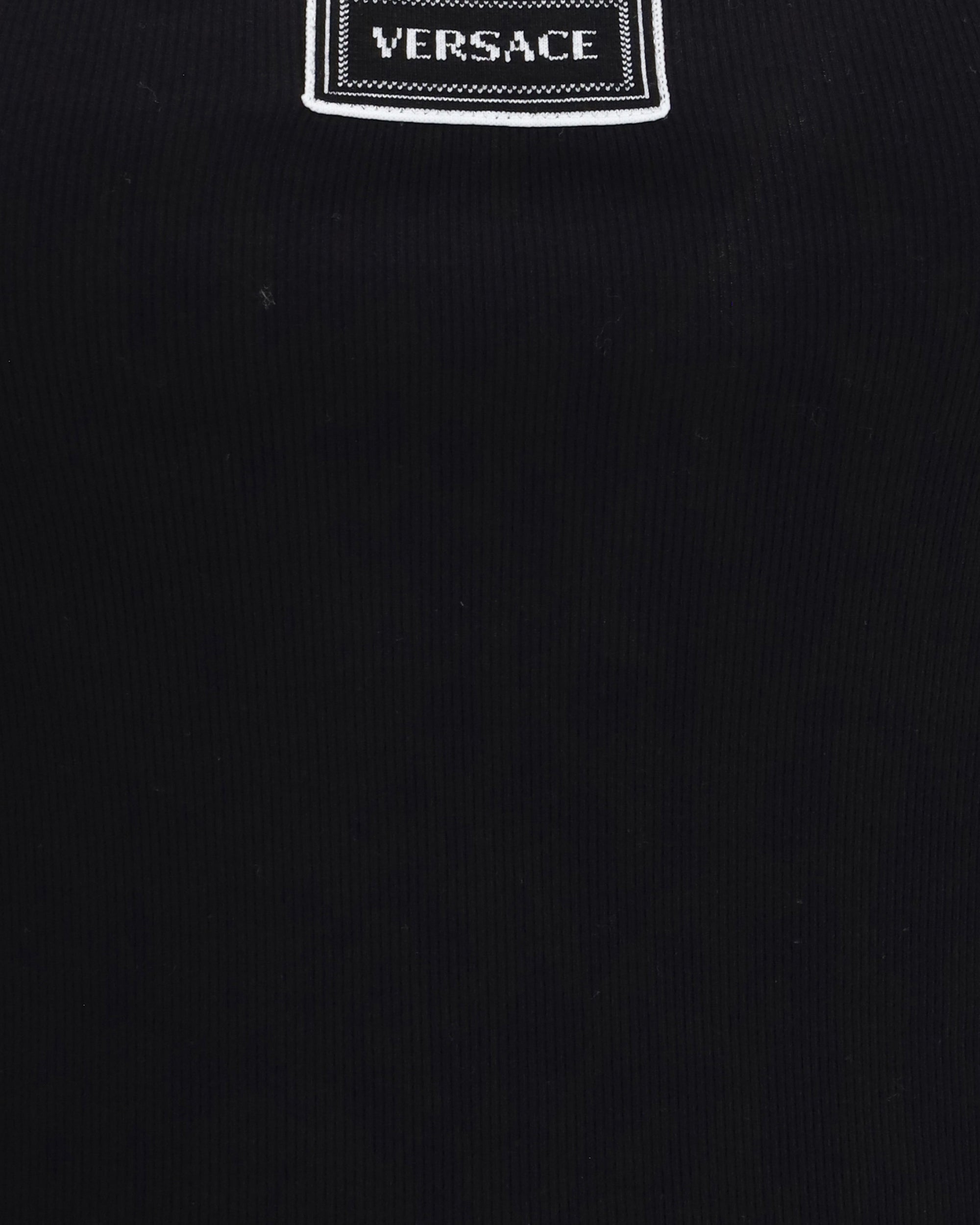 The Tank Top by Versace is crafted from ribbed stretch cotton, offering a soft, flexible fit that contours to the body. The sleeveless design is completed with a clean scoop neckline, while the jacquard ’90s Vintage Logo patch at the front adds a signature Versace accent. A versatile and streamlined piece, perfect for everyday styling with a distinctive heritage touch.