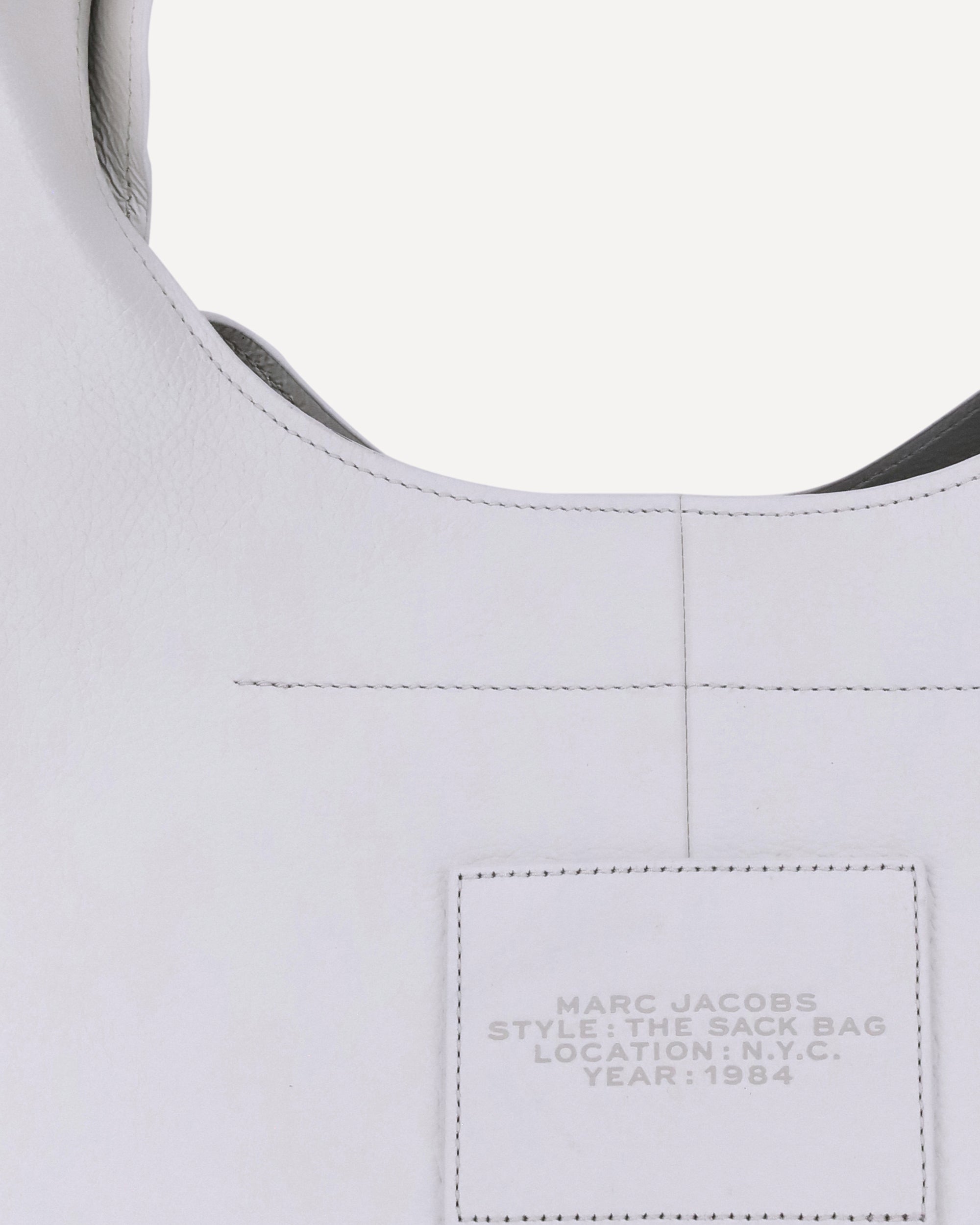 Leather Sack Shoulder Bag by Marc Jacobs features a single top handle and a soft, streamlined silhouette. The brand's iconic monogram is press-stamped on the front for a discreet yet recognizable detail. The interior features a single compartment, ideal for daily organization, while the internal magnetic closure ensures practicality and functionality. An accessory with an urban and contemporary style.