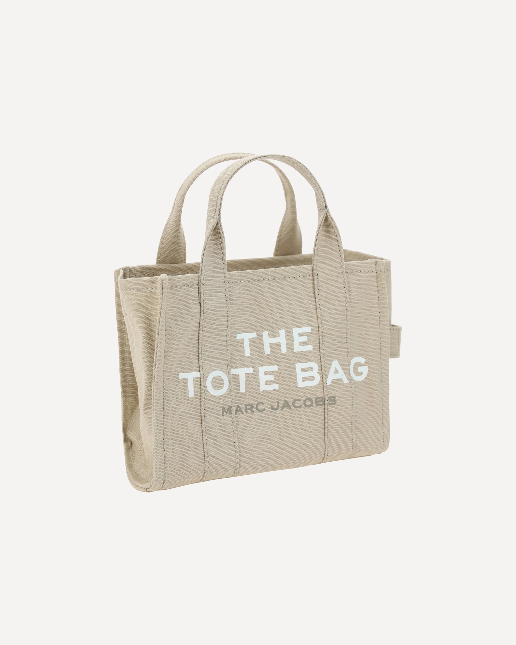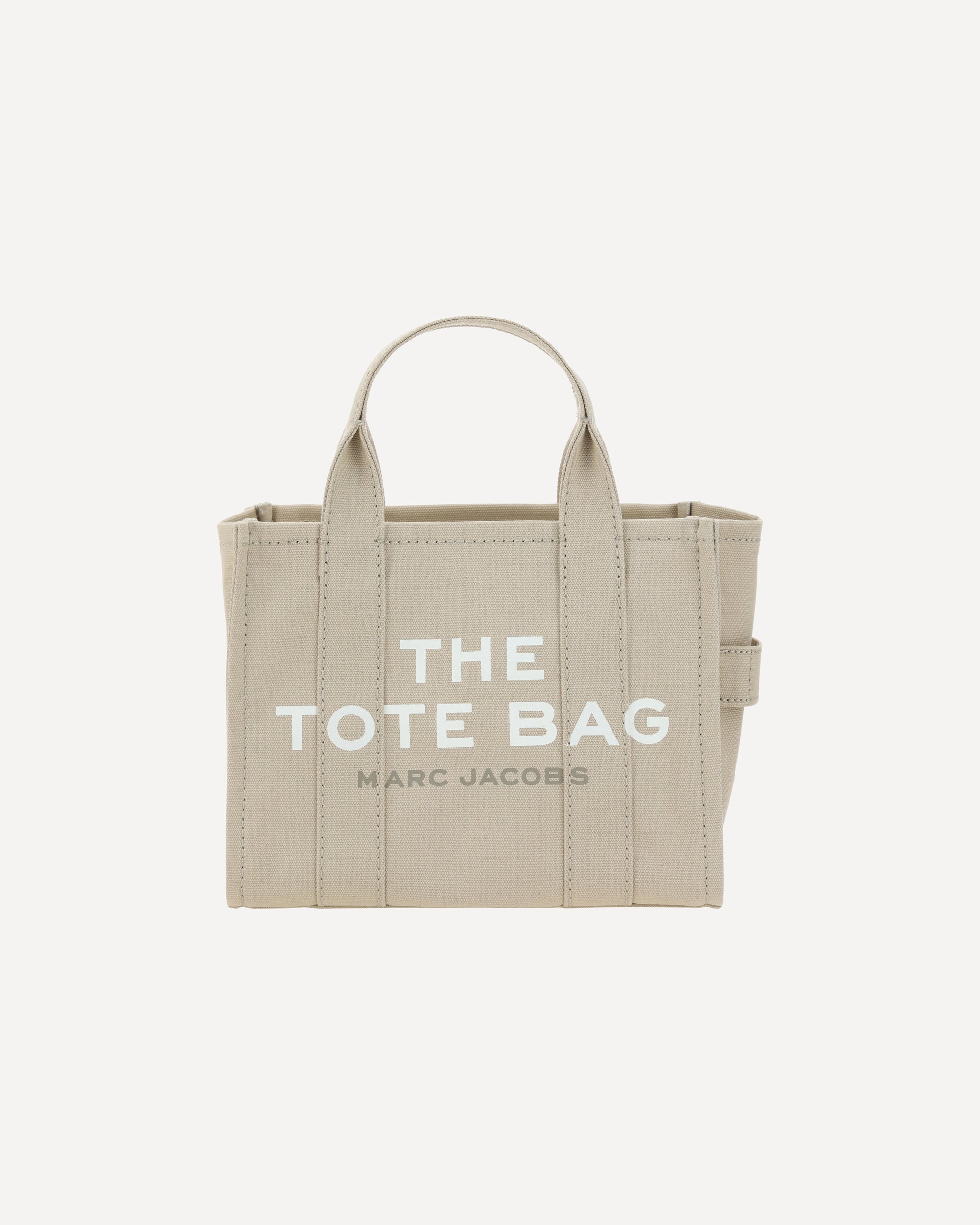 Cotton The small Tote Handbag by Marc Jacobs, two rigid tubular top handles, top zipper closure, single interior pocket, adjustable and removable flat shoulder strap, contrasting jacquard print iconic brand monogram on front, contrasting patch with iconic brand monogram applied on back.
