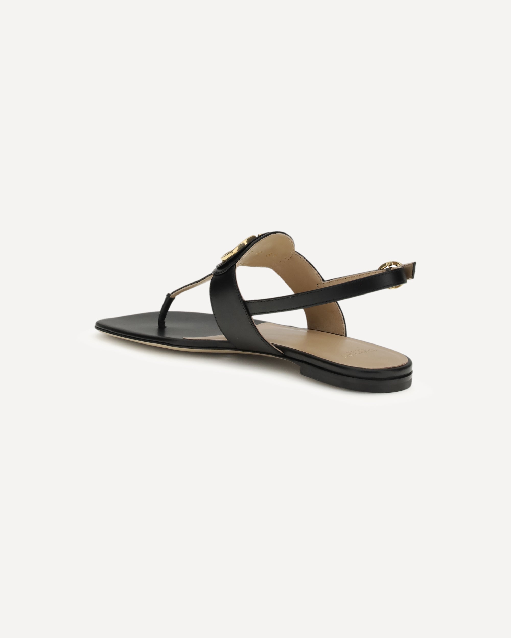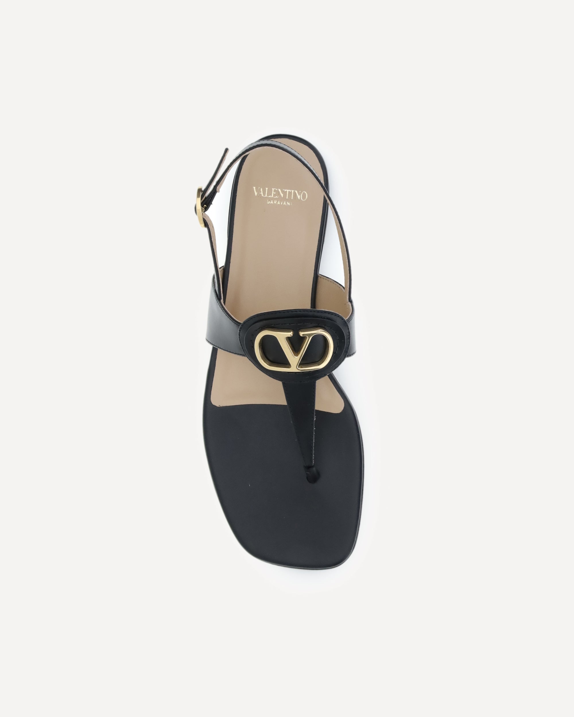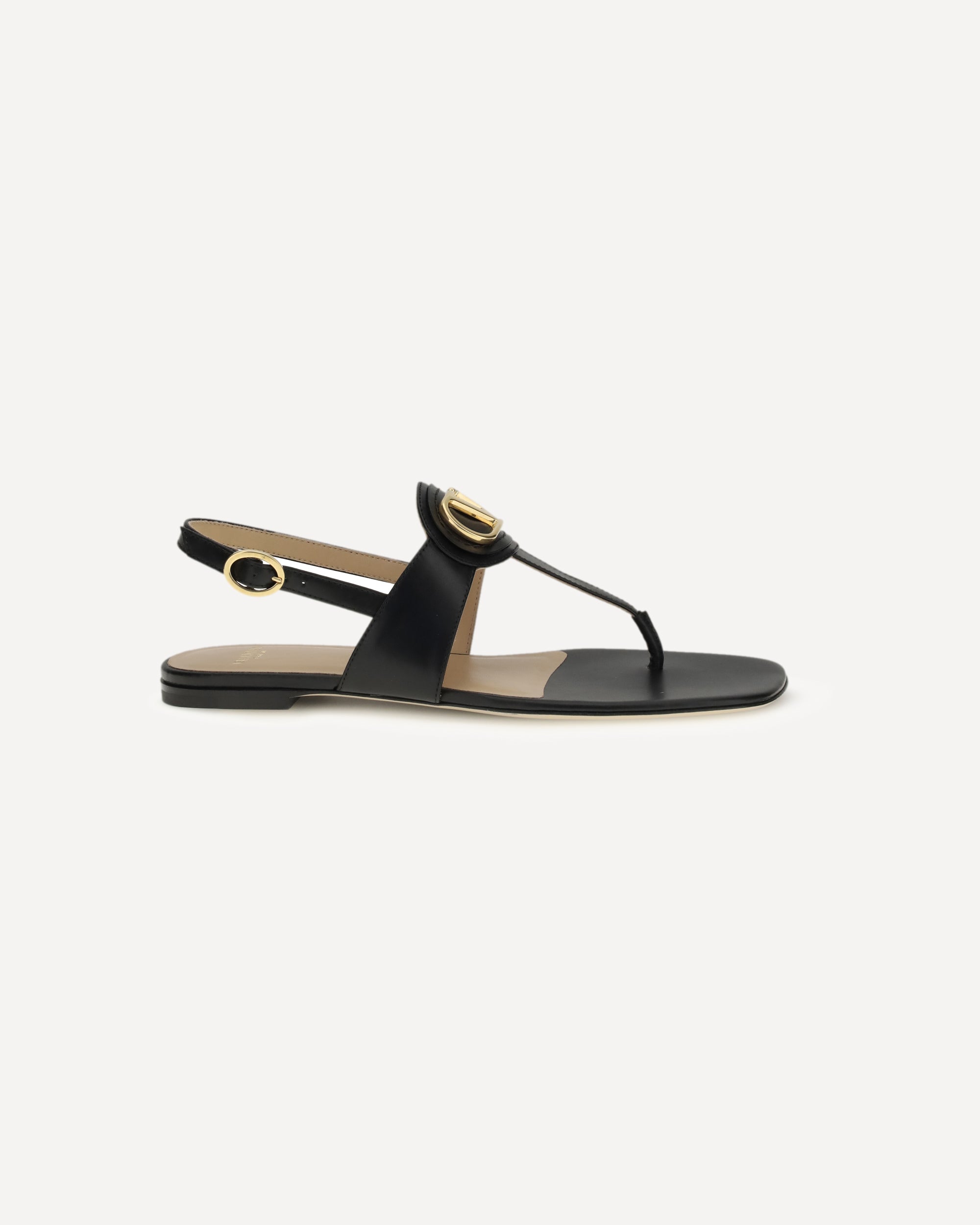 The leather thong Sandals by Valentino Garavani embody refined minimalism, enhanced by the gold-tone metal VLogo Signature detail on the front. The adjustable back strap with buckle ensures a secure fit, while the flat leather sole adds a polished and timeless finish to the design.