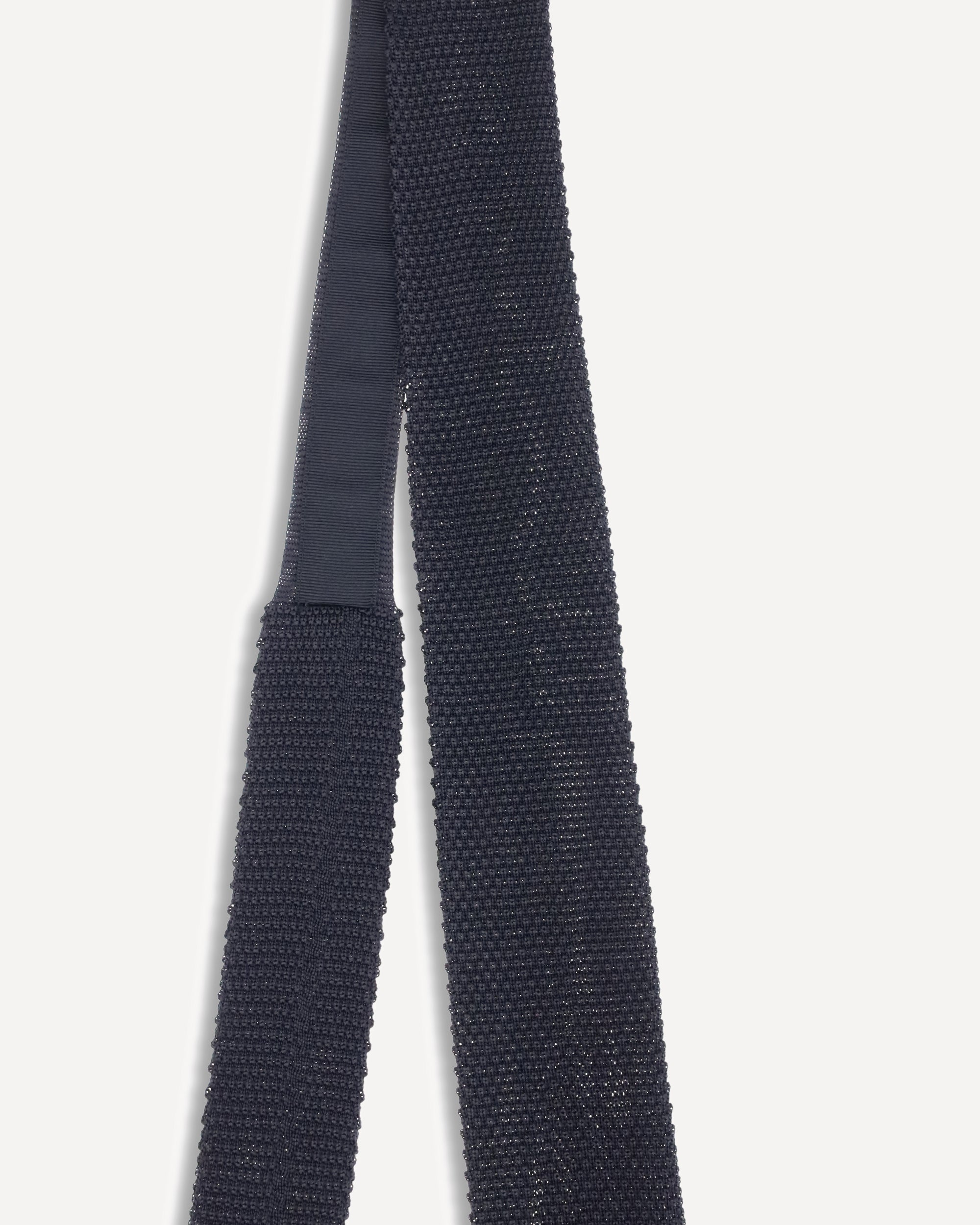 The Brunello Cucinelli knitted Tie, crafted from fine silk, combines sophistication and originality. The knit gives the piece a unique texture, while the quality of the silk ensures shine and comfort. An elegant and distinctive accessory, perfect for adding a touch of class to any formal look.