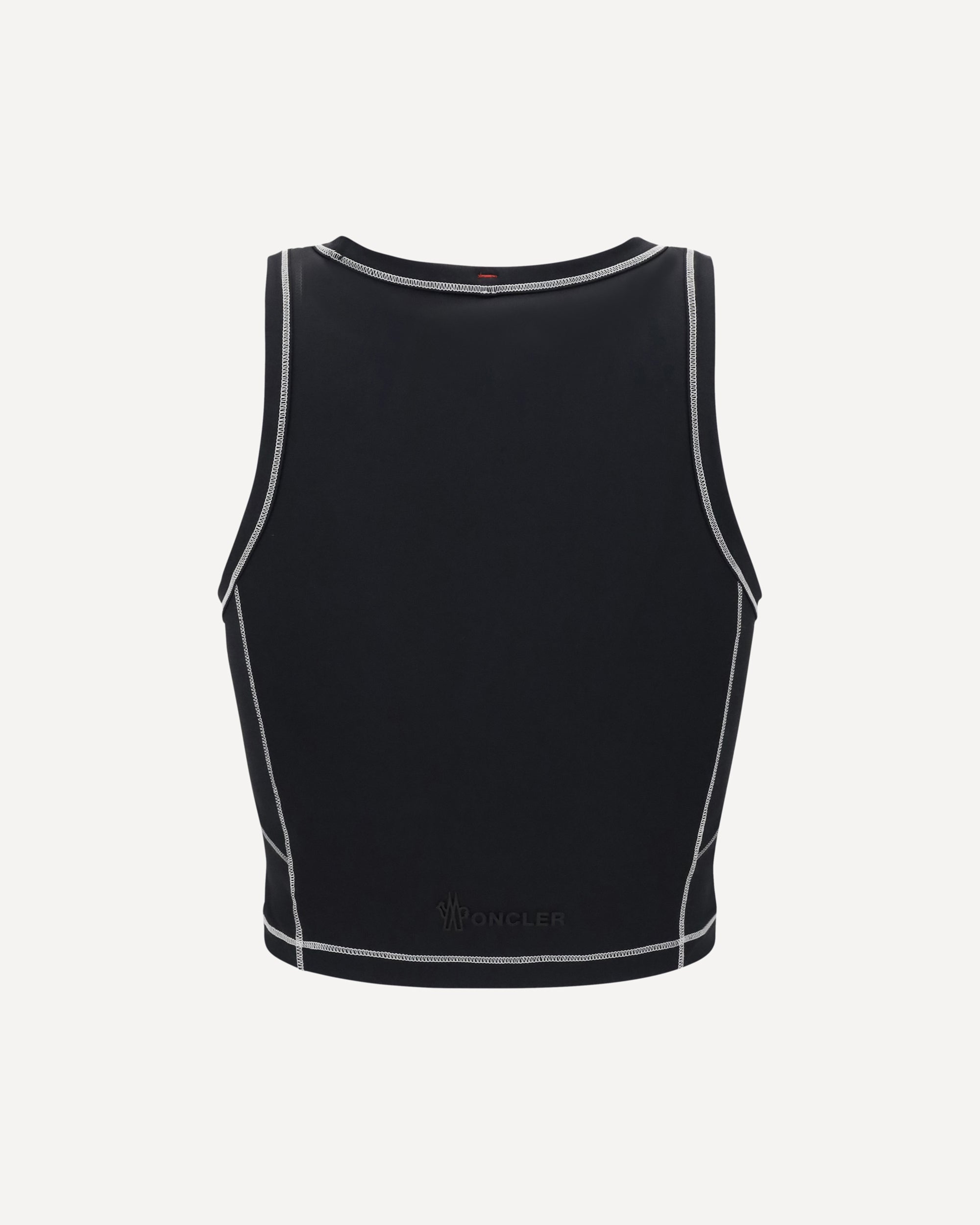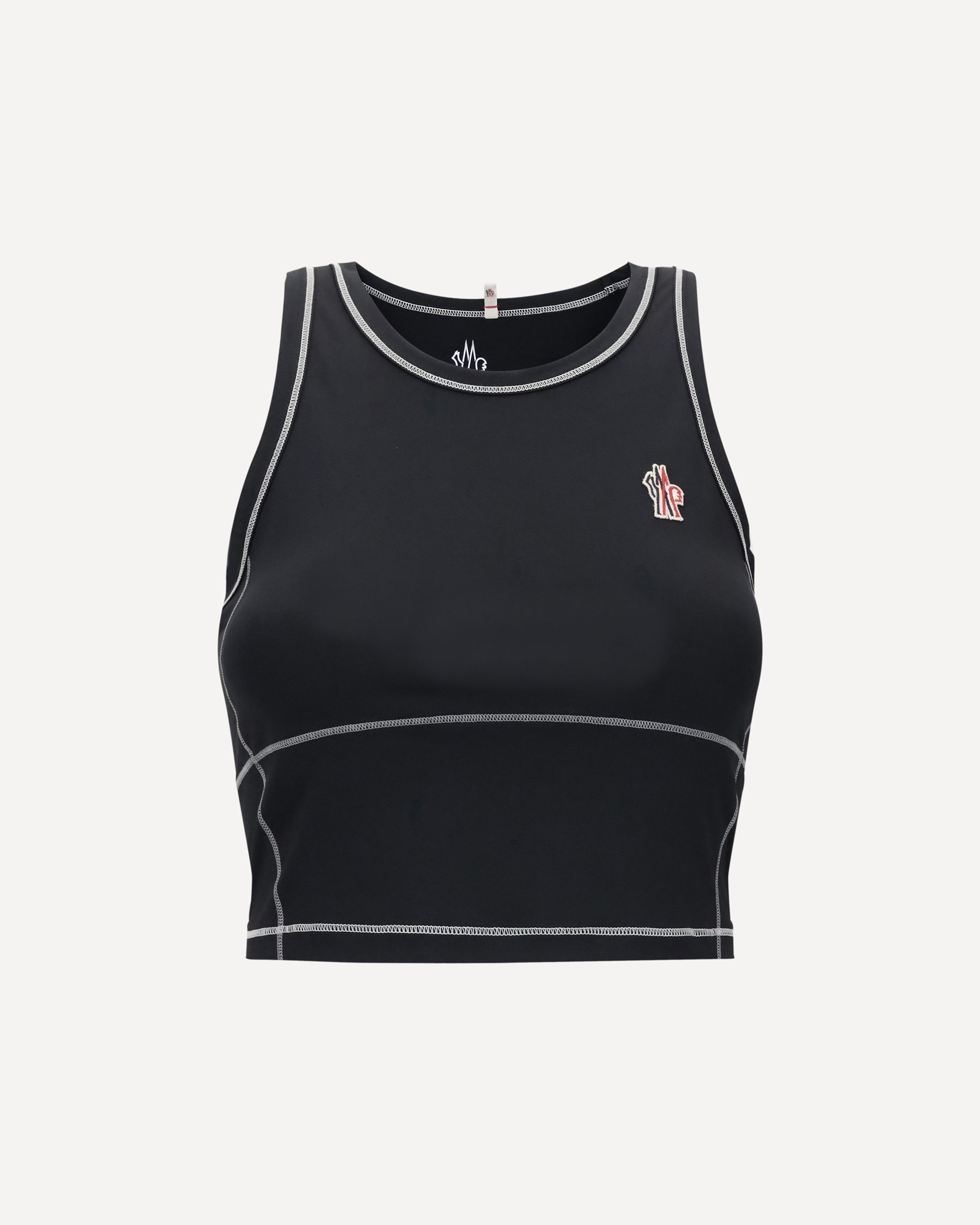 The Moncler Grenoble Cropped Top, designed as sportswear, is made of fabric with a stretchy, comfortable finish. Featuring the iconic logo stitched on the front, it combines style and functionality for a dynamic and versatile look.