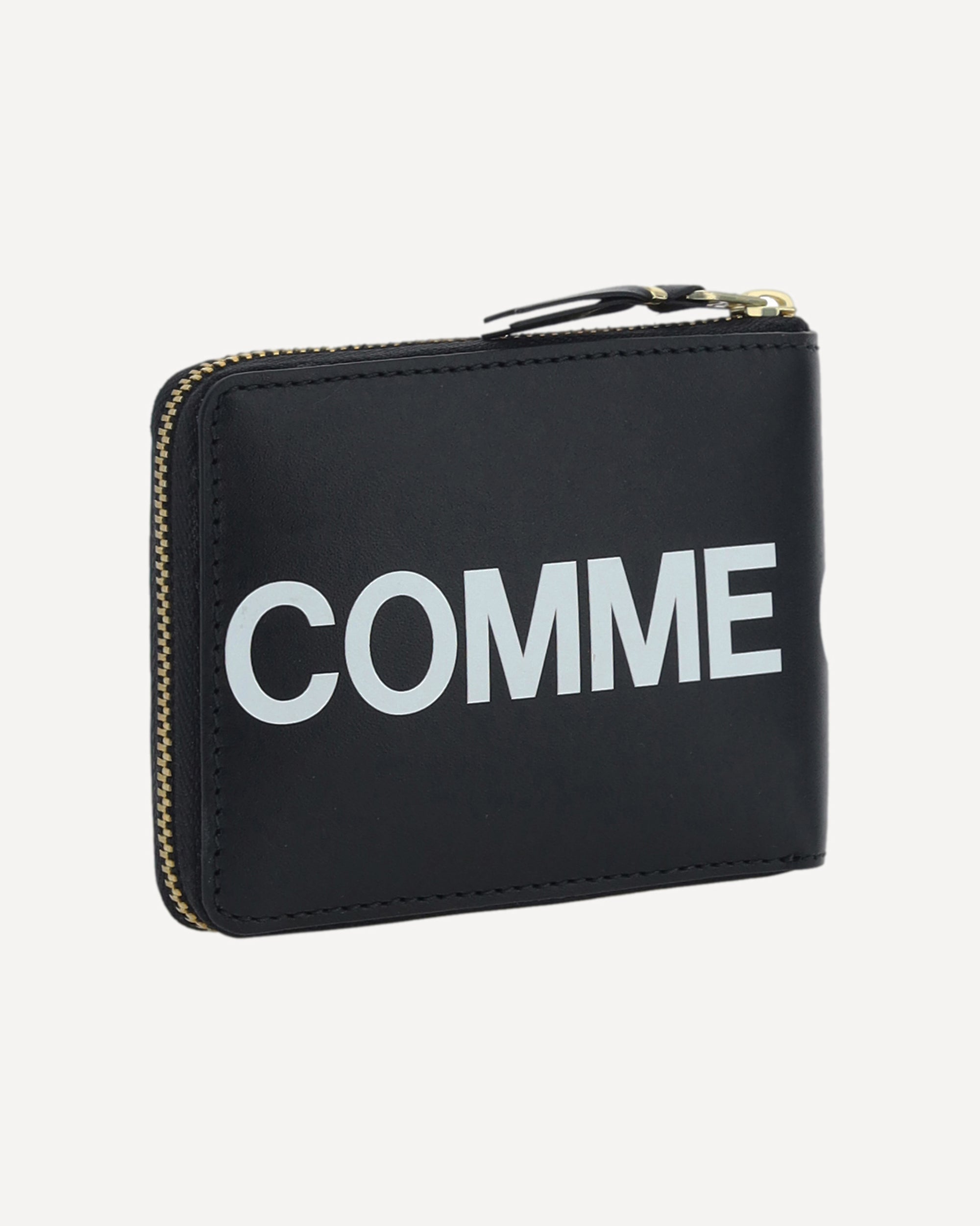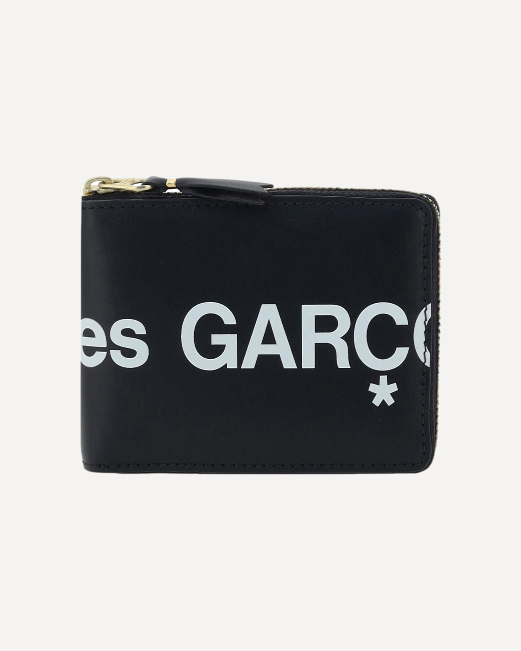 The Comme des Garçons Wallet leather Wallet features a zip-around closure for added security and convenience. The contrasting logo is printed on the front and back, adding a graphic and recognizable touch. Inside, a bill compartment, card slots and snap-button coin pocket provide optimal organization. The gold-tone logo engraved on the inside left side completes the design with an elegant and refined detail.