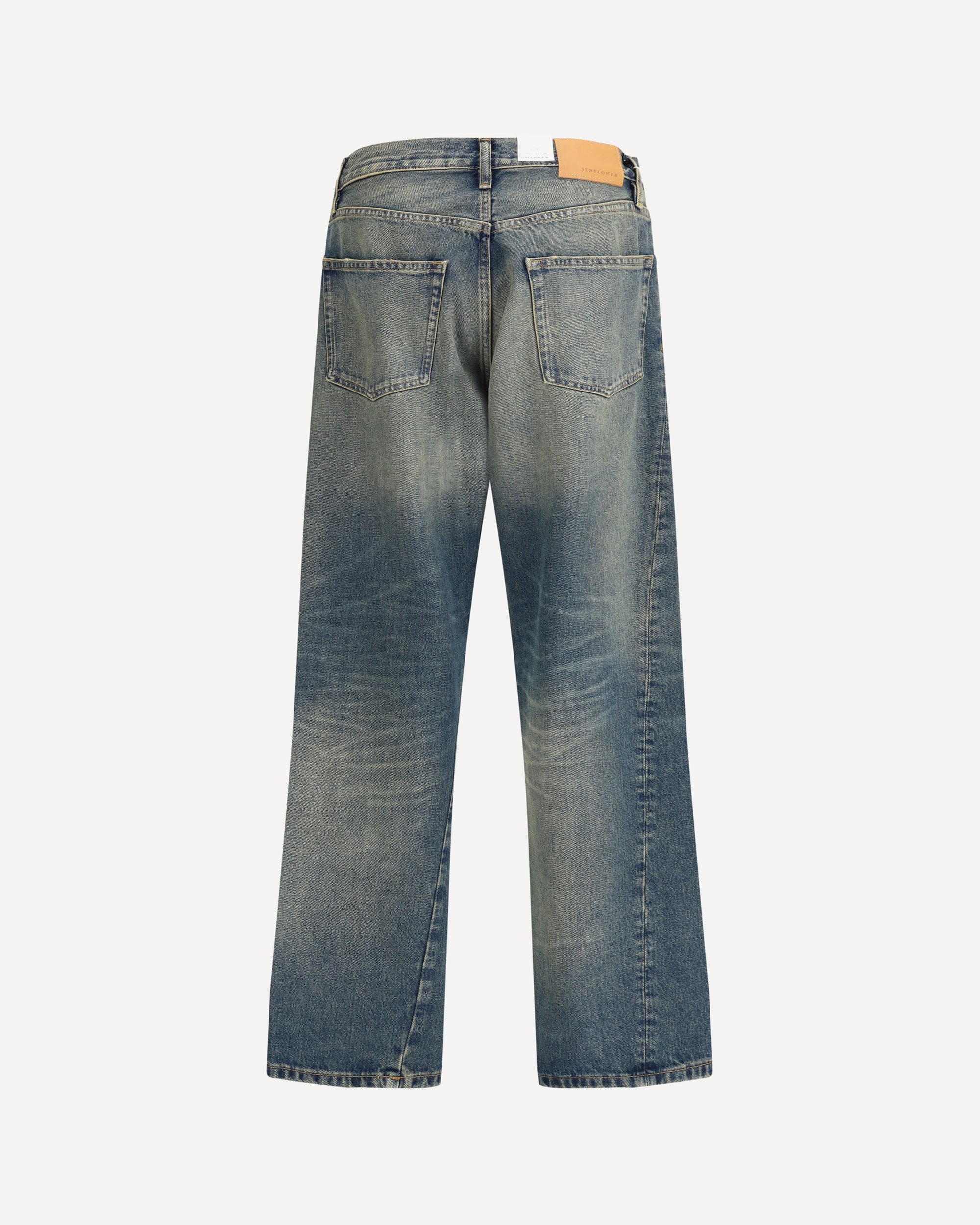 Wide Twist Jeans by Sunflower offer a modern interpretation of denim with a wide, bold cut. Made of twisted wide denim, they feature a loose fit and twisted side seams that add movement and character. The dirty dye on the wash gives an authentic vintage effect, while the recycled metal trim reflects the brand's commitment to sustainability. A garment with a strong aesthetic impact, perfect for a contemporary, casual style.