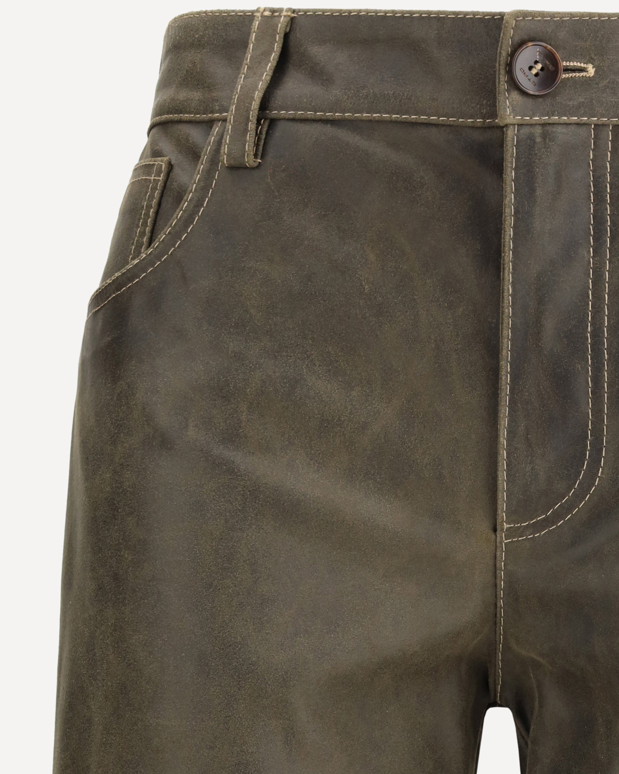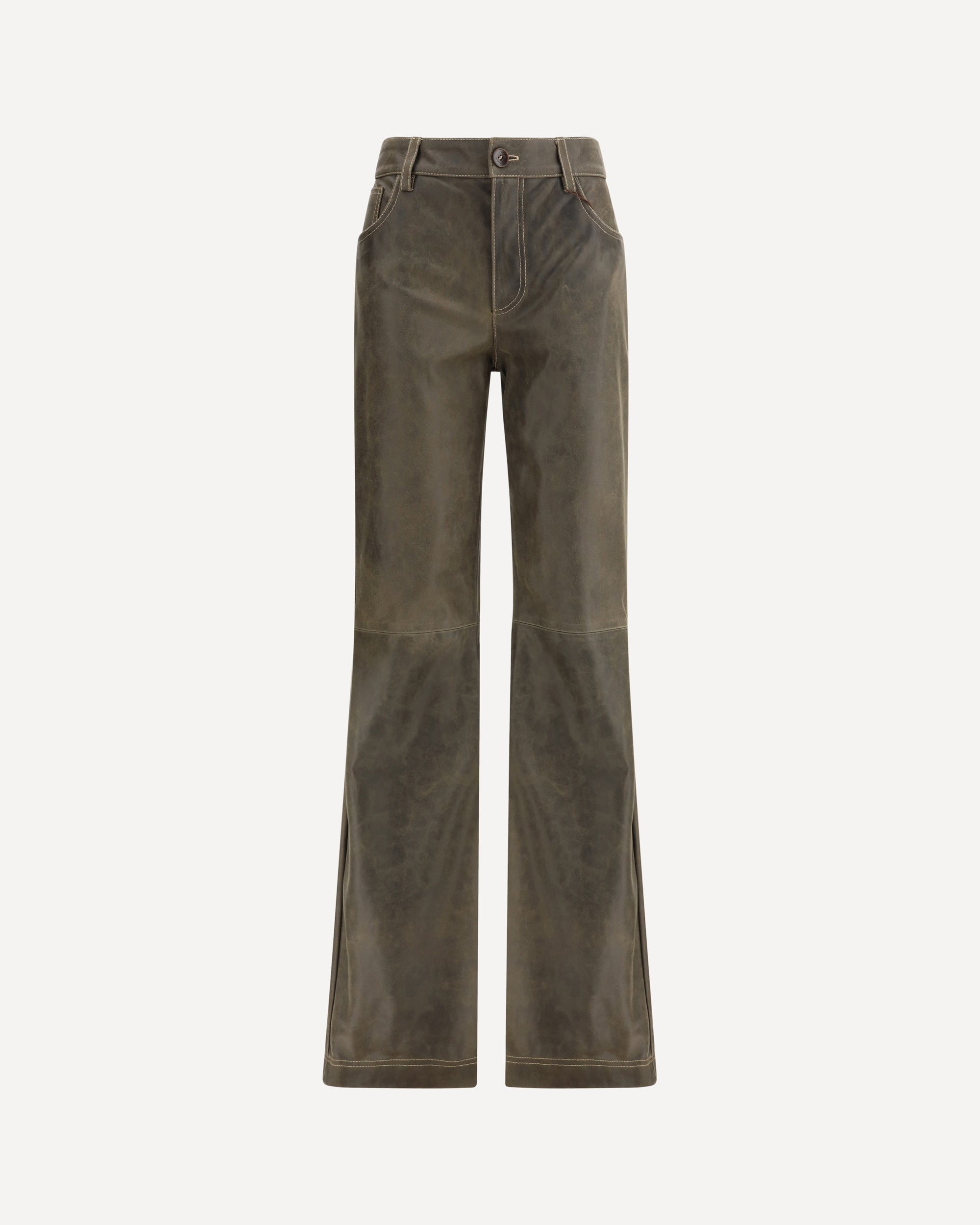 Etro's leather Pants feature a straight style with a mid-rise waist that ensures a comfortable and modern fit. The zip-and-button front closure ensures practicality and security, while the five-pocket design adds a classic and functional touch to the garment, perfect for a stylish yet versatile look.