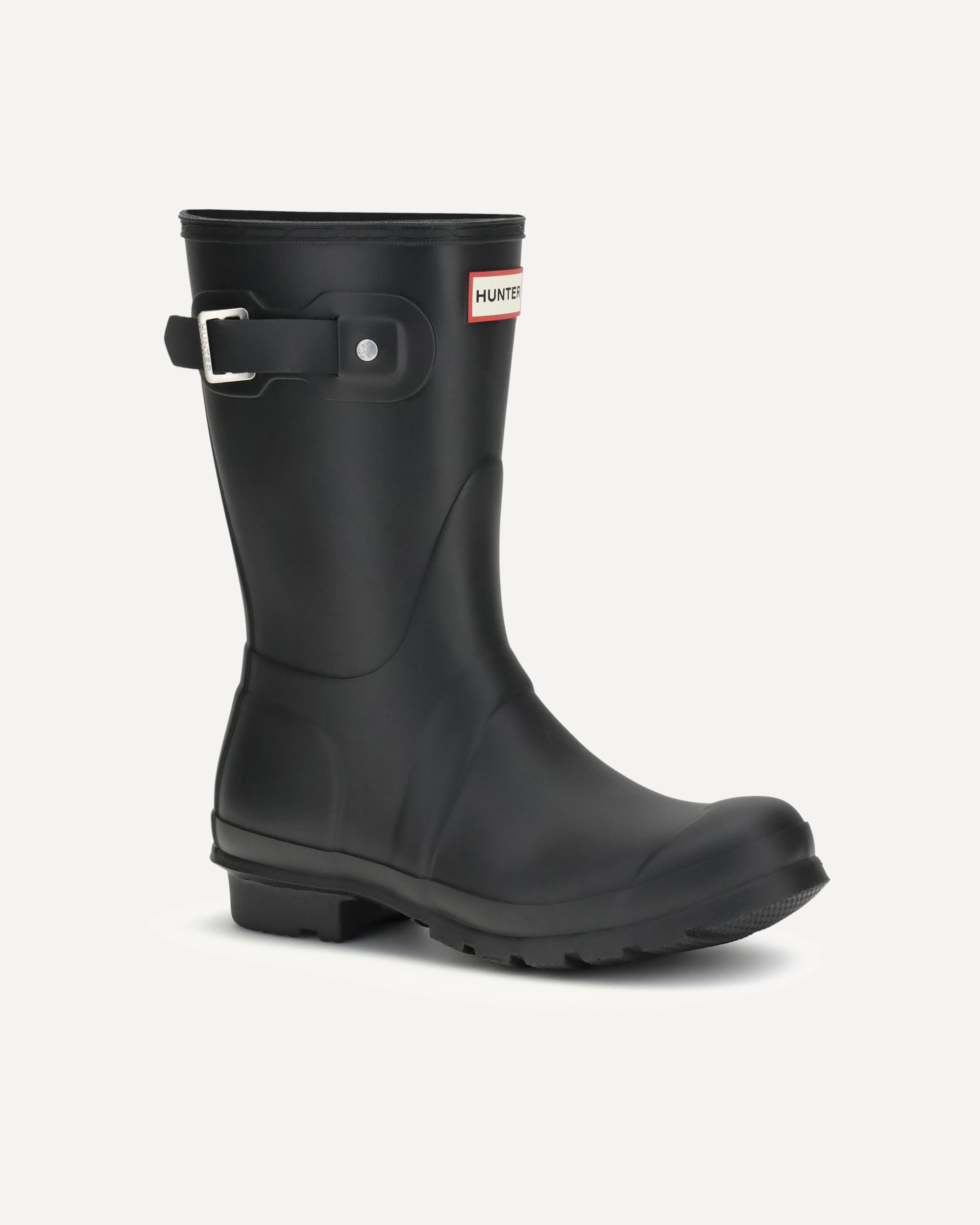 Rubber Wellington Boot by Hunter model for women is a shorter version of the iconic Hunter Original tall boot. Made of natural rubber, each boot is handcrafted and assembled in three days before being vulcanized for superior protection. Featuring Hunter Original tread and a comfortable polyester lining, this black Wellington boot is a must-have for rainy days.
