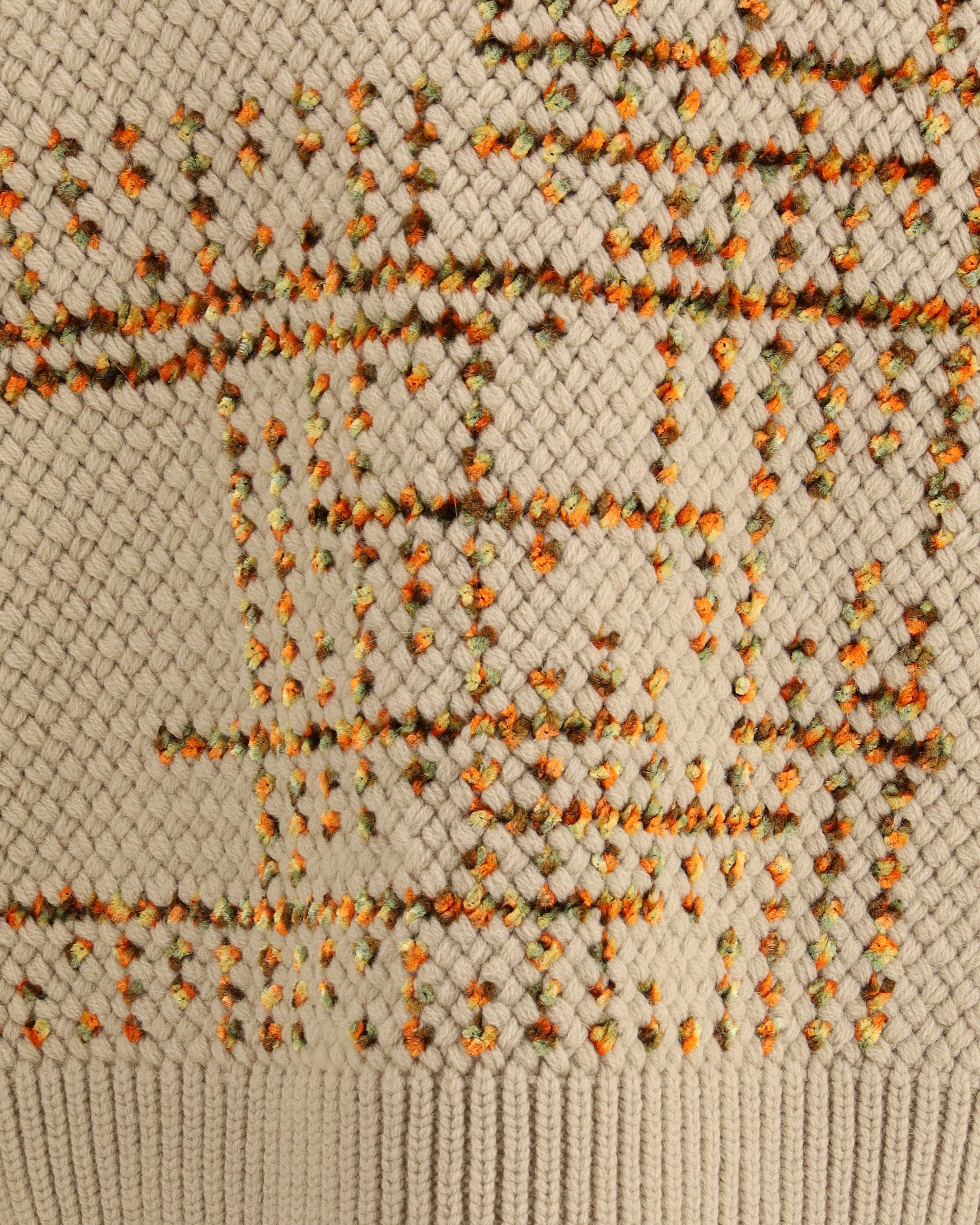 The wool turtleneck Sweater by Dries Van Noten is a garment that combines elegance and comfort in a refined design. Made of fine wool, it is distinguished by a refined jacquard pattern that lends character and depth to the fabric. The fit is loose, designed to offer a relaxed yet still sophisticated silhouette. The high ribbed collar, along with the hem and cuffs also ribbed, adds structure to the garment, emphasizing the attention to detail typical of the house.