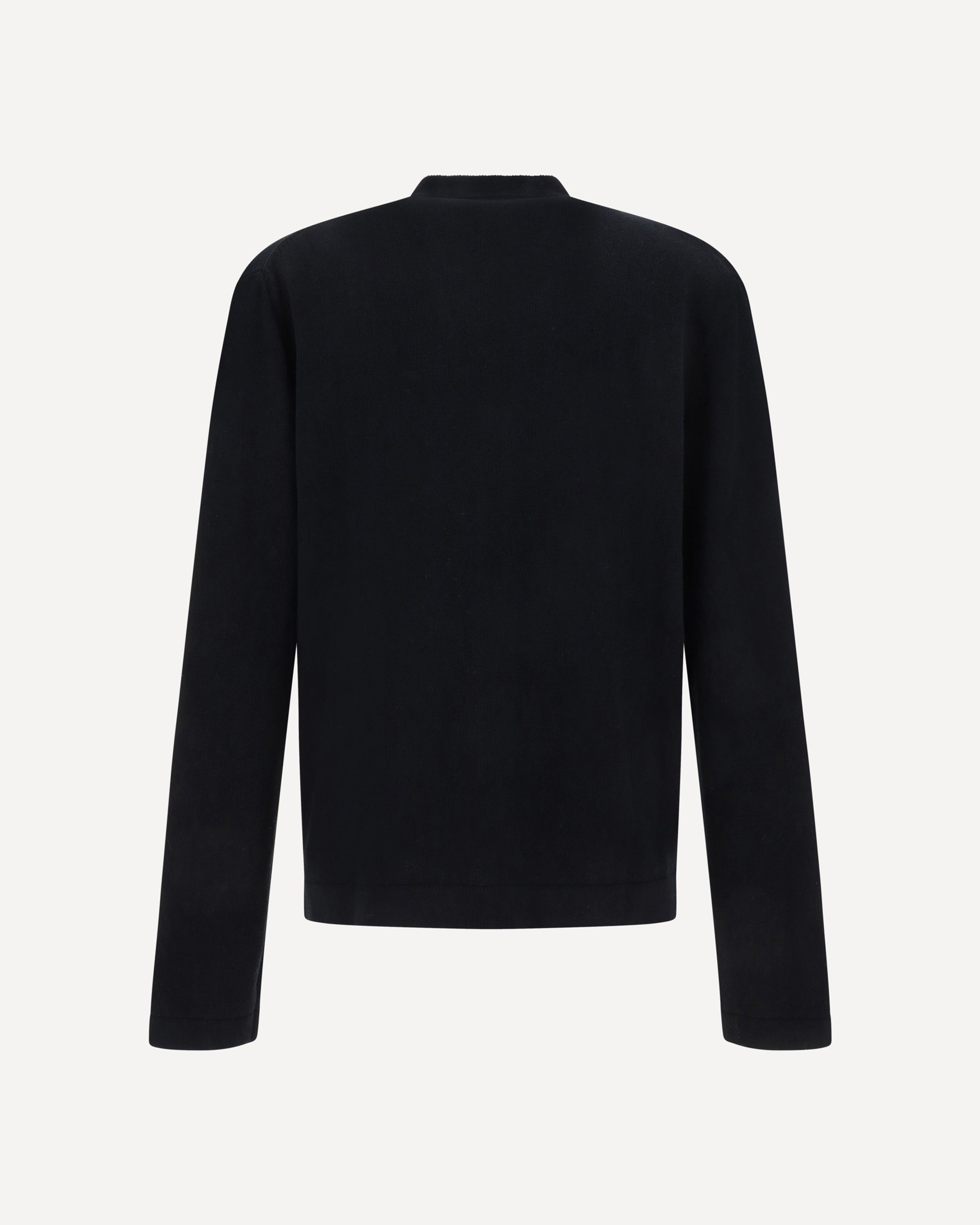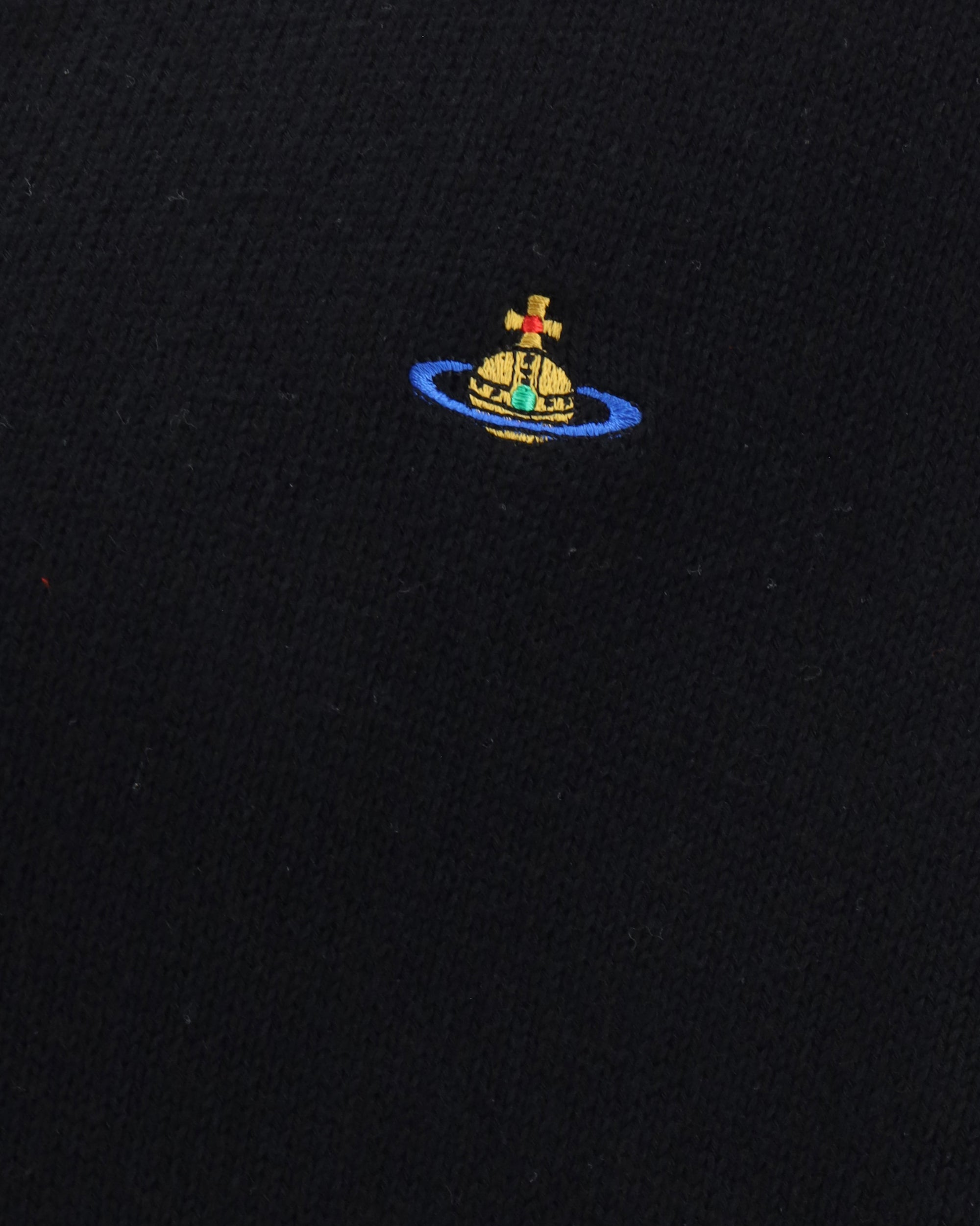 Cotton Alex Cardigan by Vivienne Westwood, featuring V-neck front, front button closure, contrasting embroidered iconic brand logo, monochrome pattern, regular fit.