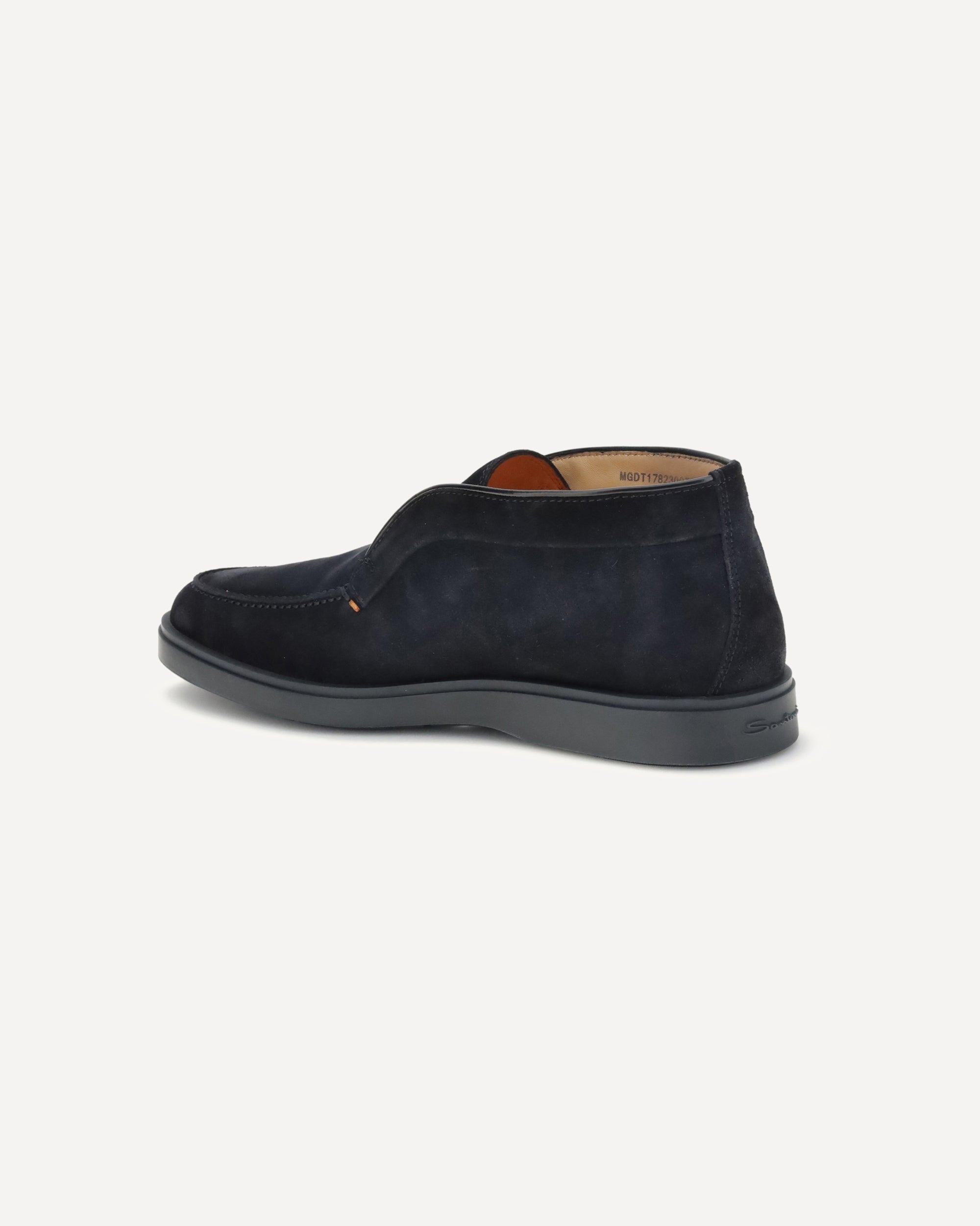 Santoni's Polo Loafers combine elegance and versatility in a lace-free, easy-to-wear design perfect for both formal occasions and casual looks. Made of supersoft suede, they offer exceptional comfort, complemented by a non-slip rubber bottom. A handcrafted product that reflects the excellence of made in Italy.
