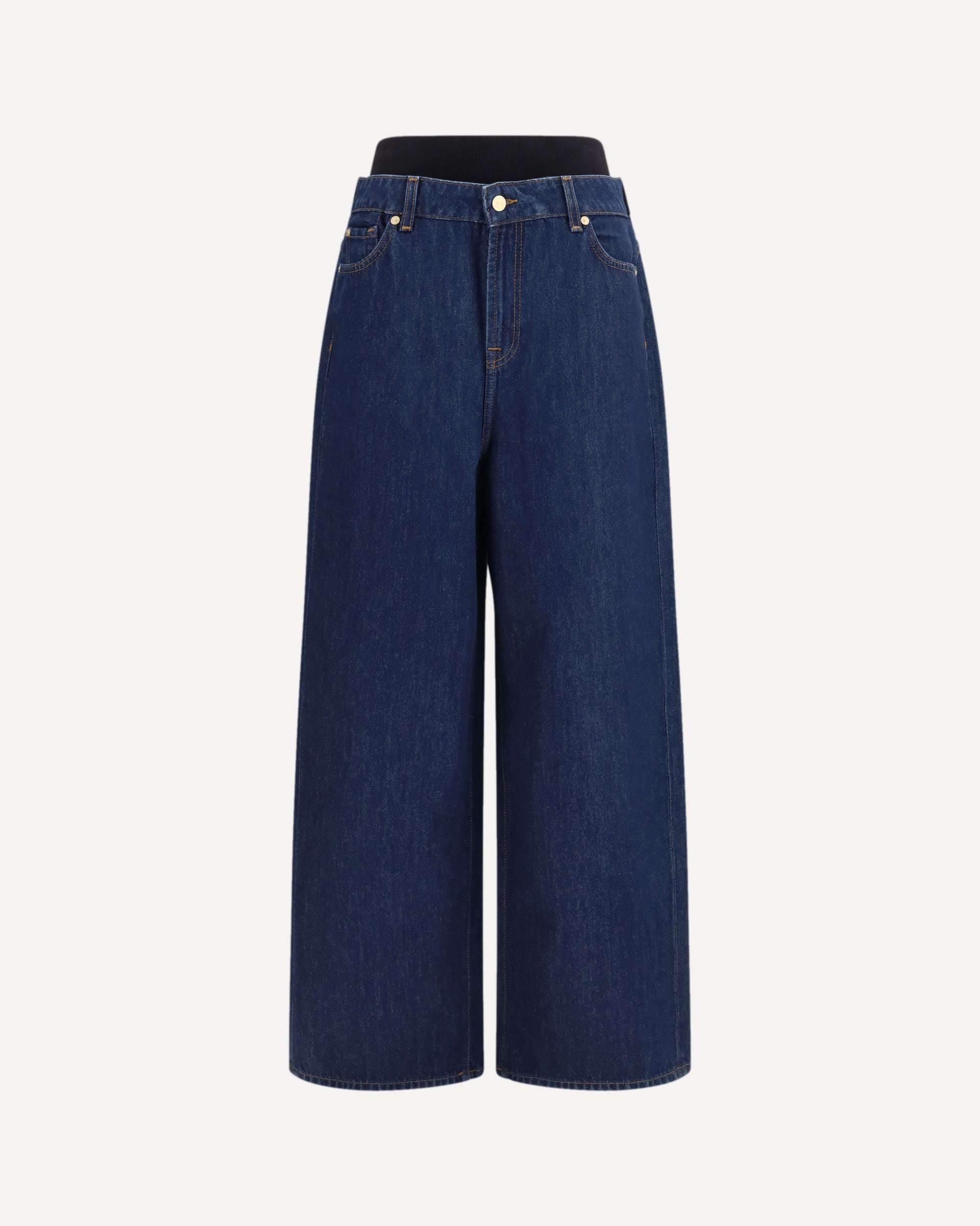 The Slouchy Jeans in denim by 7For are a loose-fitting, relaxed garment made from pure cotton for optimal comfort. The ribbed stretch jersey waistband offers a comfortable fit, while the belt loops allow you to add a belt to customize your look. The concealed zip closure with a single visible button, together with five classic pockets, complete the design. Embellished with a logo label on the back, these jeans are ideal for those looking for a casual and contemporary style with a touch of understated luxury.