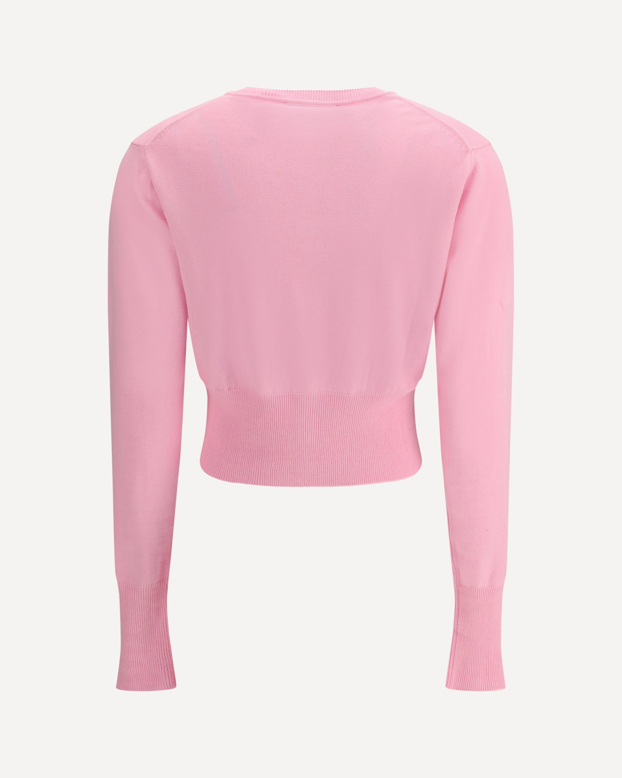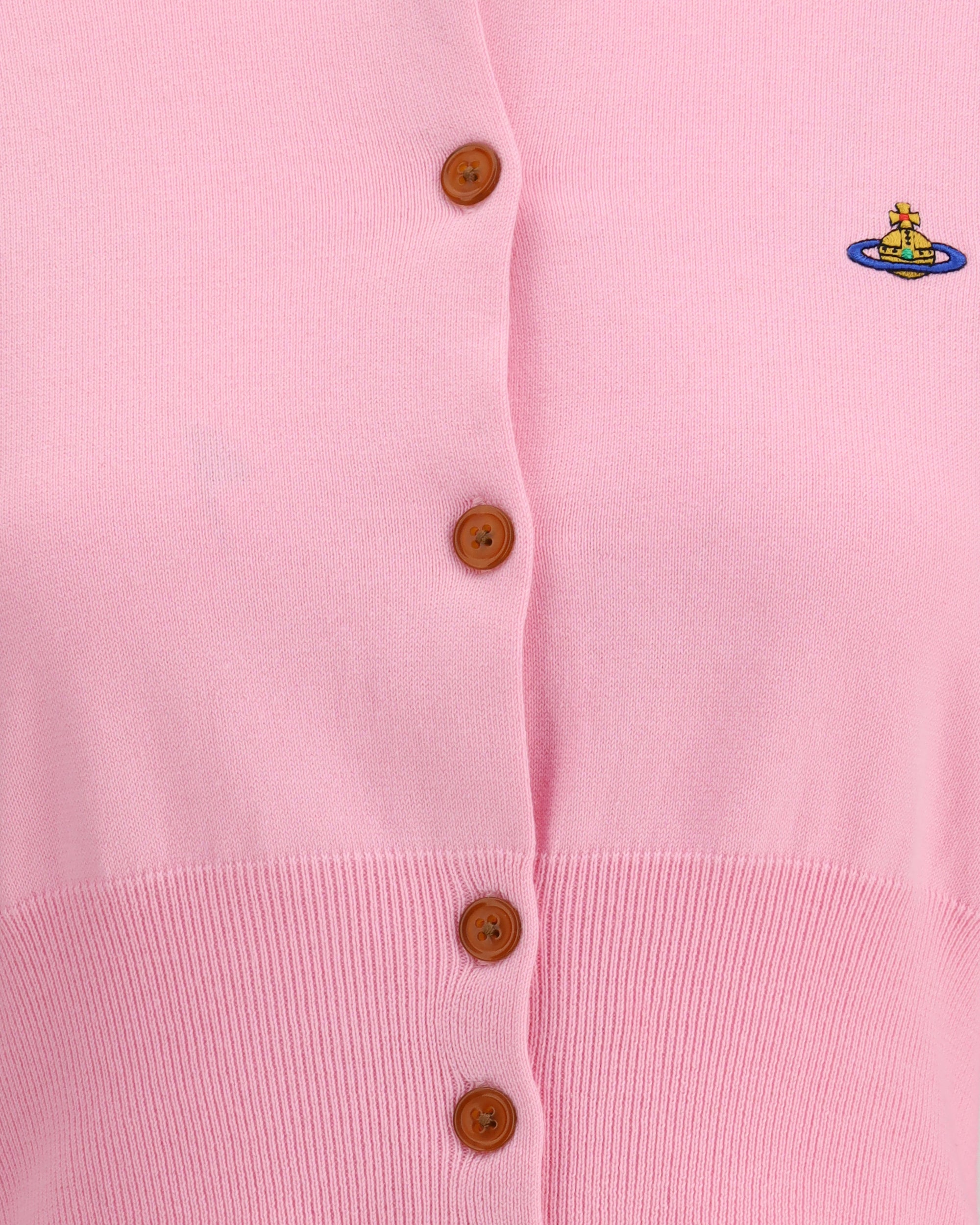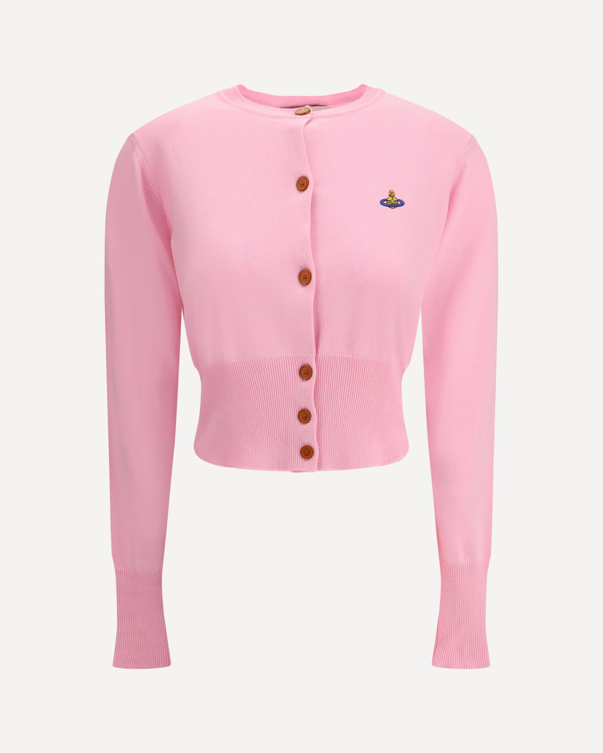 Bea crop Cardigan by Vivienne Westwood is a garment with iconic and contemporary appeal. It features a short design with a round neckline, long sleeves and front button closure. Completing the look is the distinctive Orb logo embroidery on the chest, a distinctive symbol of the Maison.