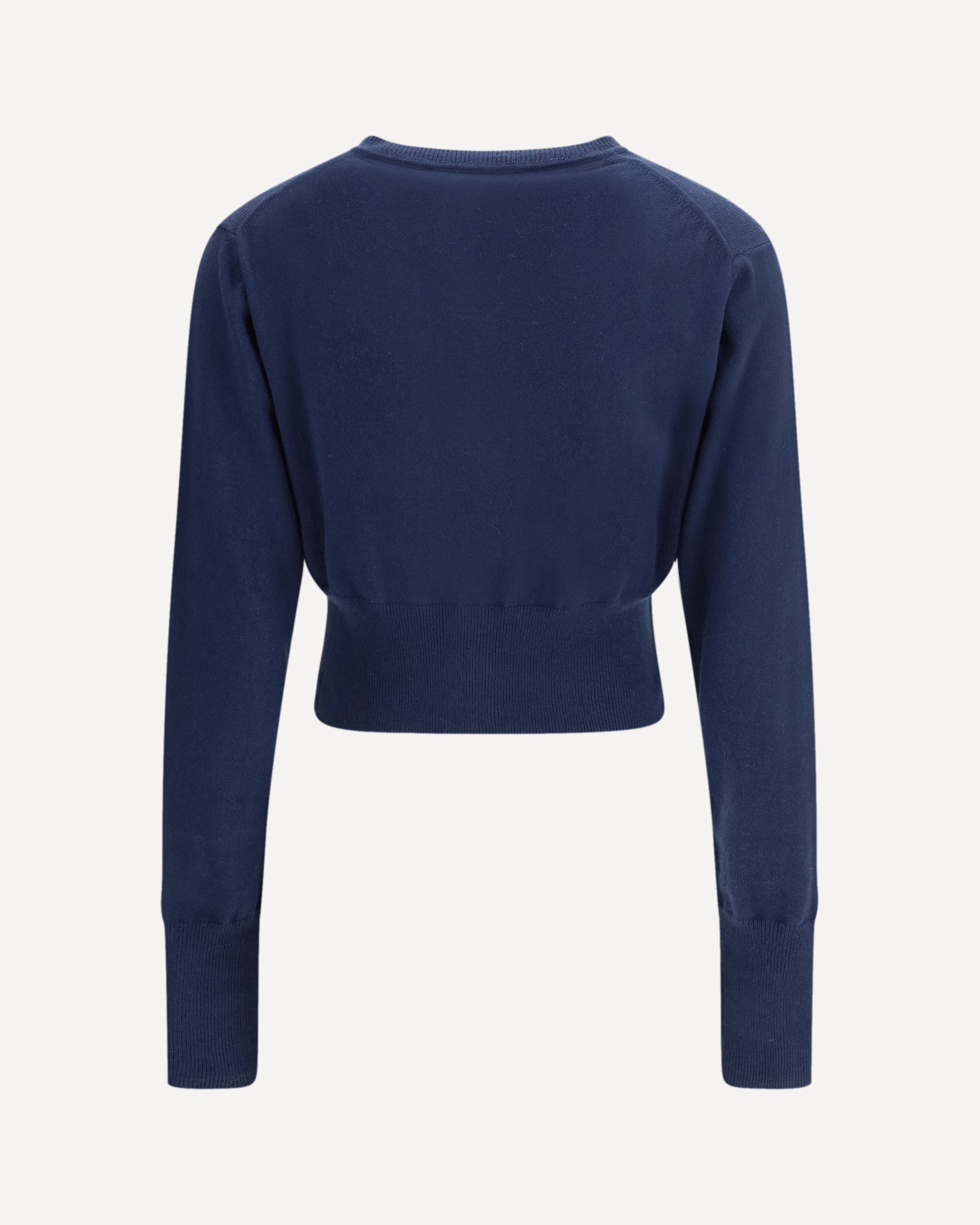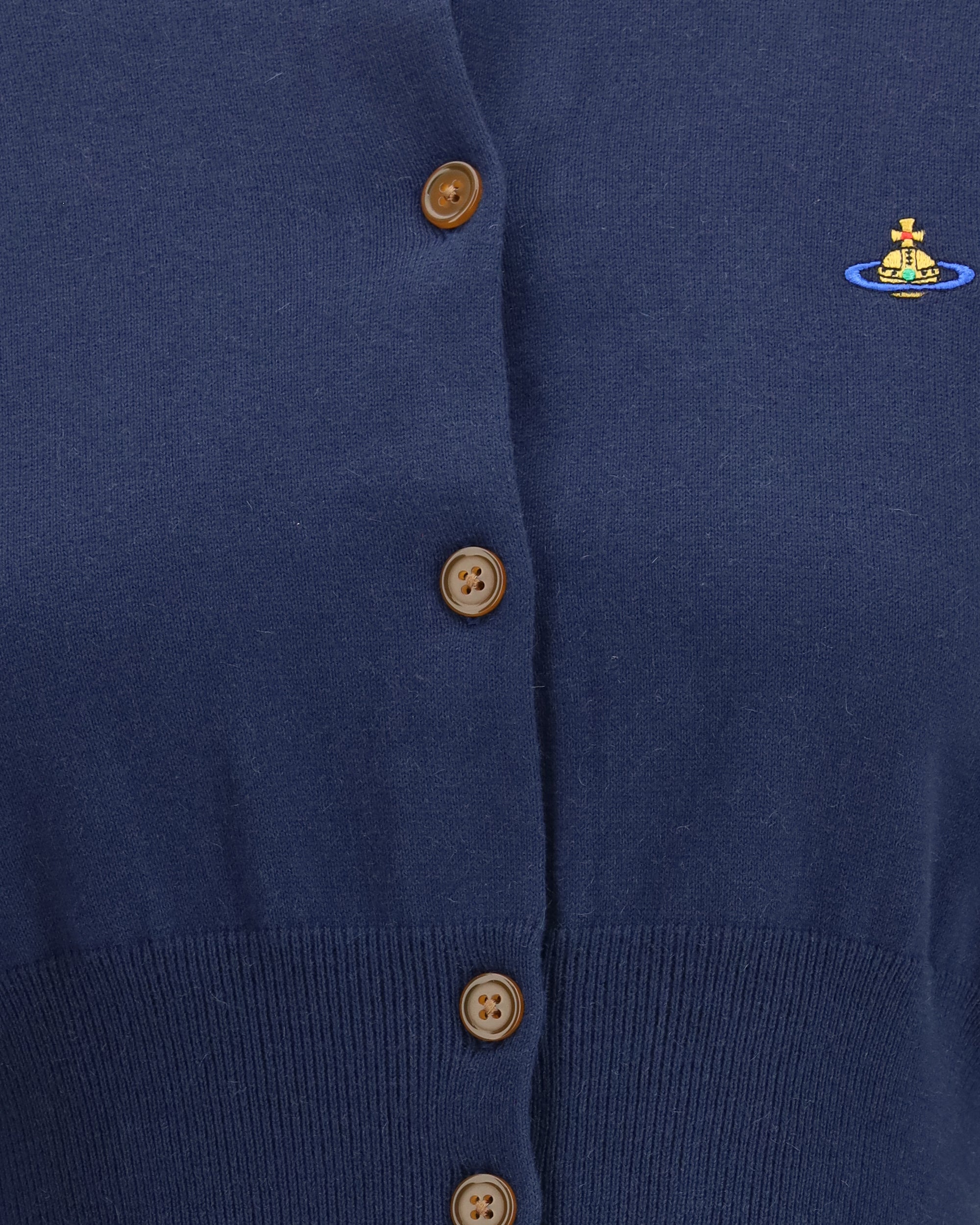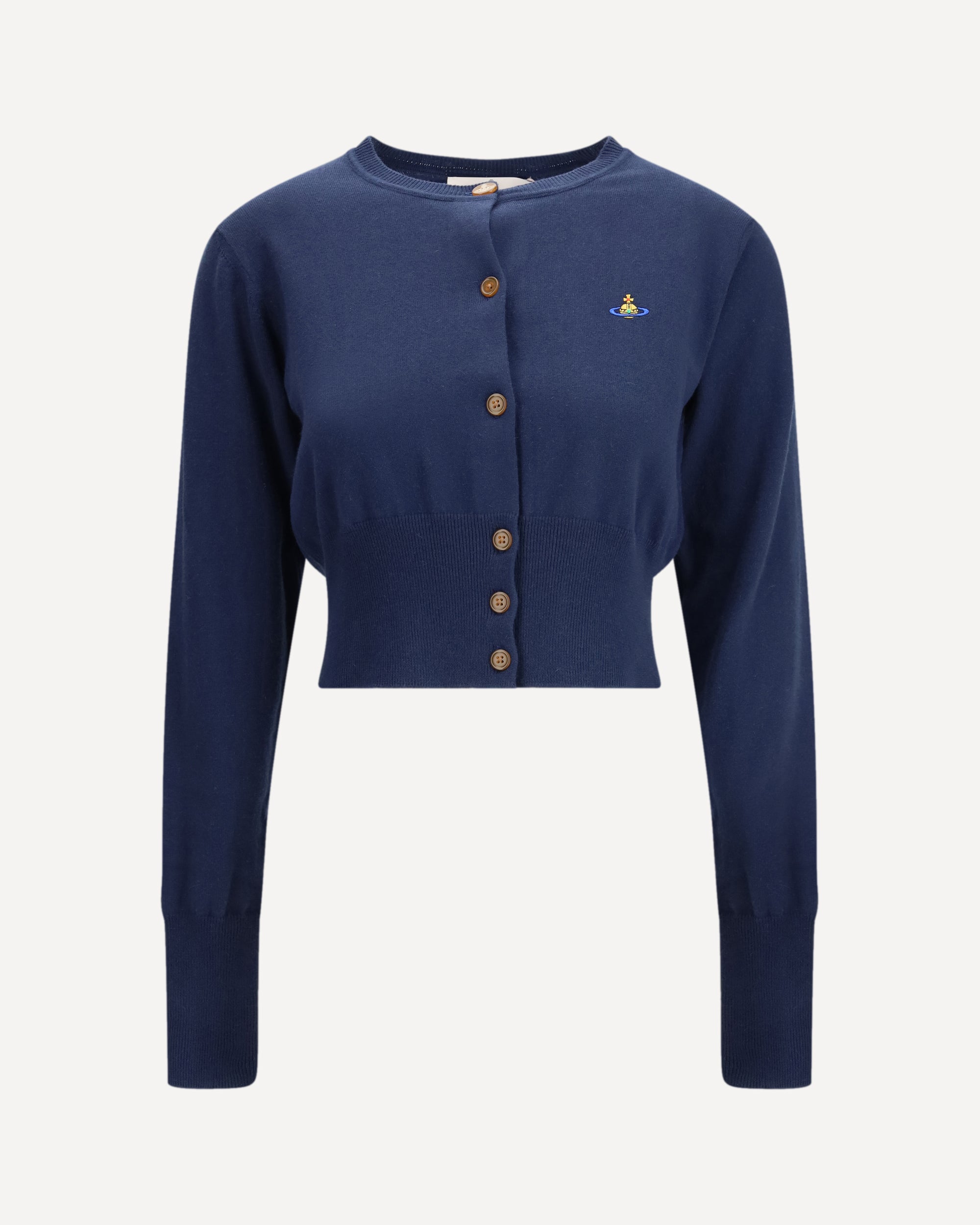 Bea crop Cardigan by Vivienne Westwood is a garment with iconic and contemporary appeal. It features a short design with a round neckline, long sleeves and front button closure. Completing the look is the distinctive Orb logo embroidery on the chest, a distinctive symbol of the Maison.
