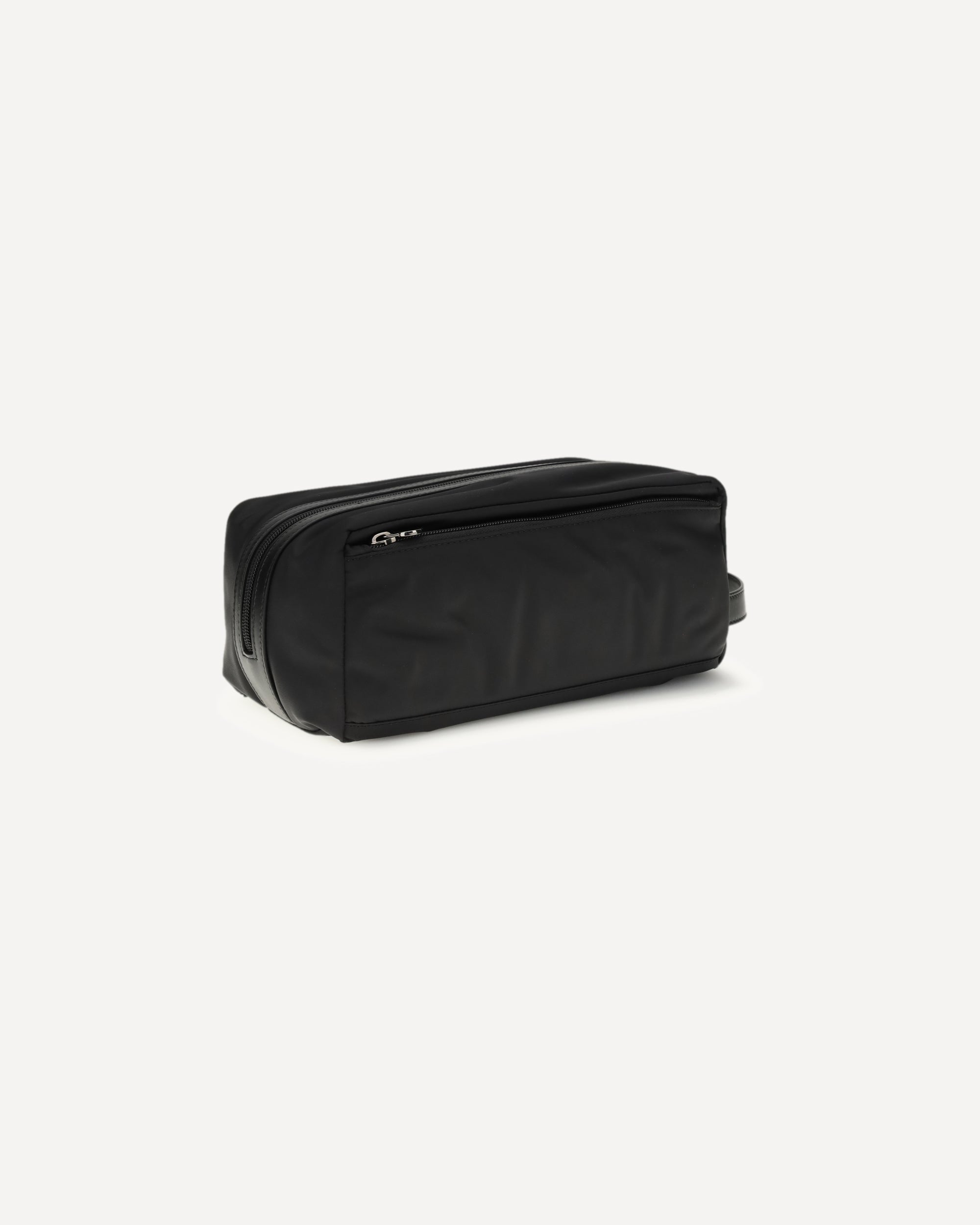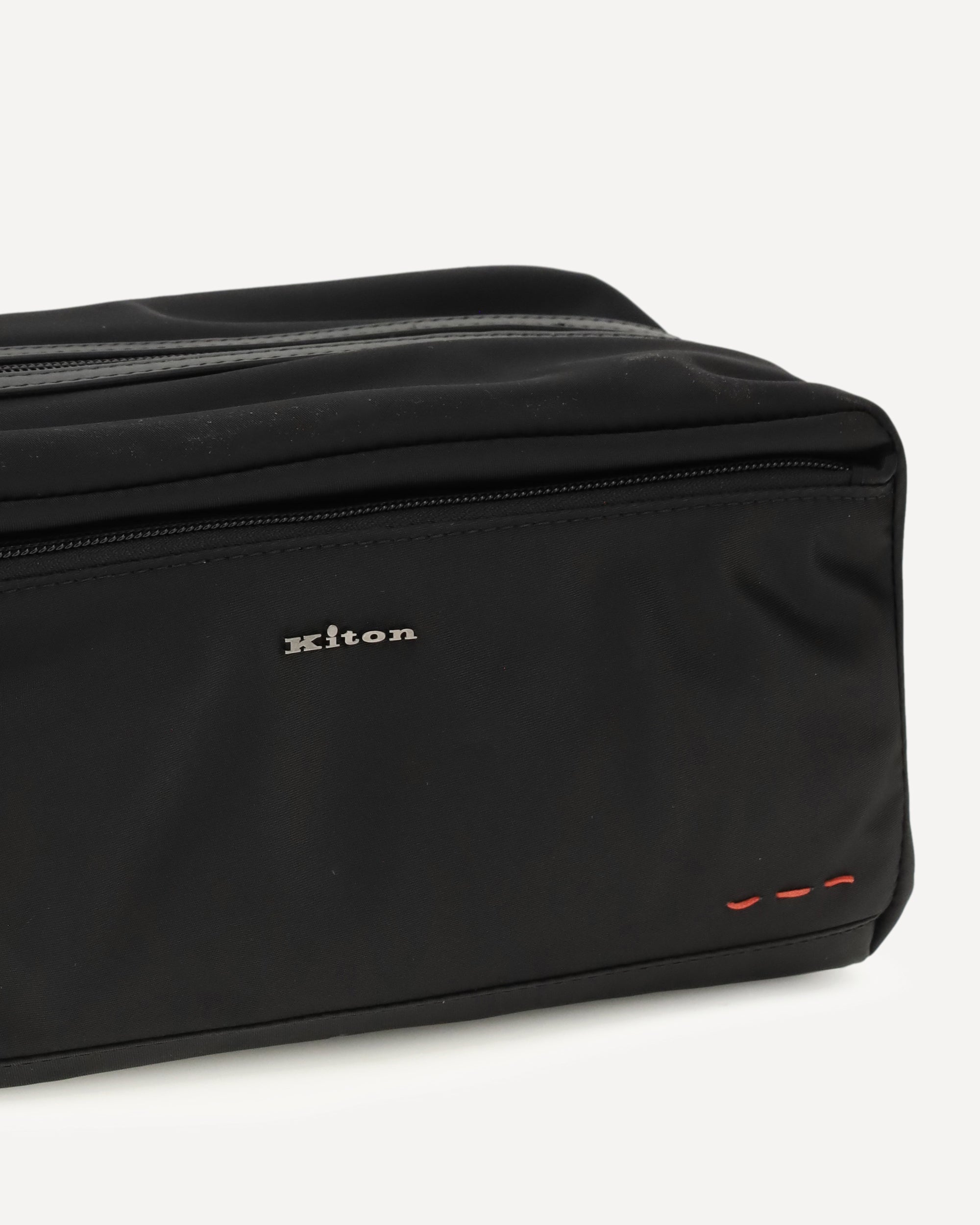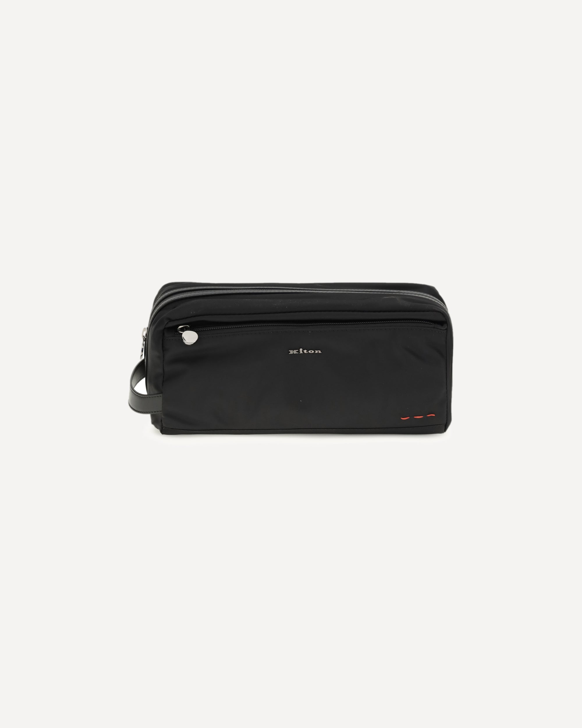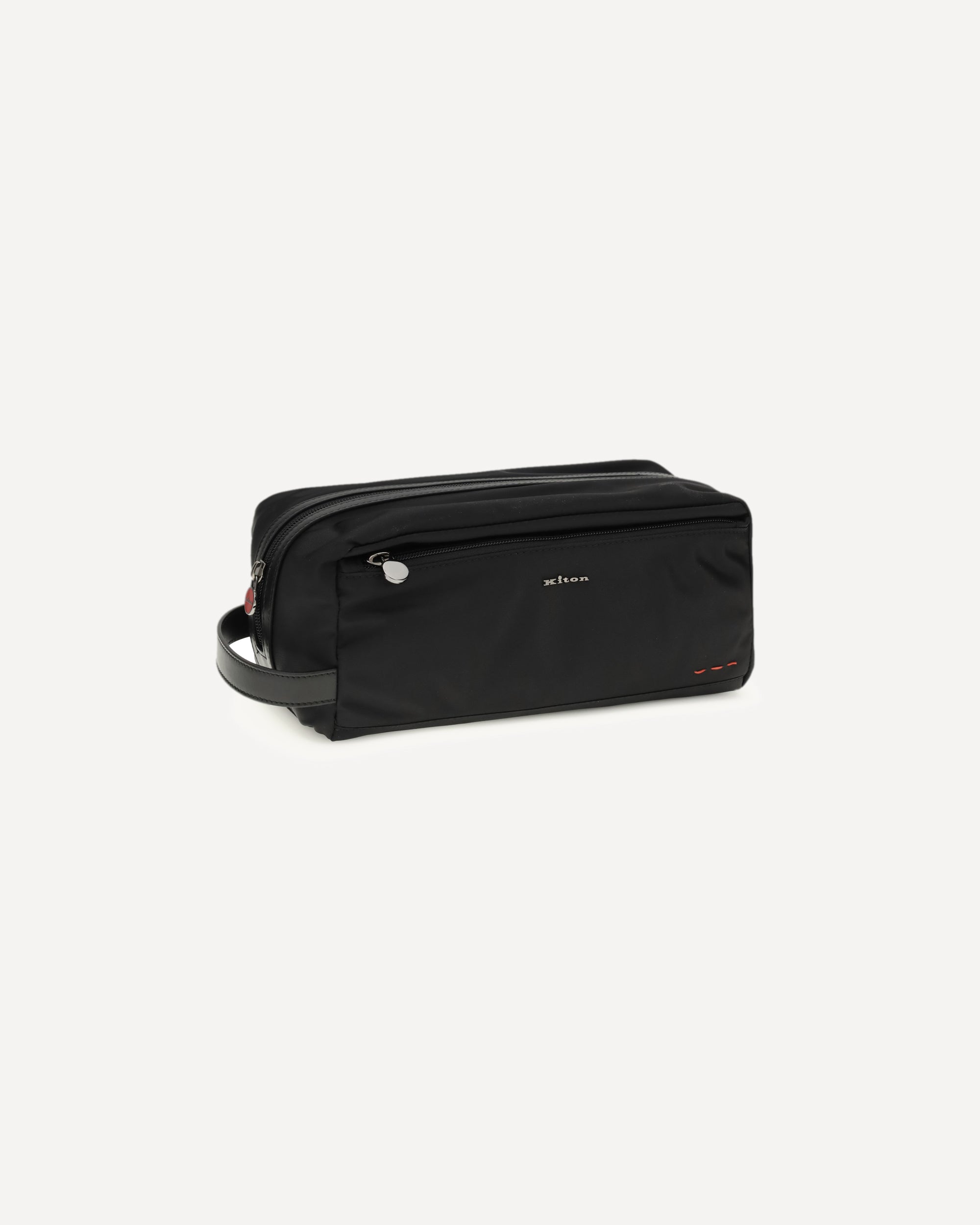 The Beauty Case by Kiton combines elegance and functionality with a top zipper closure and front and back pockets that are always handy. The leather side handle provides practicality, while the brass logo on the front adds a refined and distinctive detail.