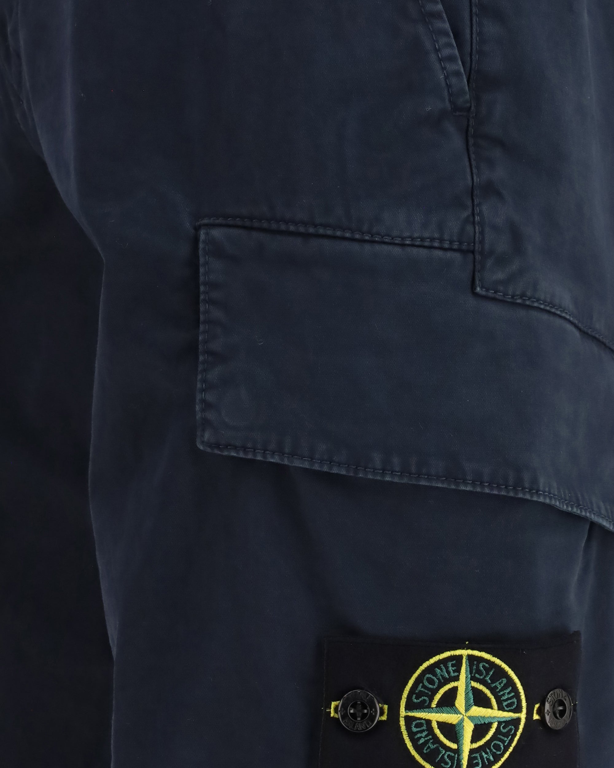 The organic cotton stretch broken twill Shorts by Stone Island reinterpret the cargo silhouette through technical precision and a naturally worn-in character. Crafted from stretch organic cotton in broken twill, they feature asymmetric seams and multiple pockets that enhance their utilitarian attitude. The piece is garment-dyed with Stone Island’s distinctive “OLD” treatment, a process that softens the color and creates a three-dimensional, subtly weathered finish.