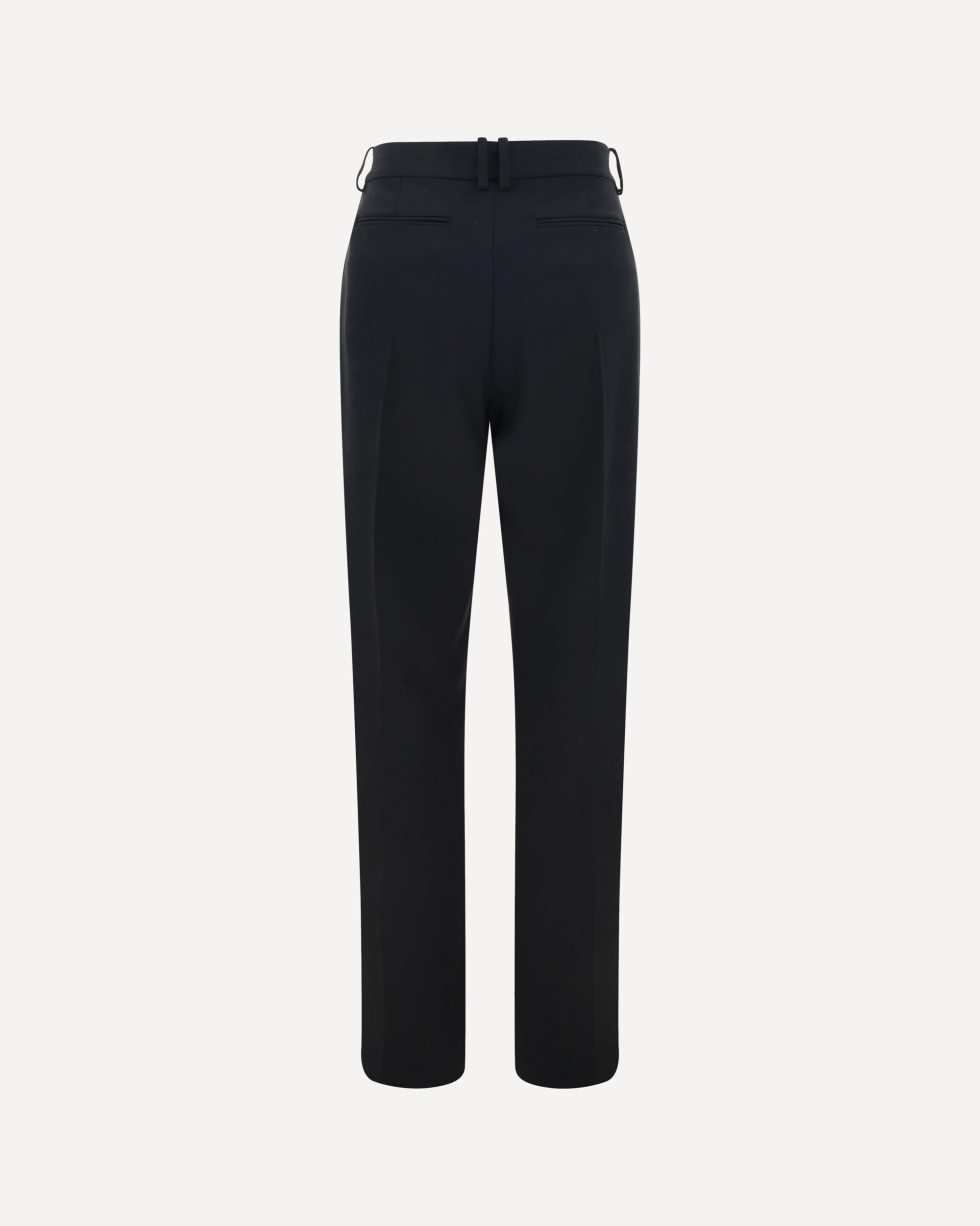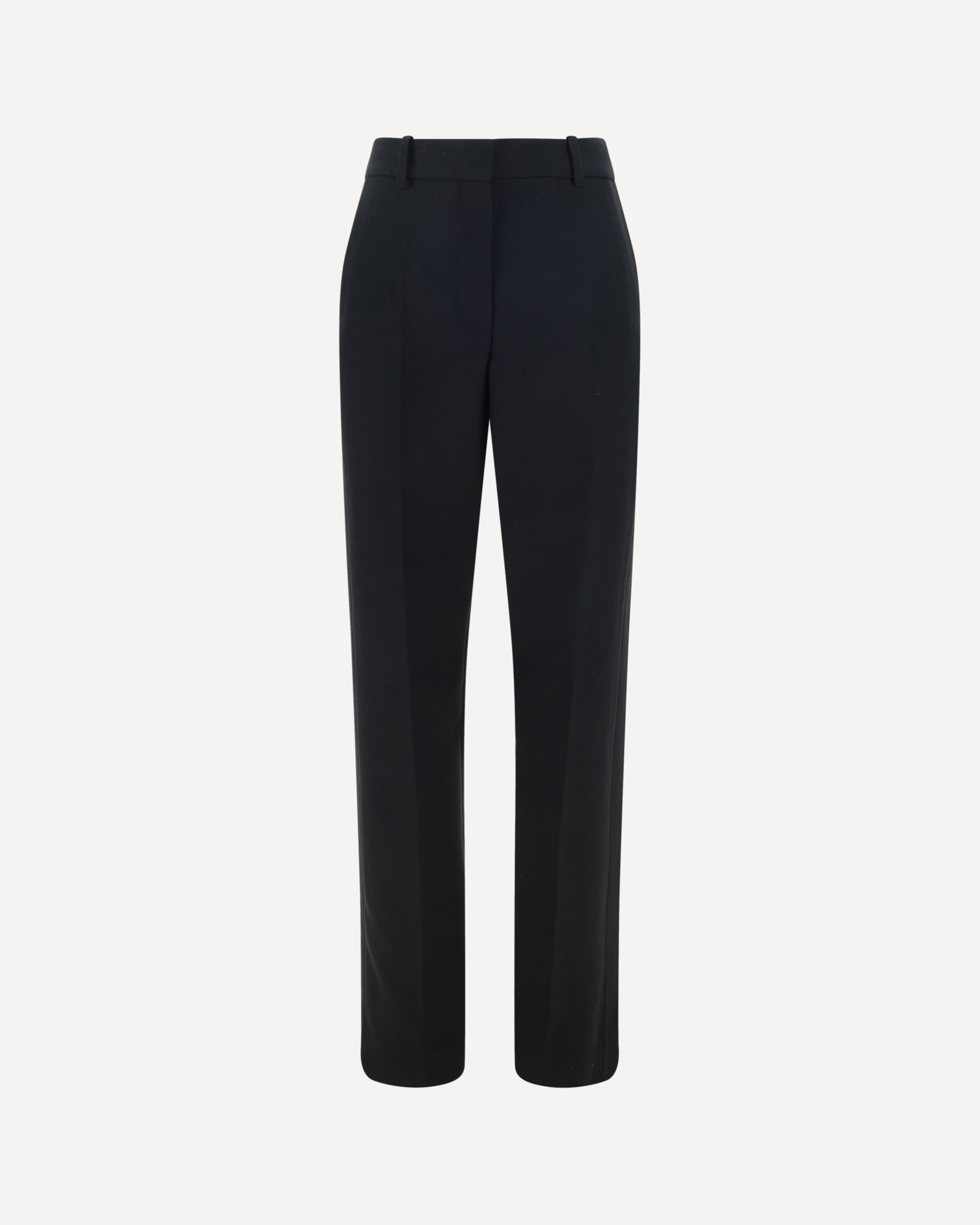 Virgin Wool Borgo Pants by The Row, front zipper and hook-and-eye closure, two slash pockets, two back welt pockets, monochrome pattern, regular fit.